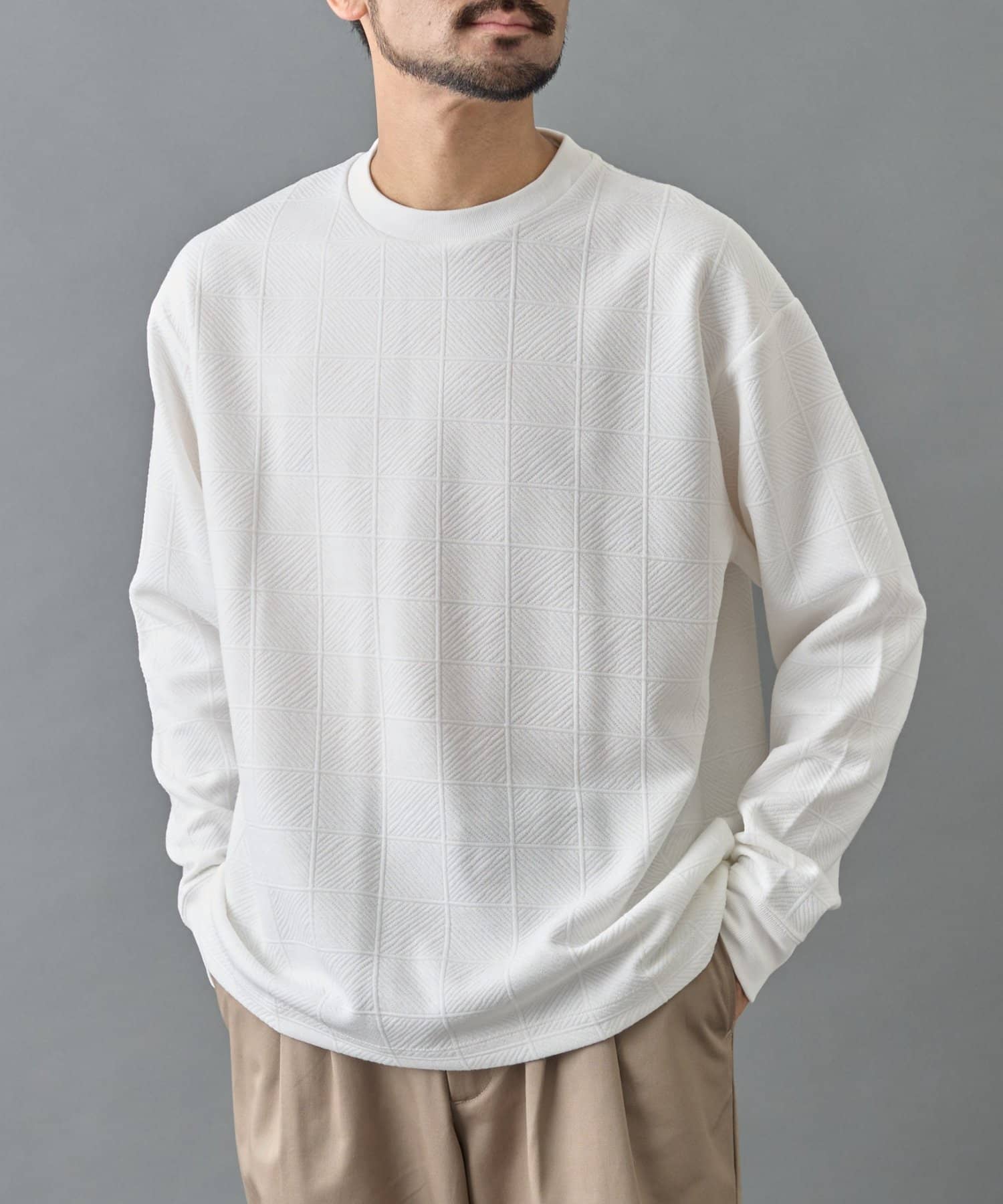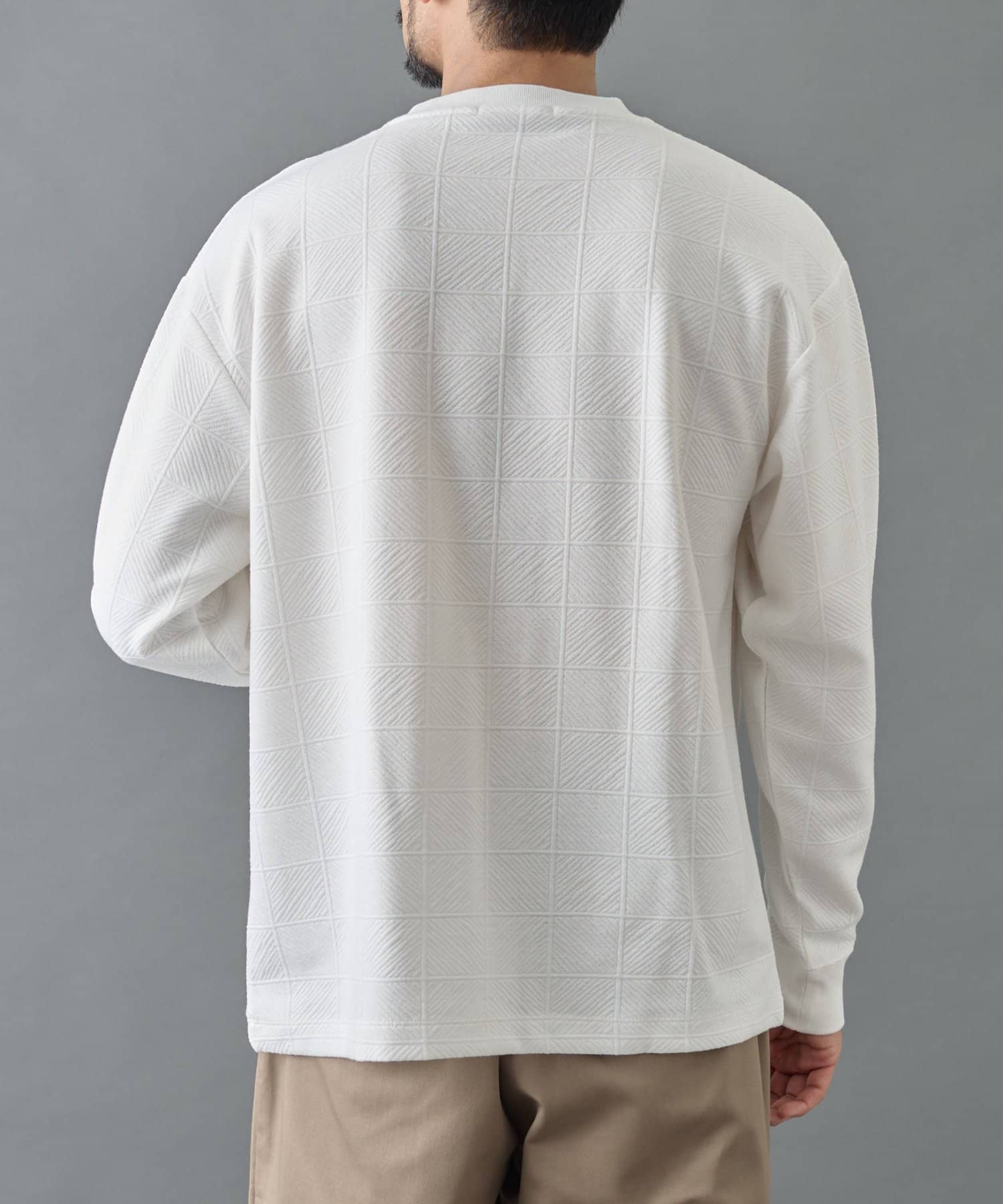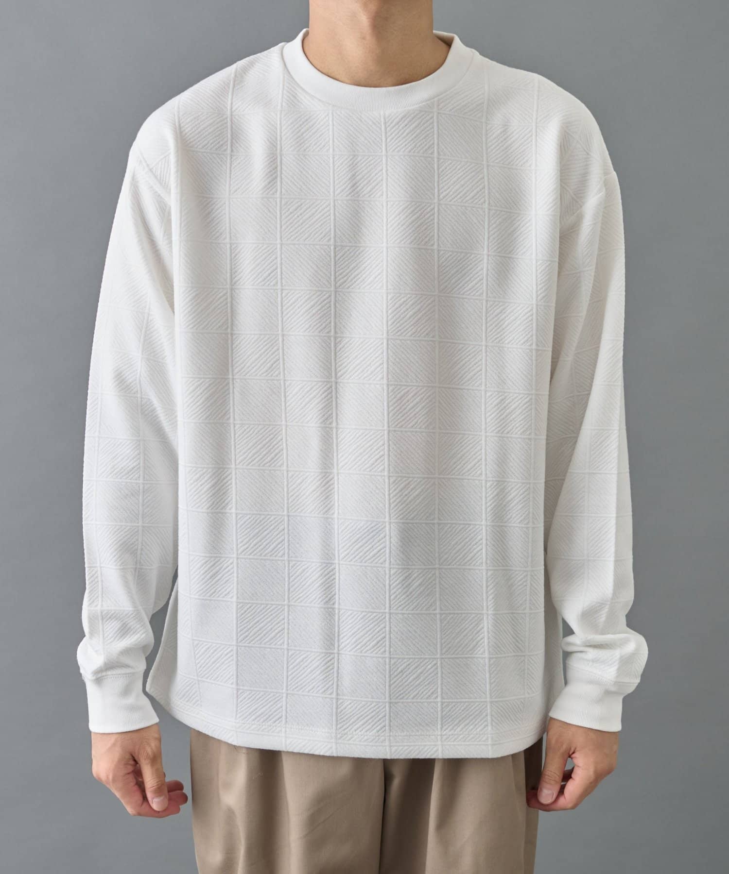 繊細なタイル模様をジャガード織で表現した、立体感のあるロングスリーブTシャツです。