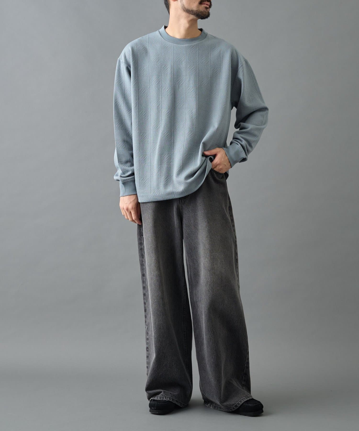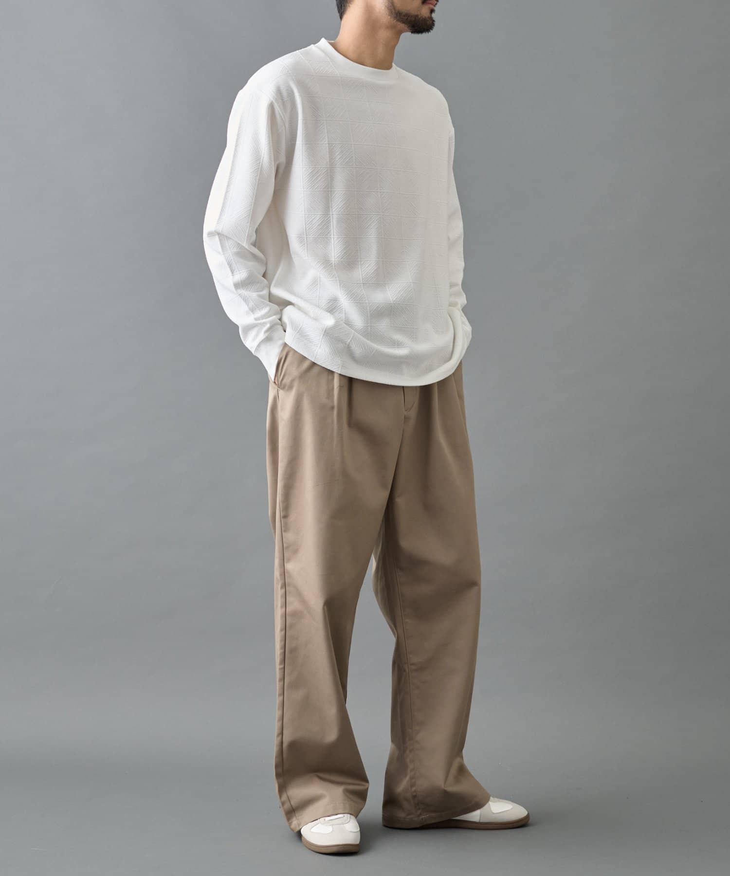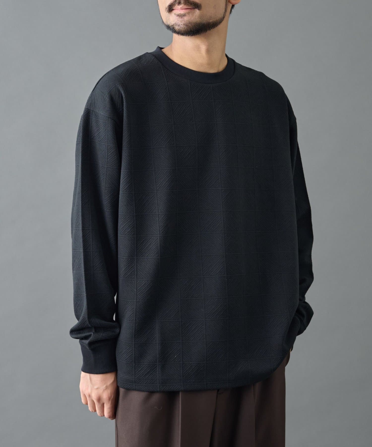 繊細なタイル模様をジャガード織で表現した、立体感のあるロングスリーブTシャツです。