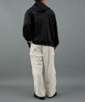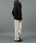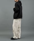 同素材のパーカーと合わせてセットアップとして合わせるスタイルもおすすめです。