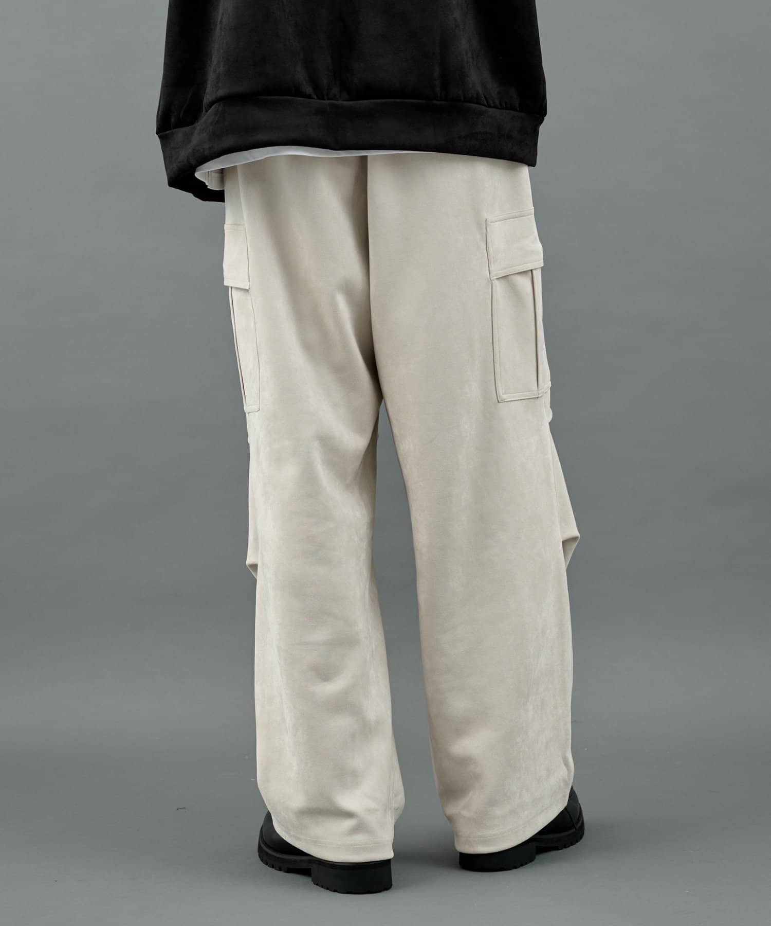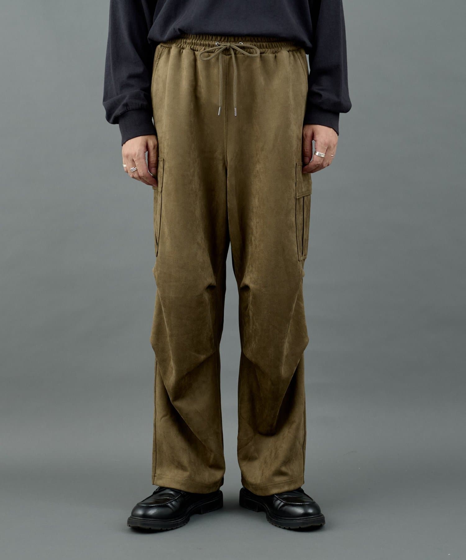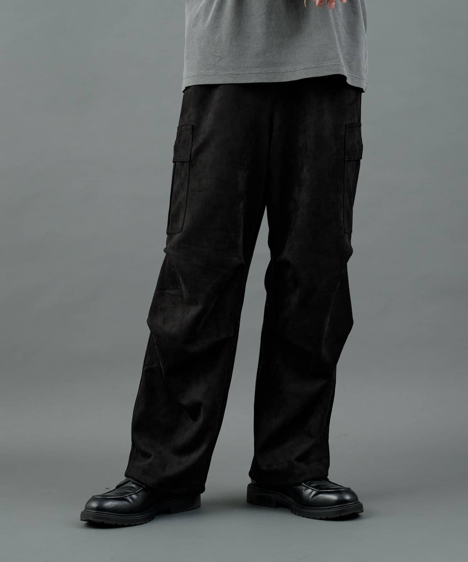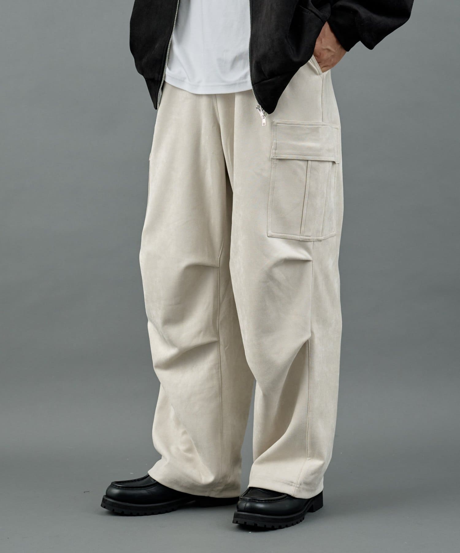 上品な光沢としなやかな質感が魅力のシンセティックスエード素材を使用したカーゴパンツです。