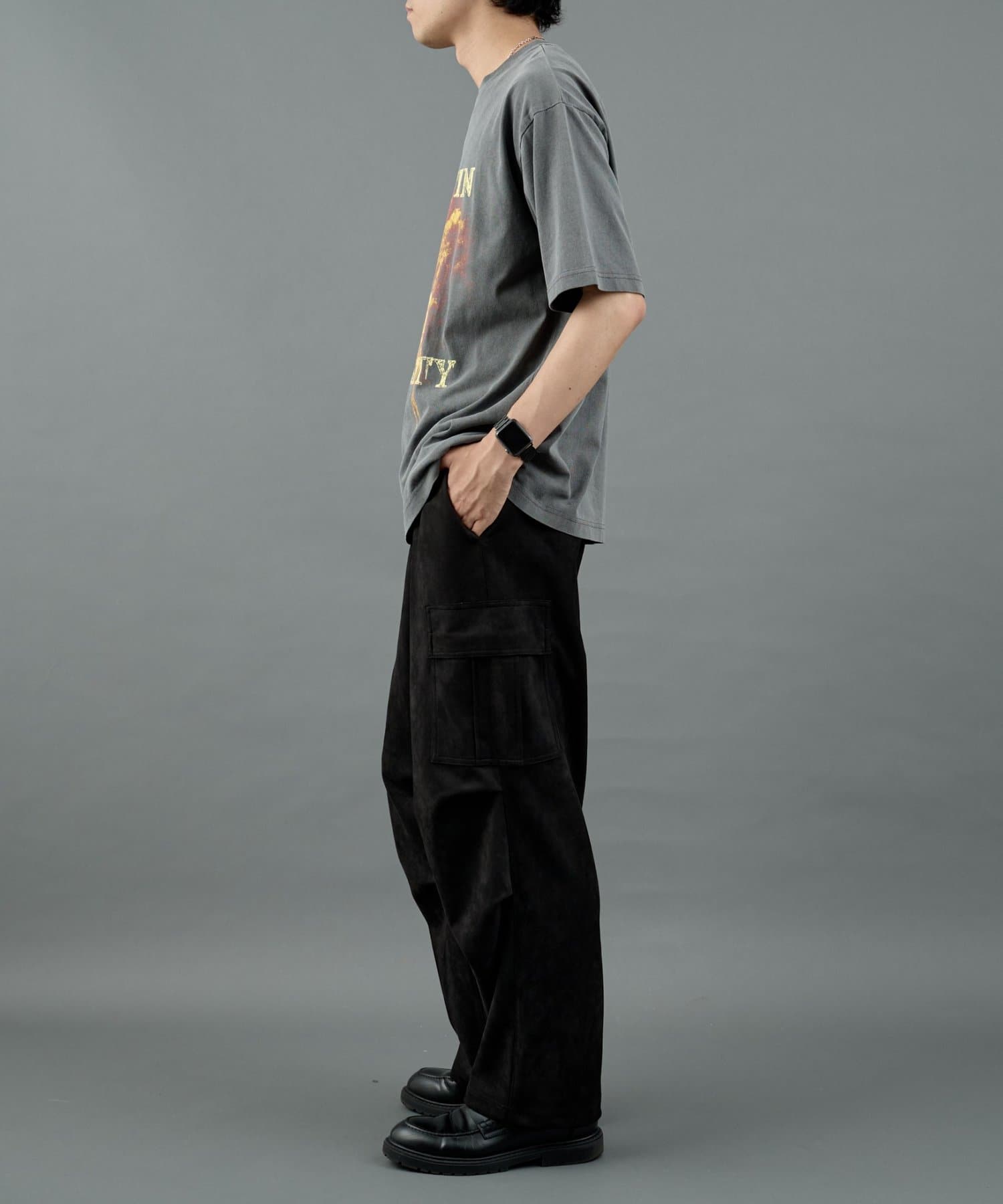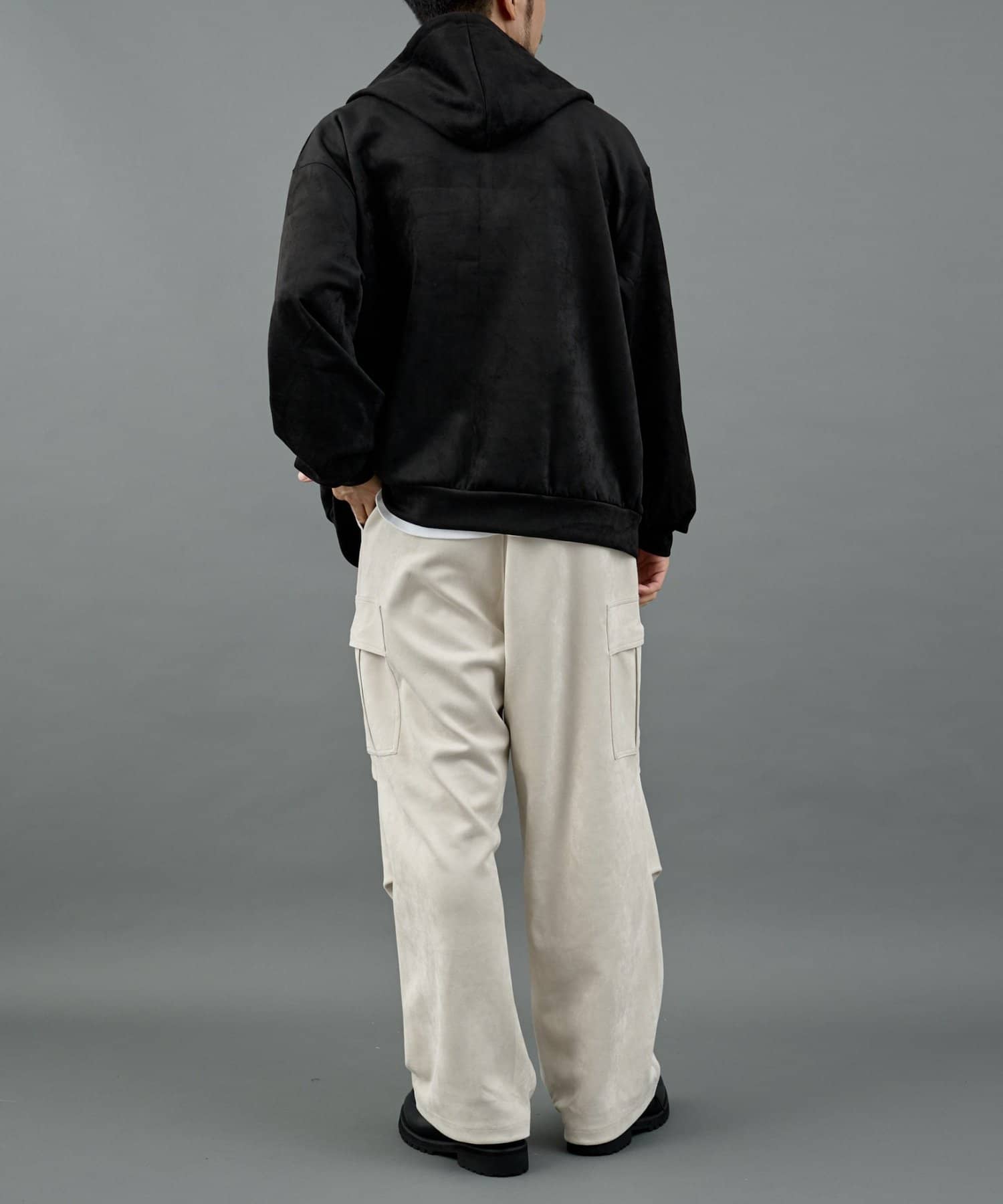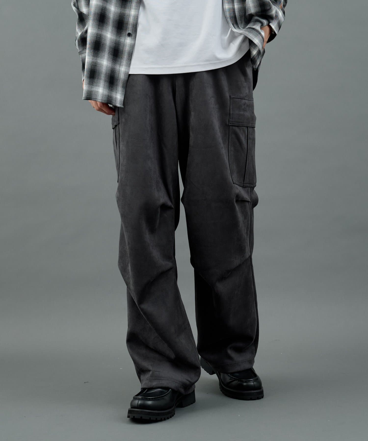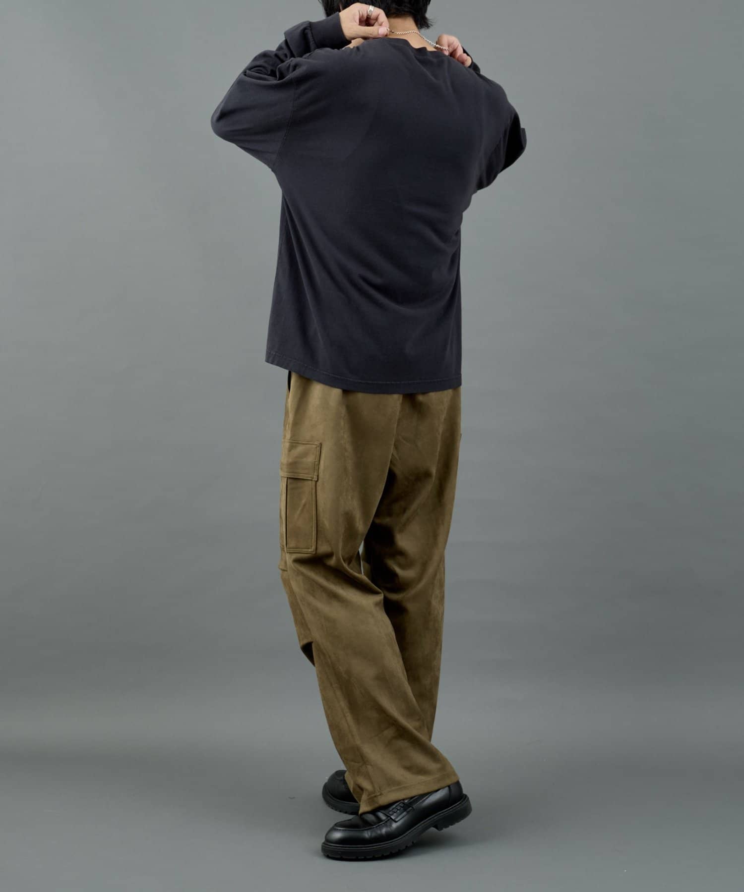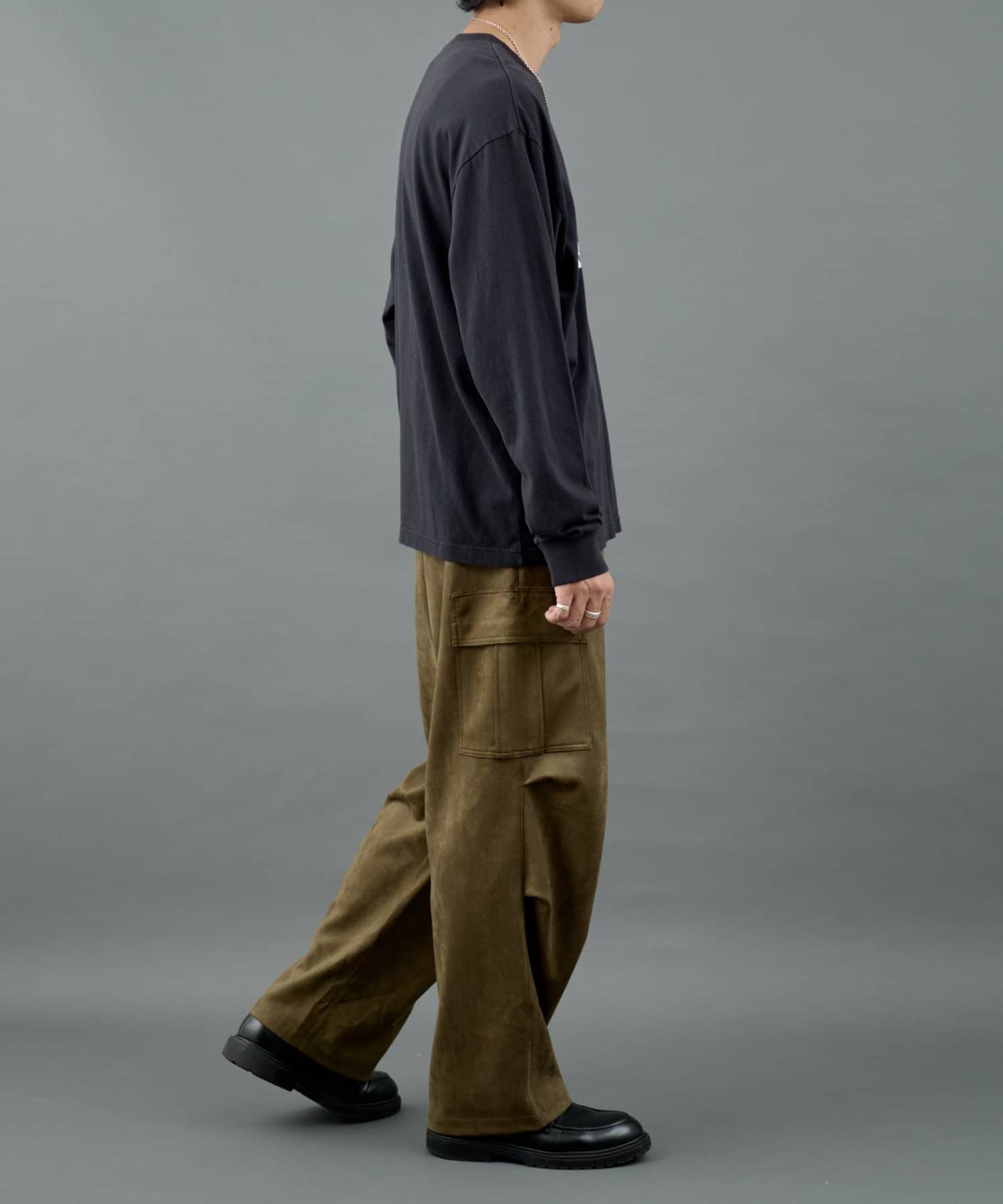 上品な光沢としなやかな質感が魅力のシンセティックスエード素材を使用したカーゴパンツです。