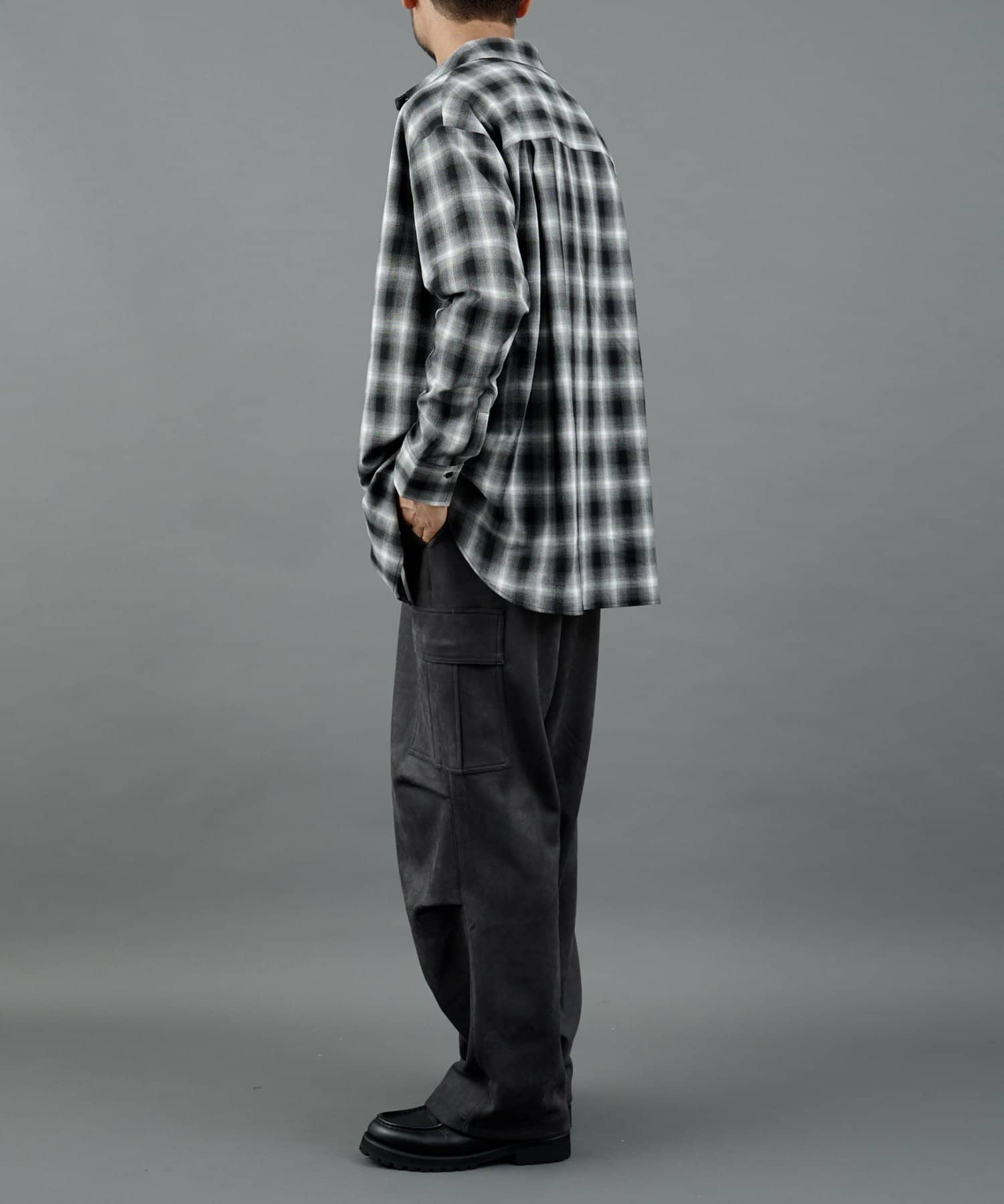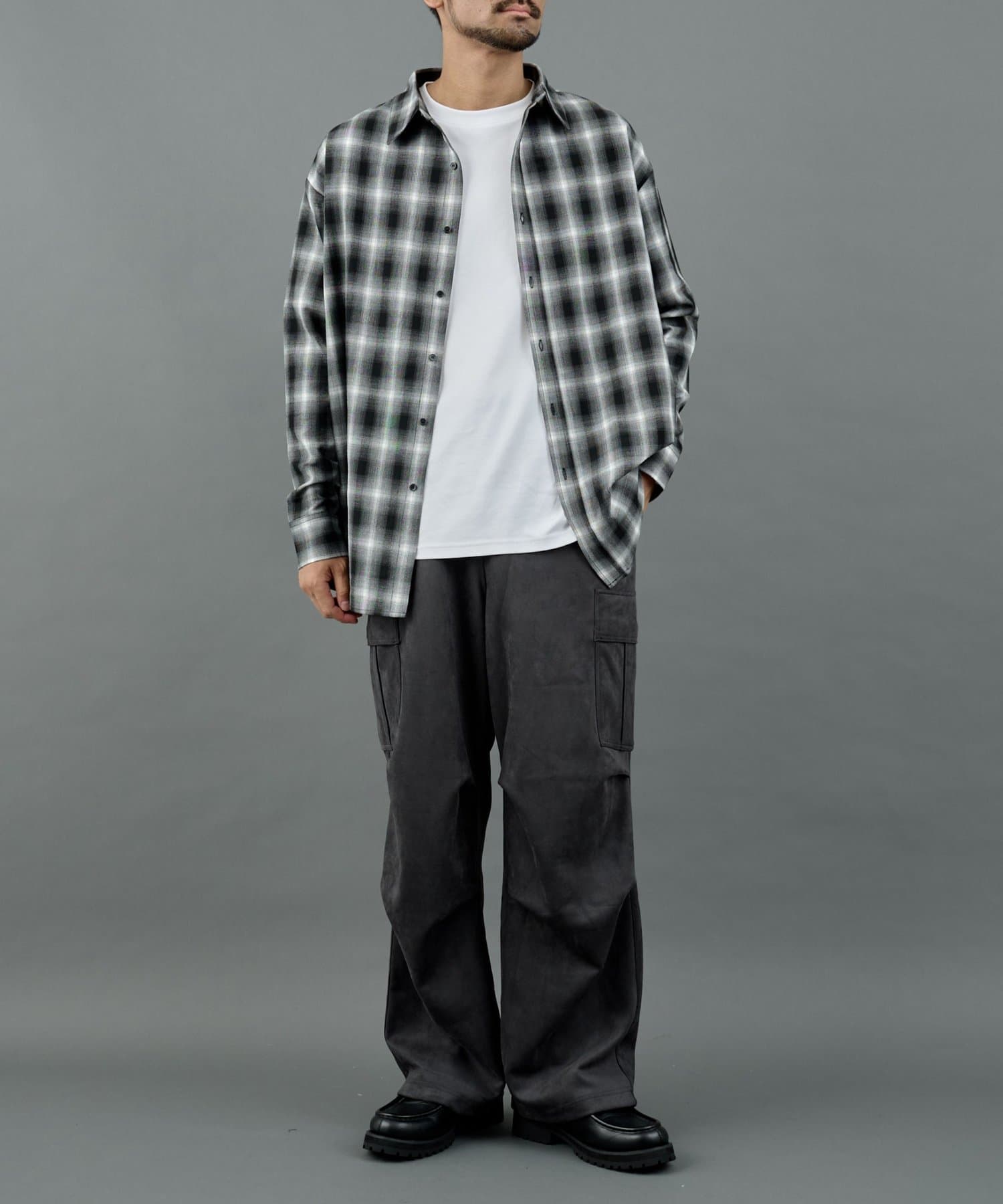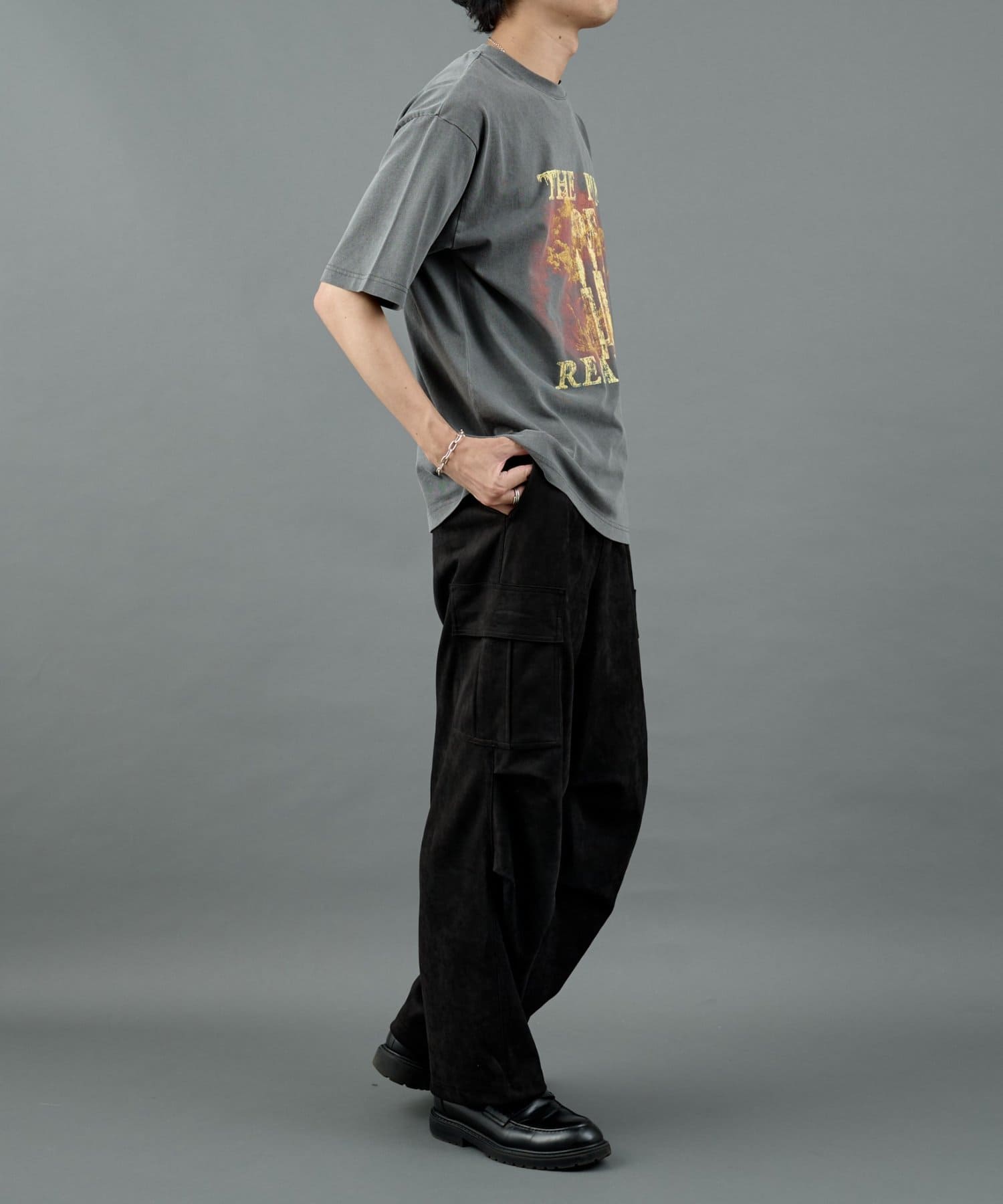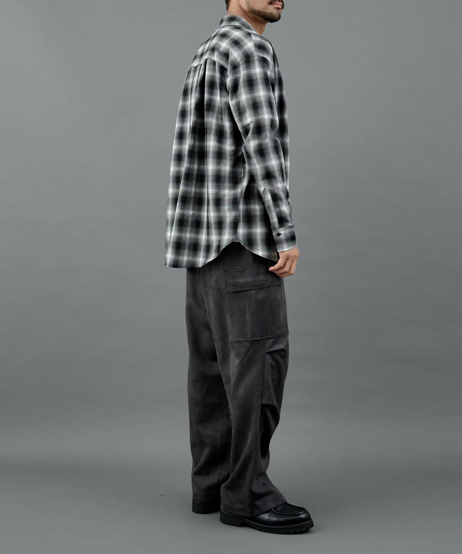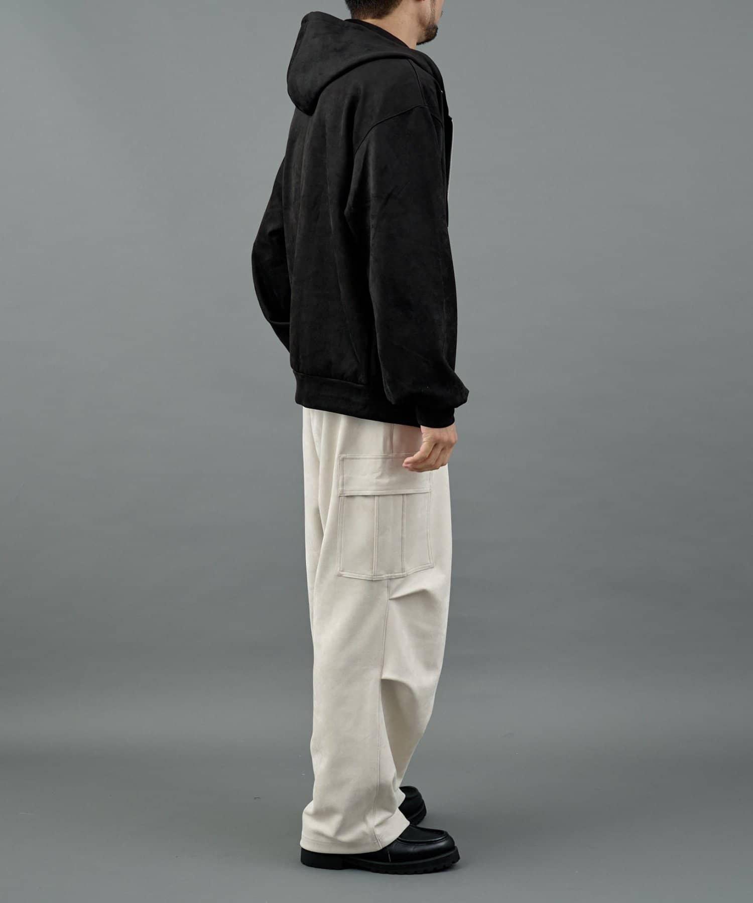 上品な光沢としなやかな質感が魅力のシンセティックスエード素材を使用したカーゴパンツです。