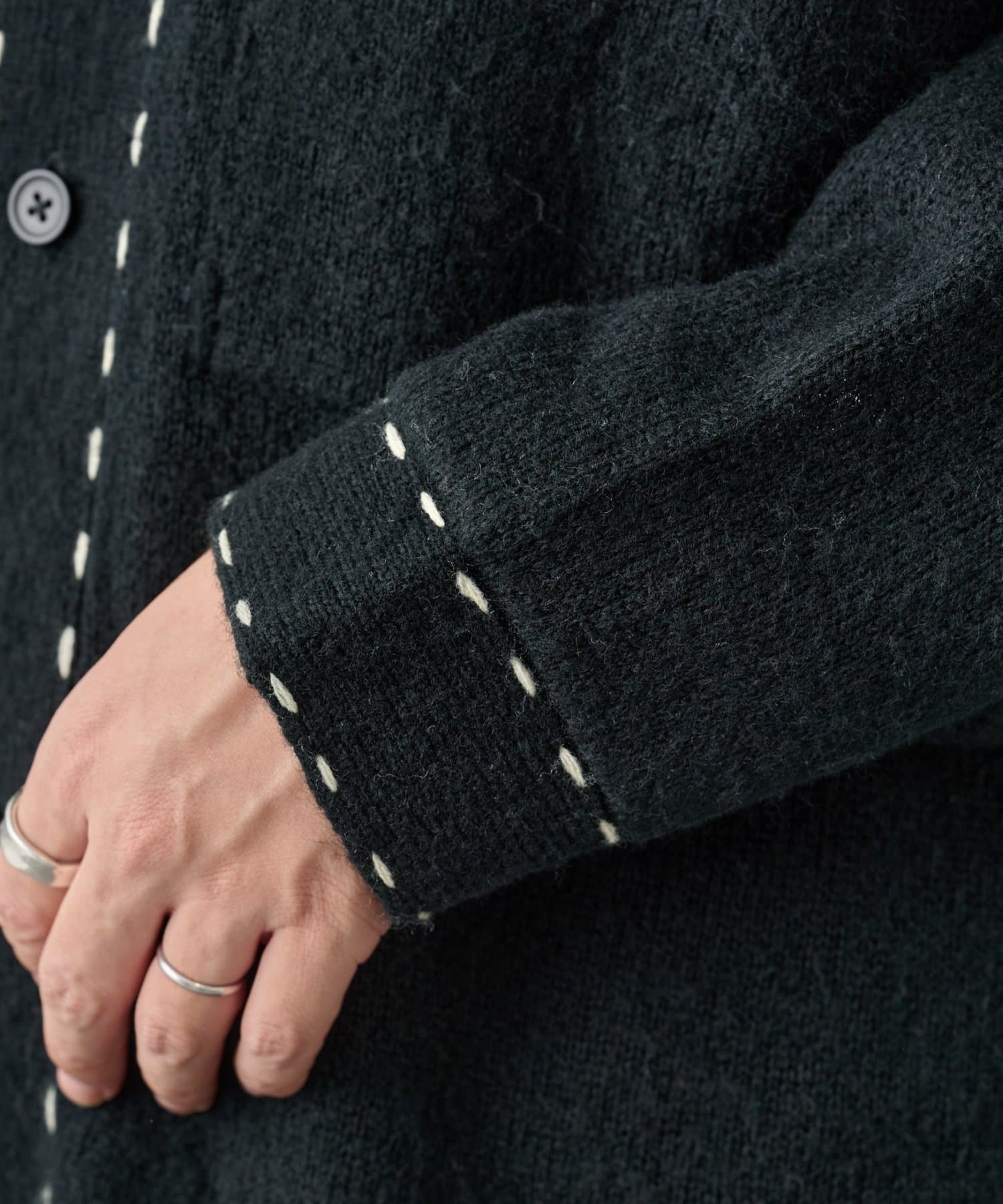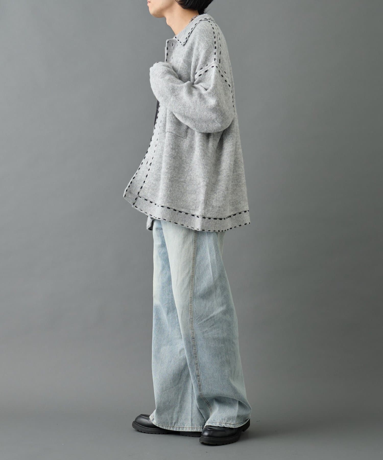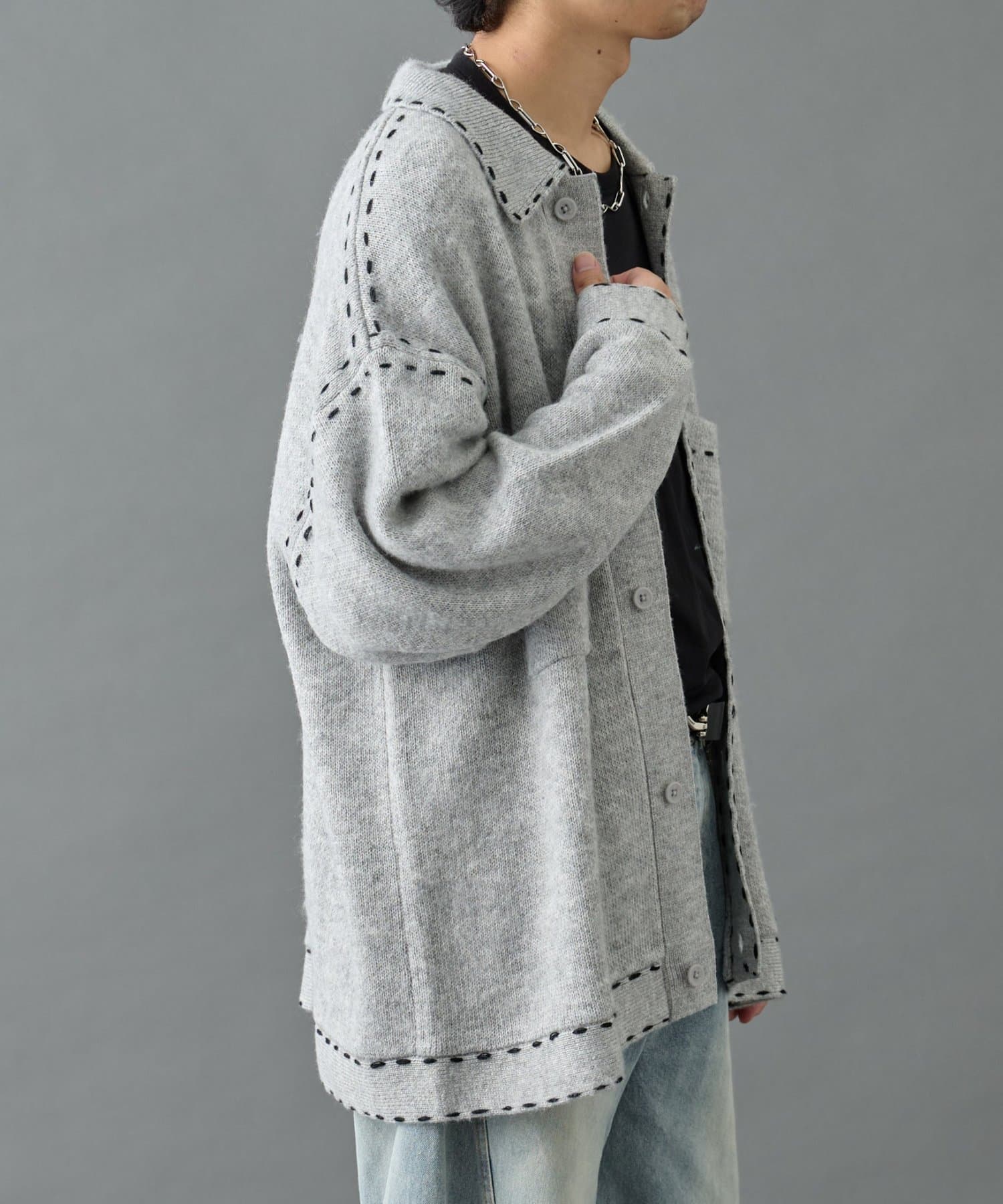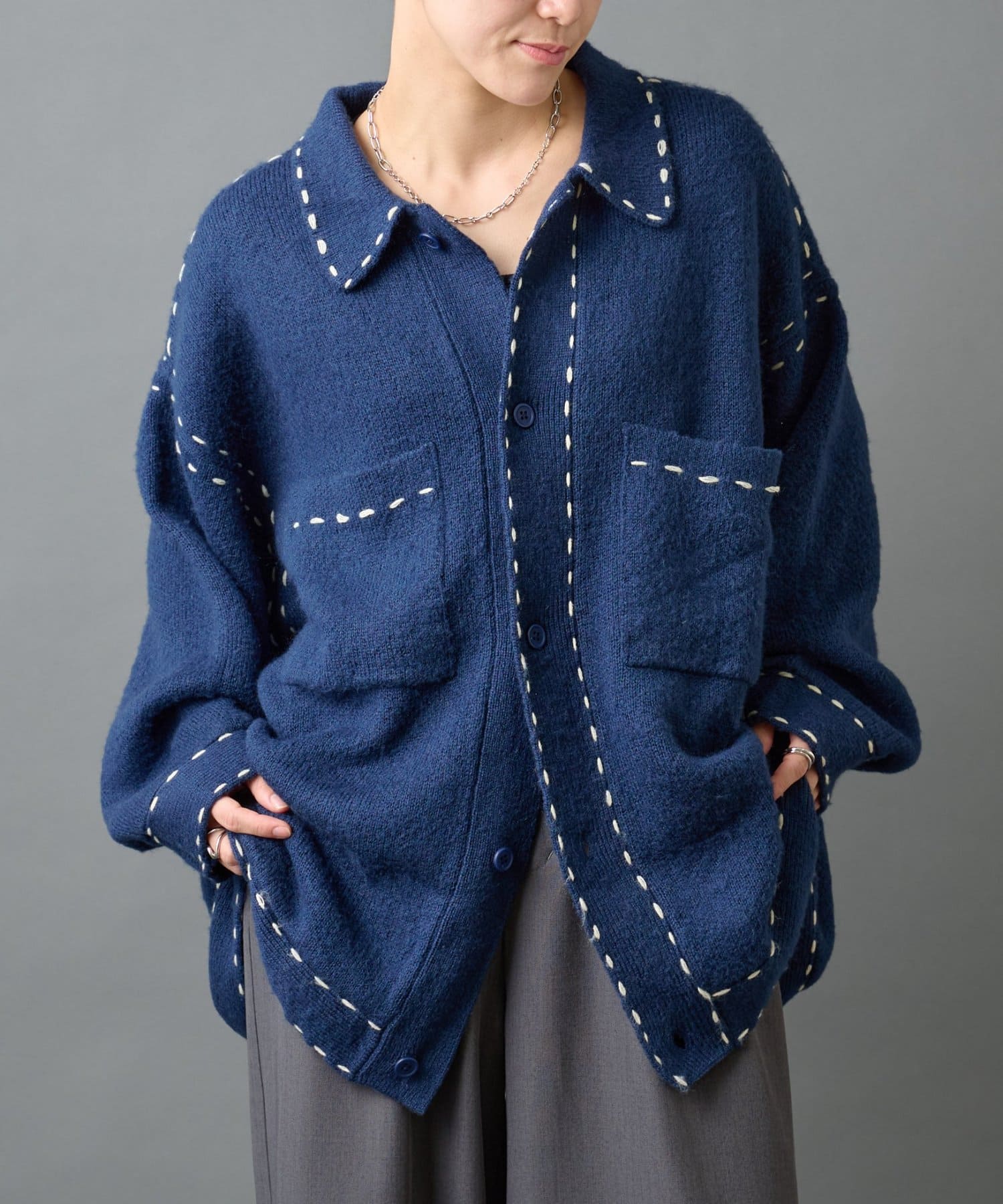 【ステッチがアクセントに。モヘアライクハンドステッチ襟付きカーディガン】