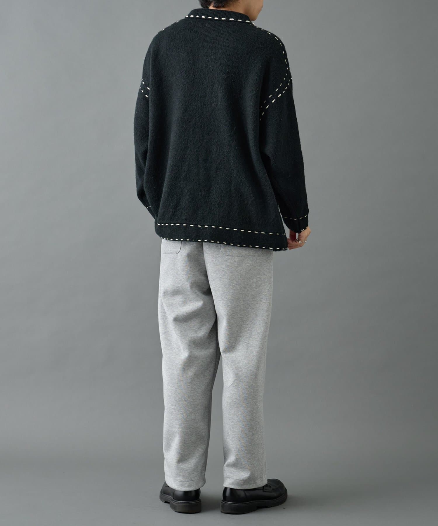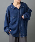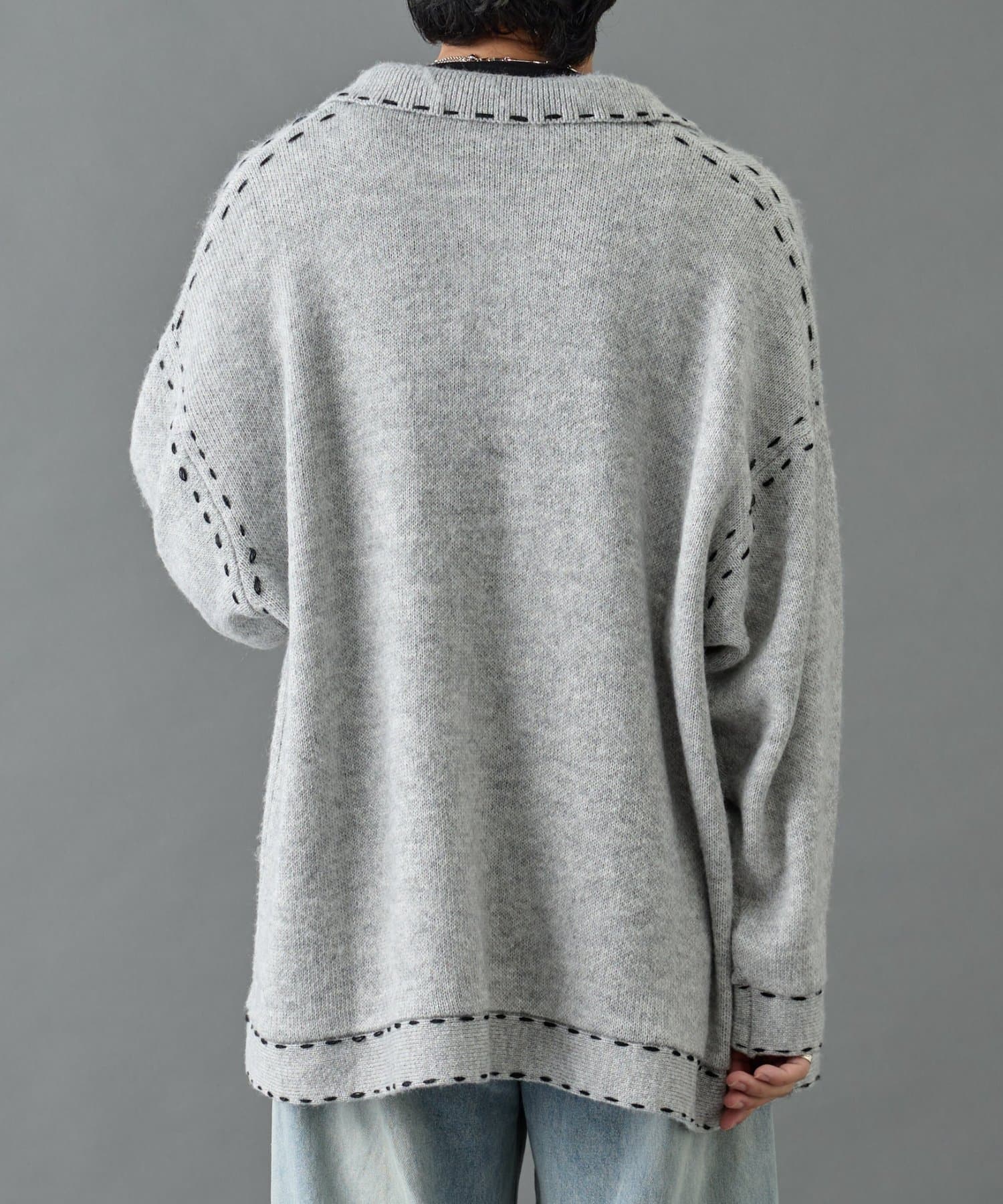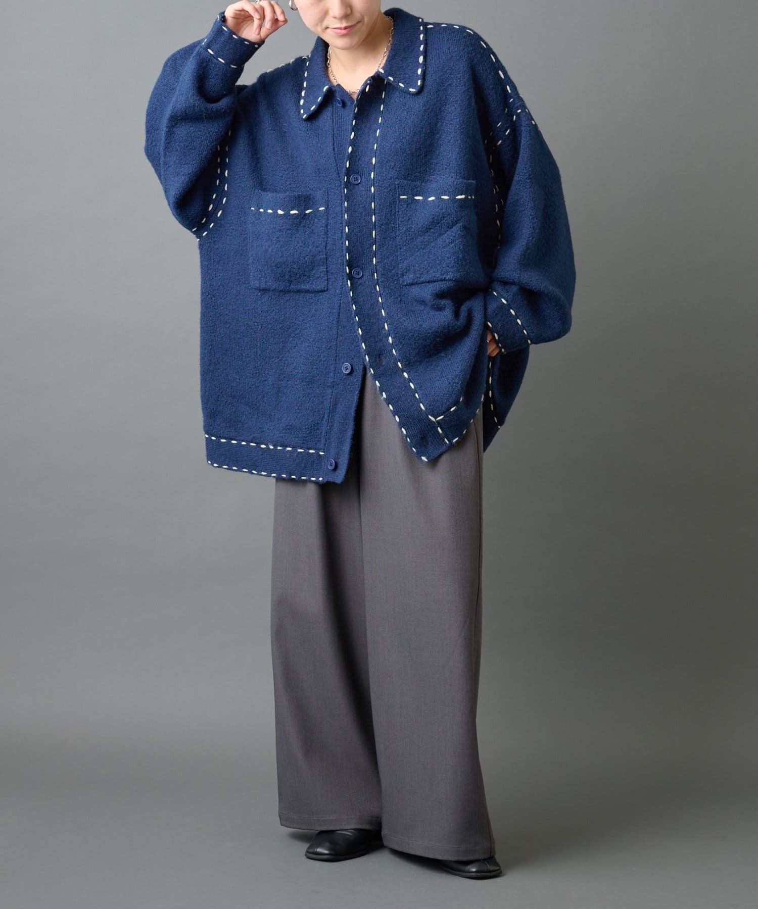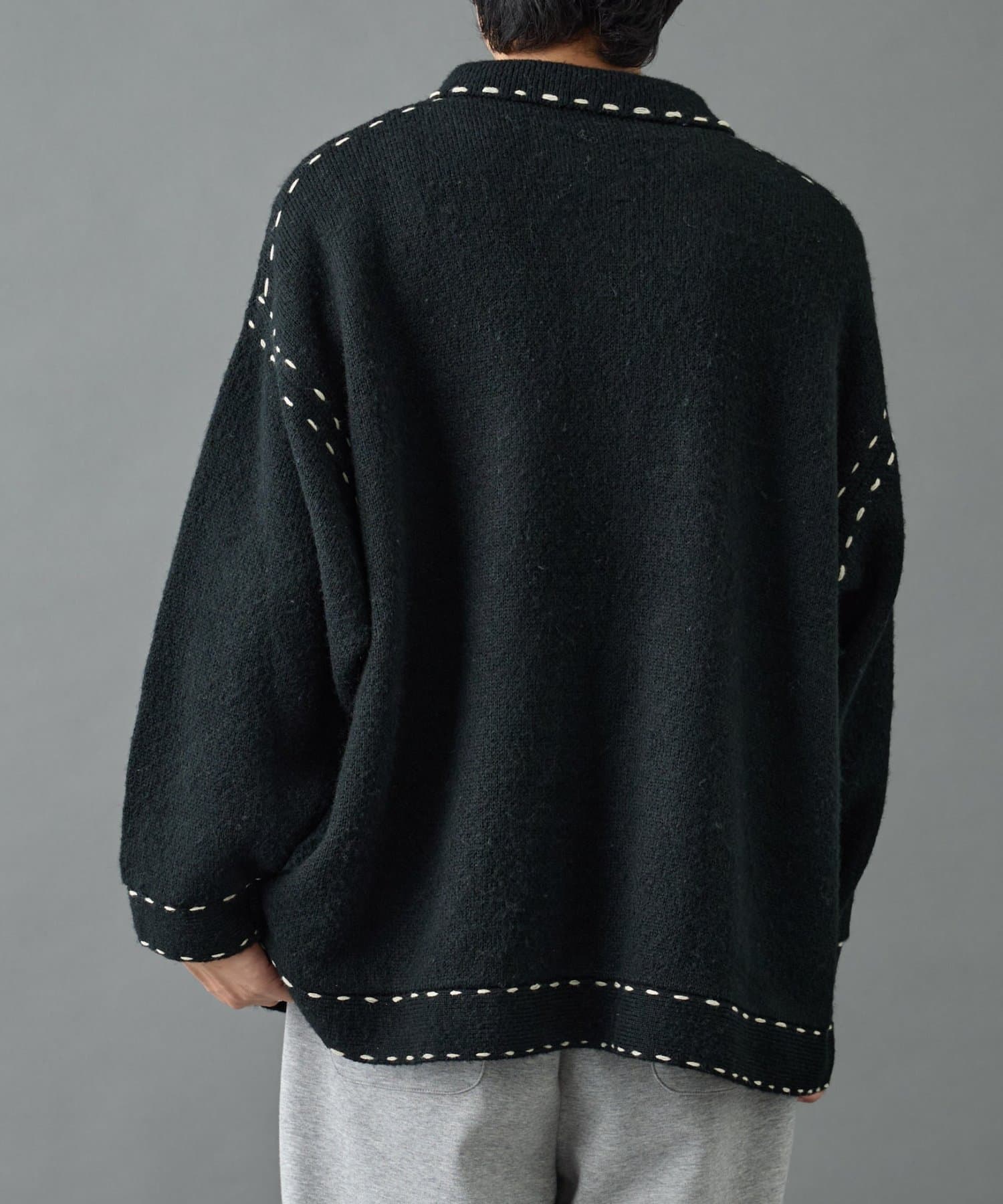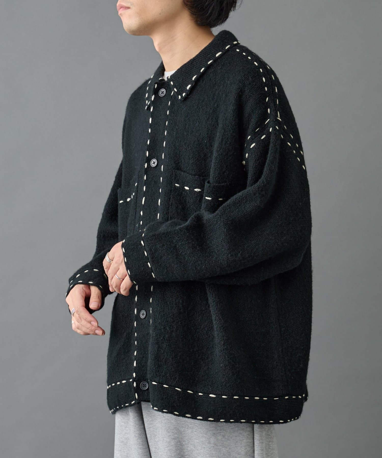 【ステッチがアクセントに。モヘアライクハンドステッチ襟付きカーディガン】