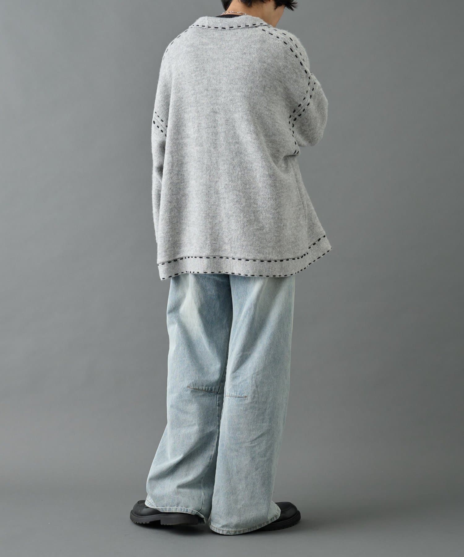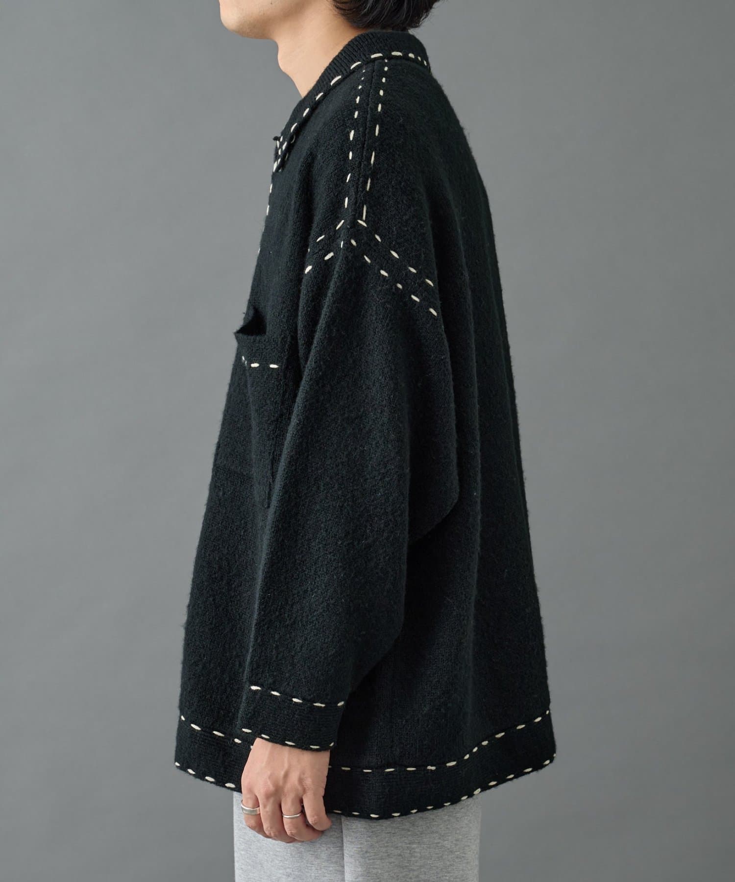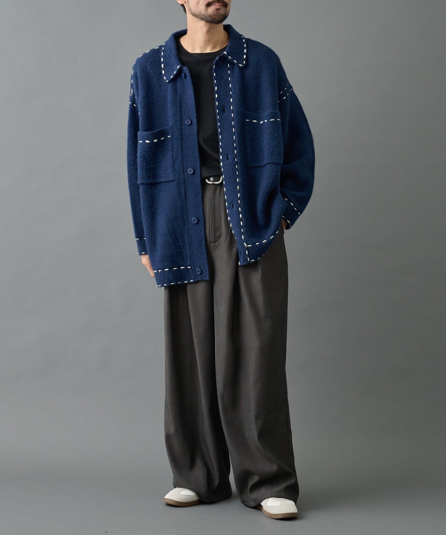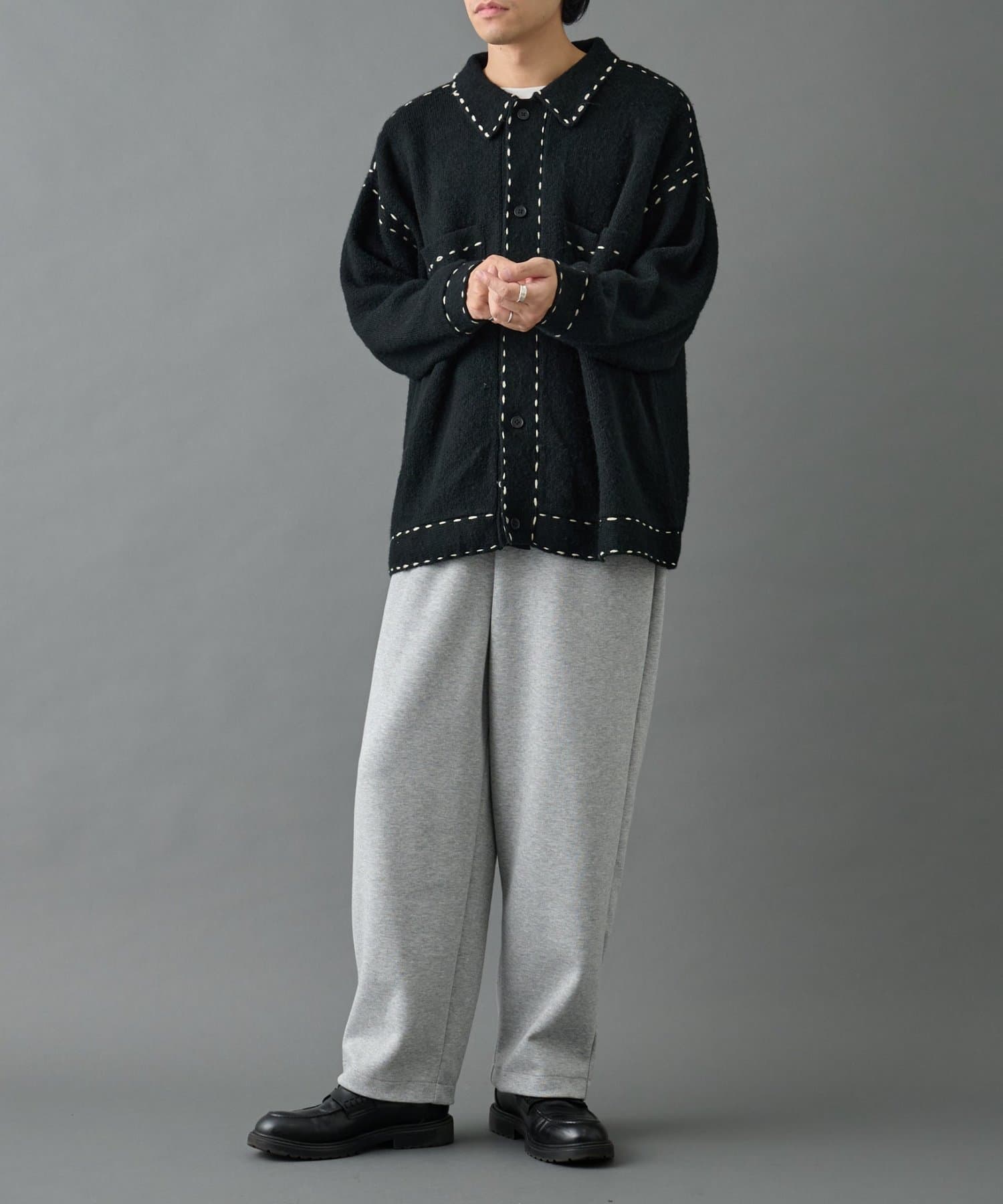 【ステッチがアクセントに。モヘアライクハンドステッチ襟付きカーディガン】