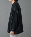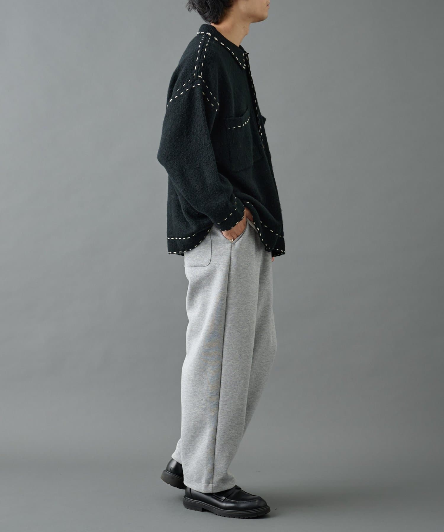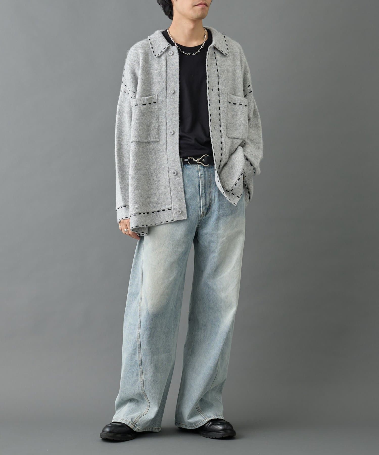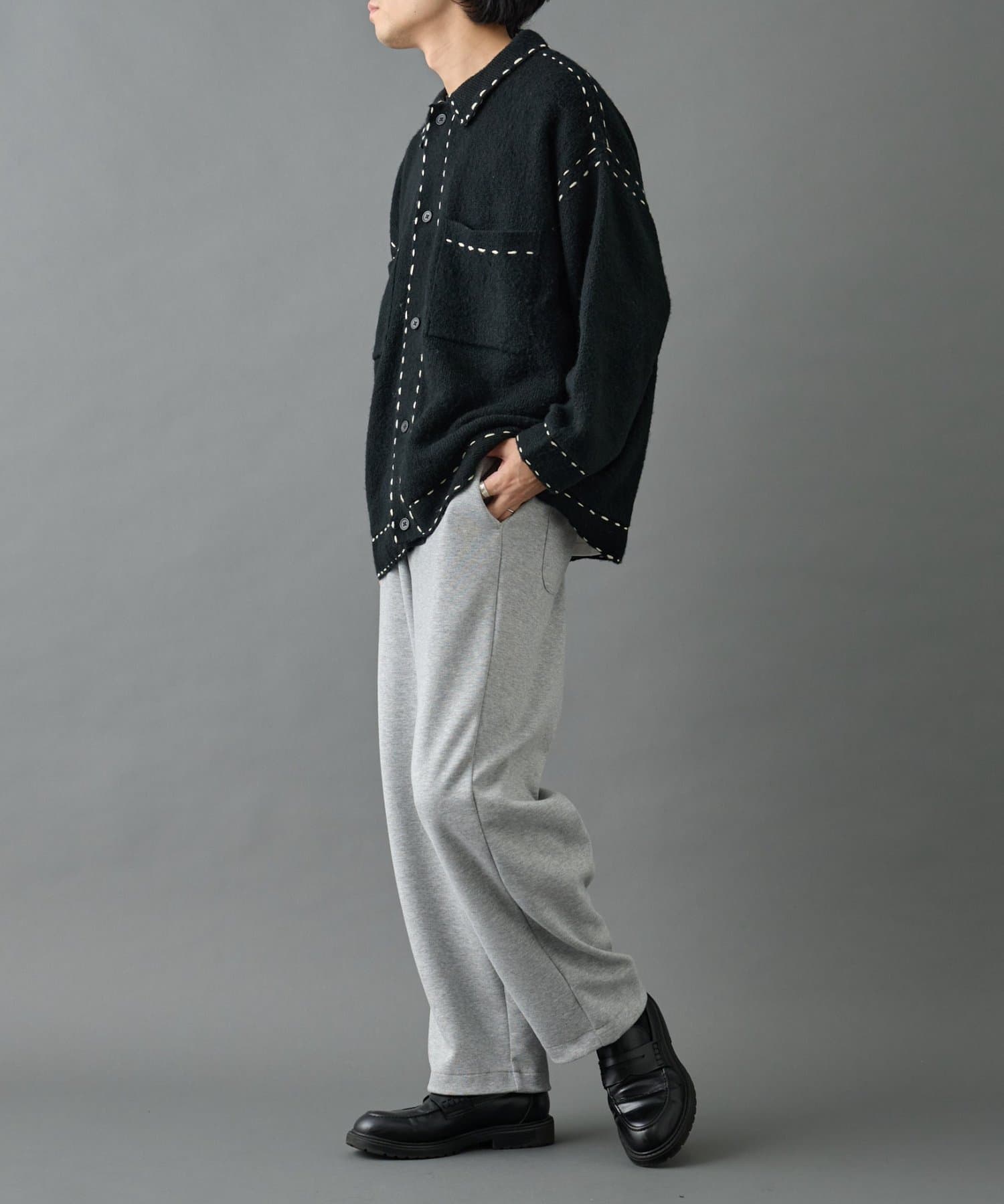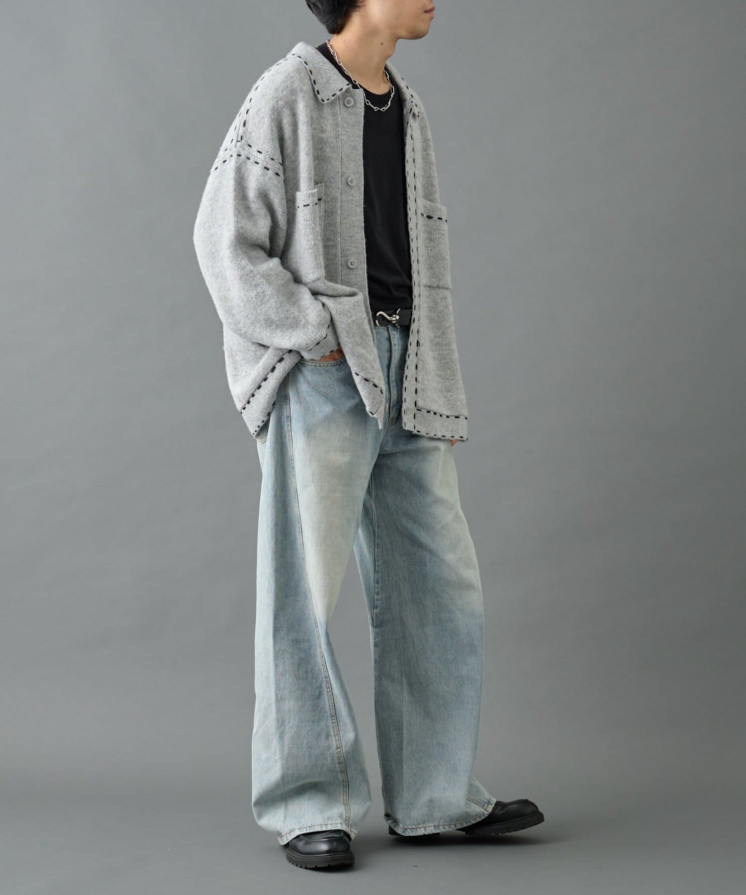 【ステッチがアクセントに。モヘアライクハンドステッチ襟付きカーディガン】