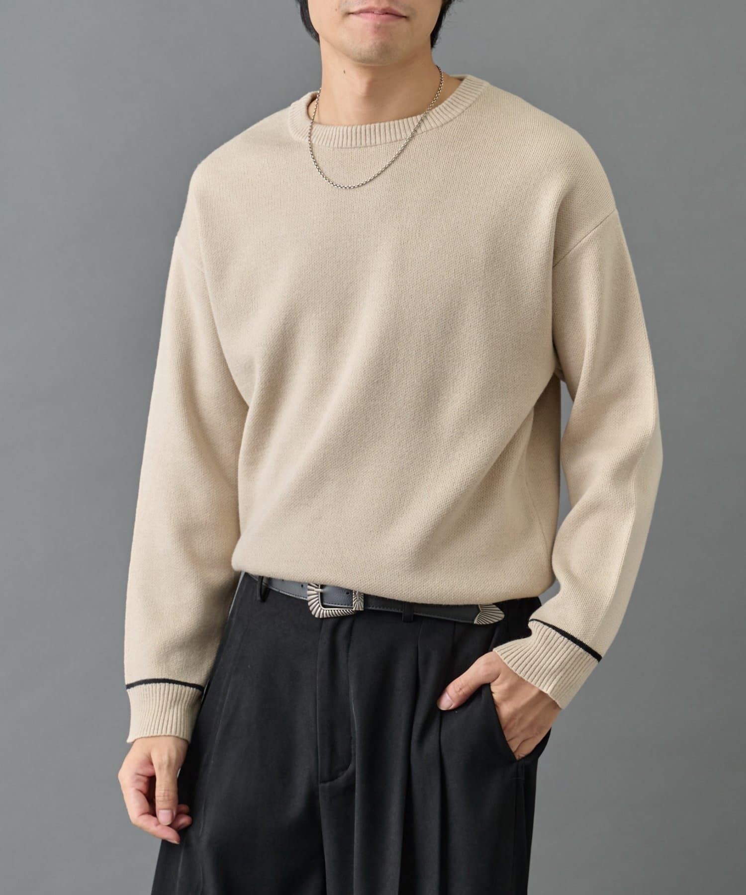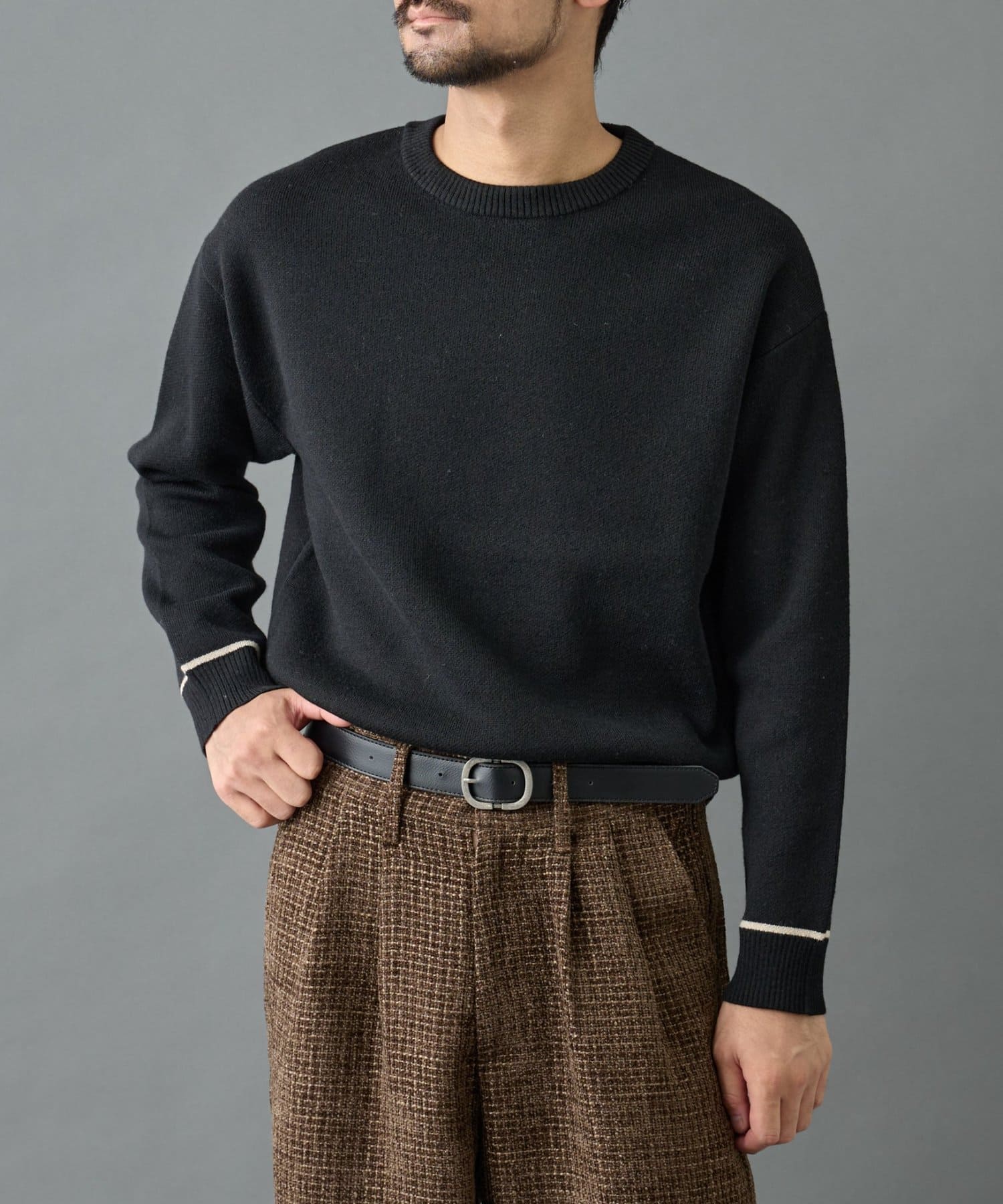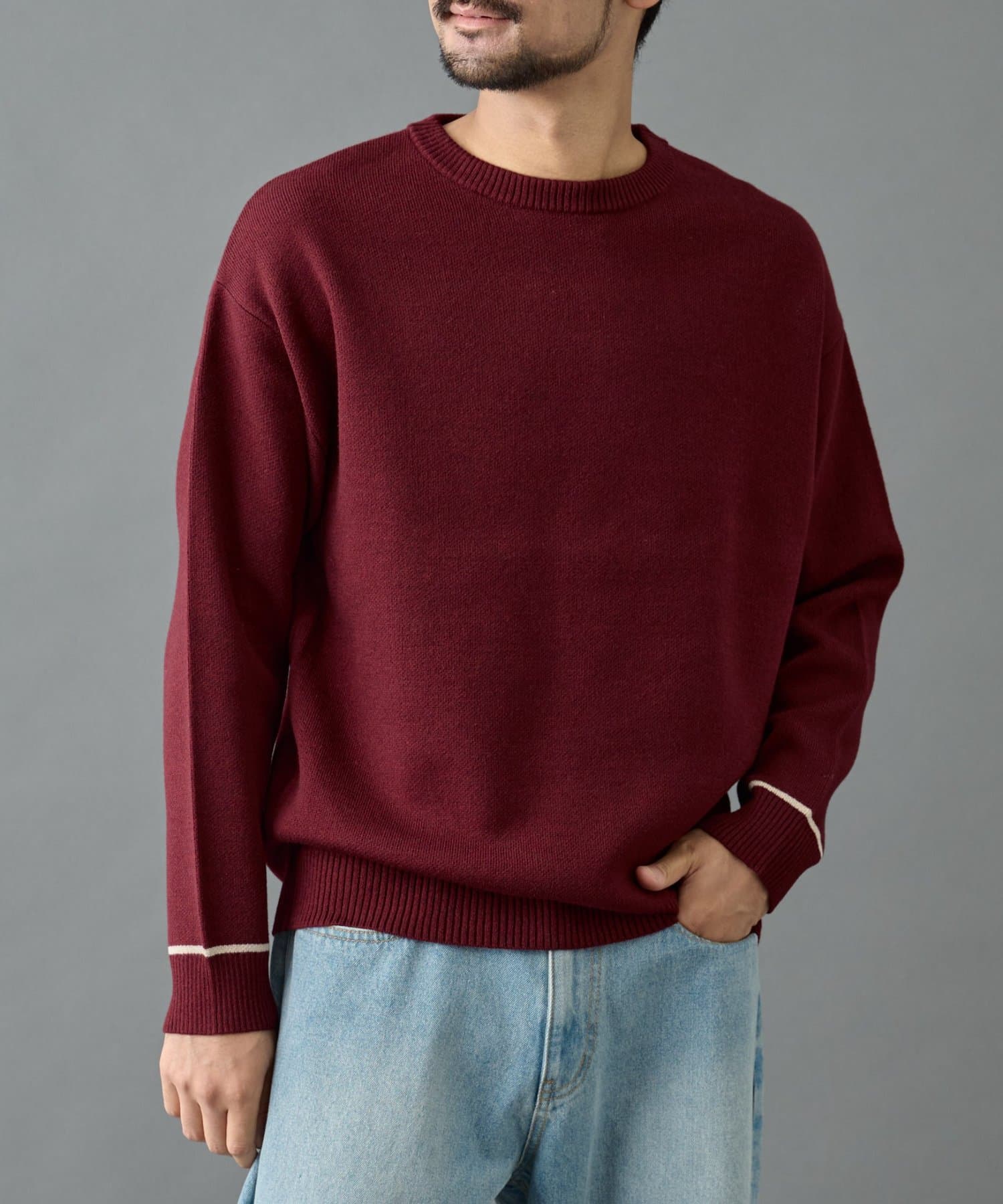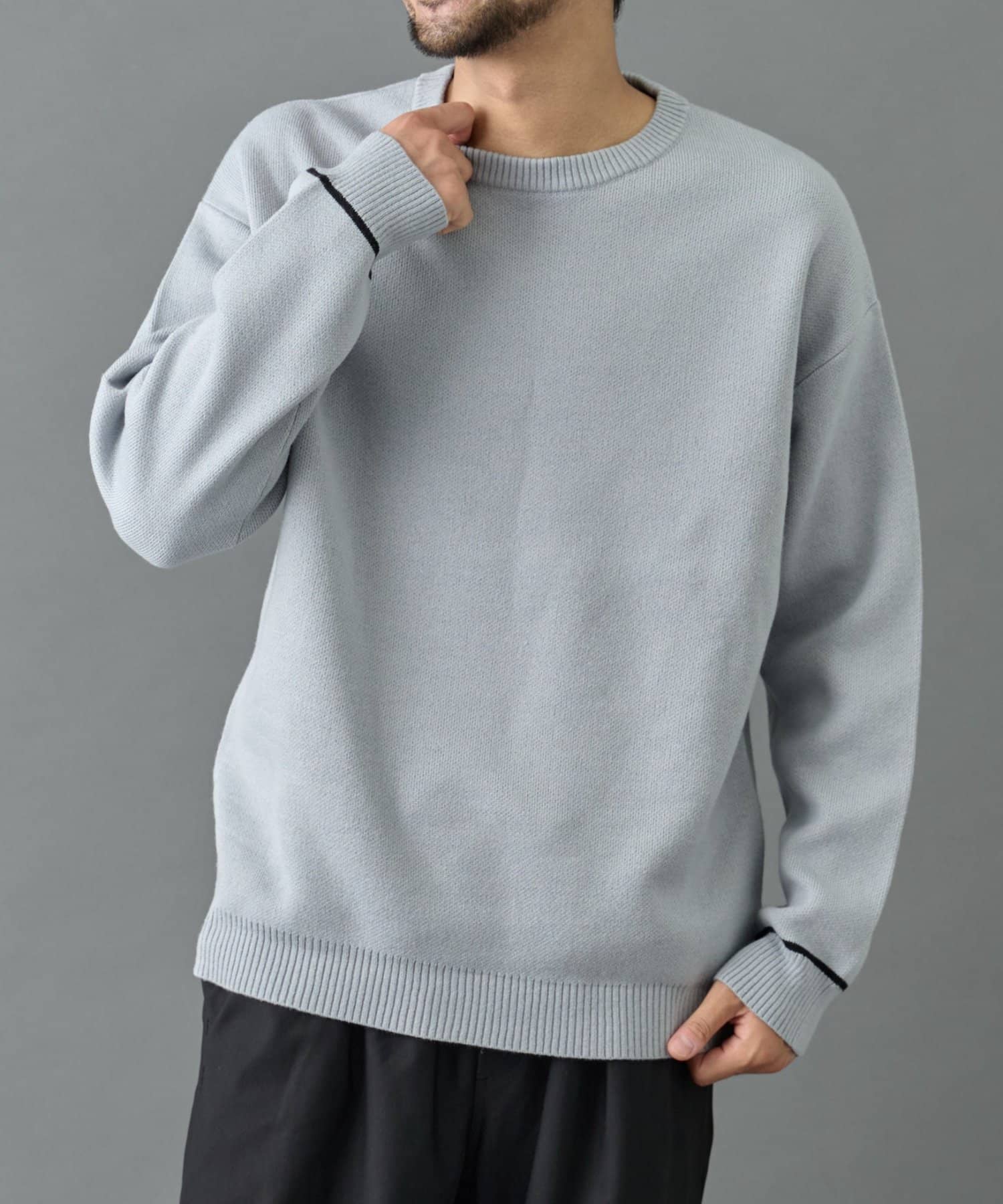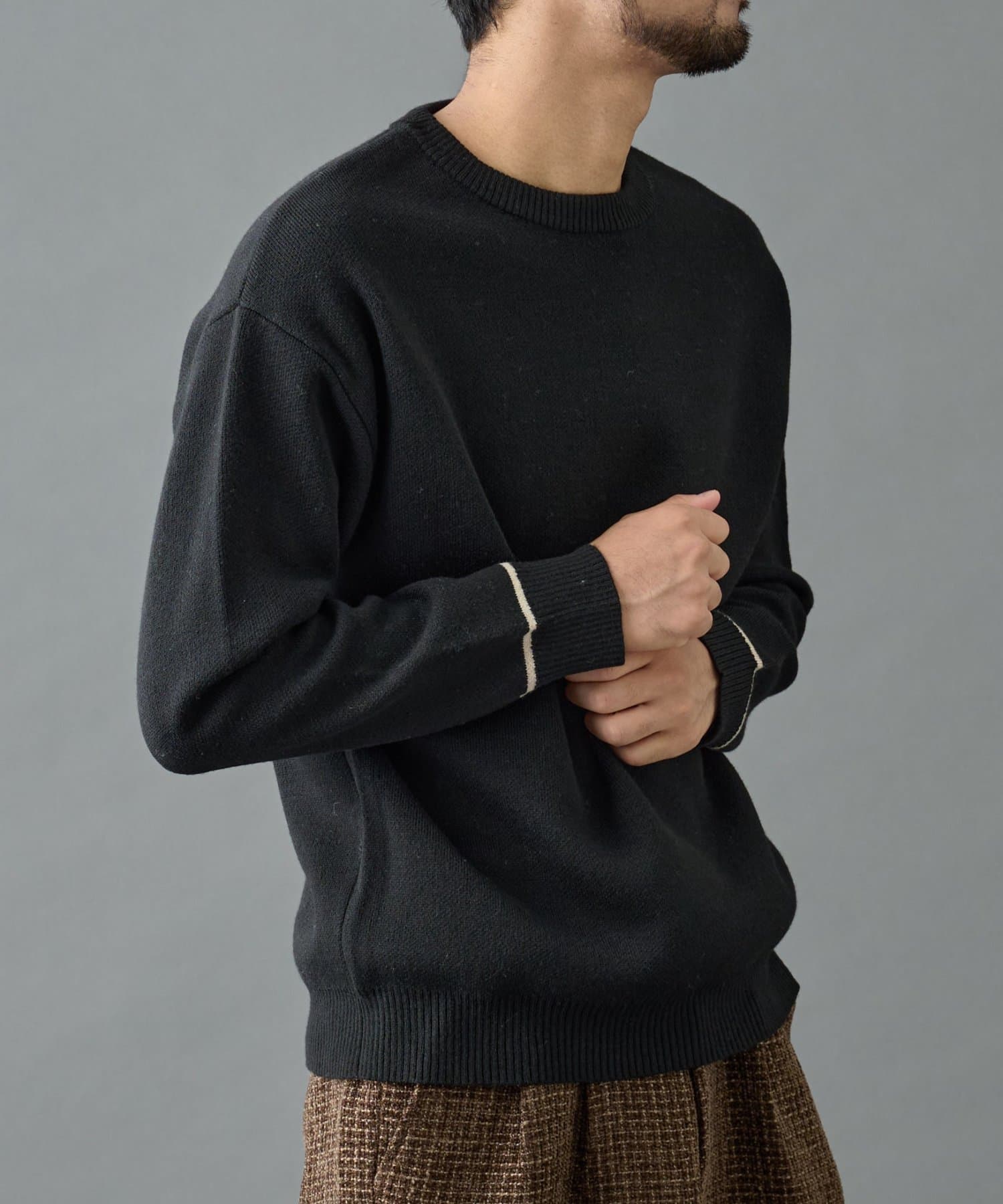 ベーシックなクルーネックニットに、洗練された配色ラインを加えたニットです。
