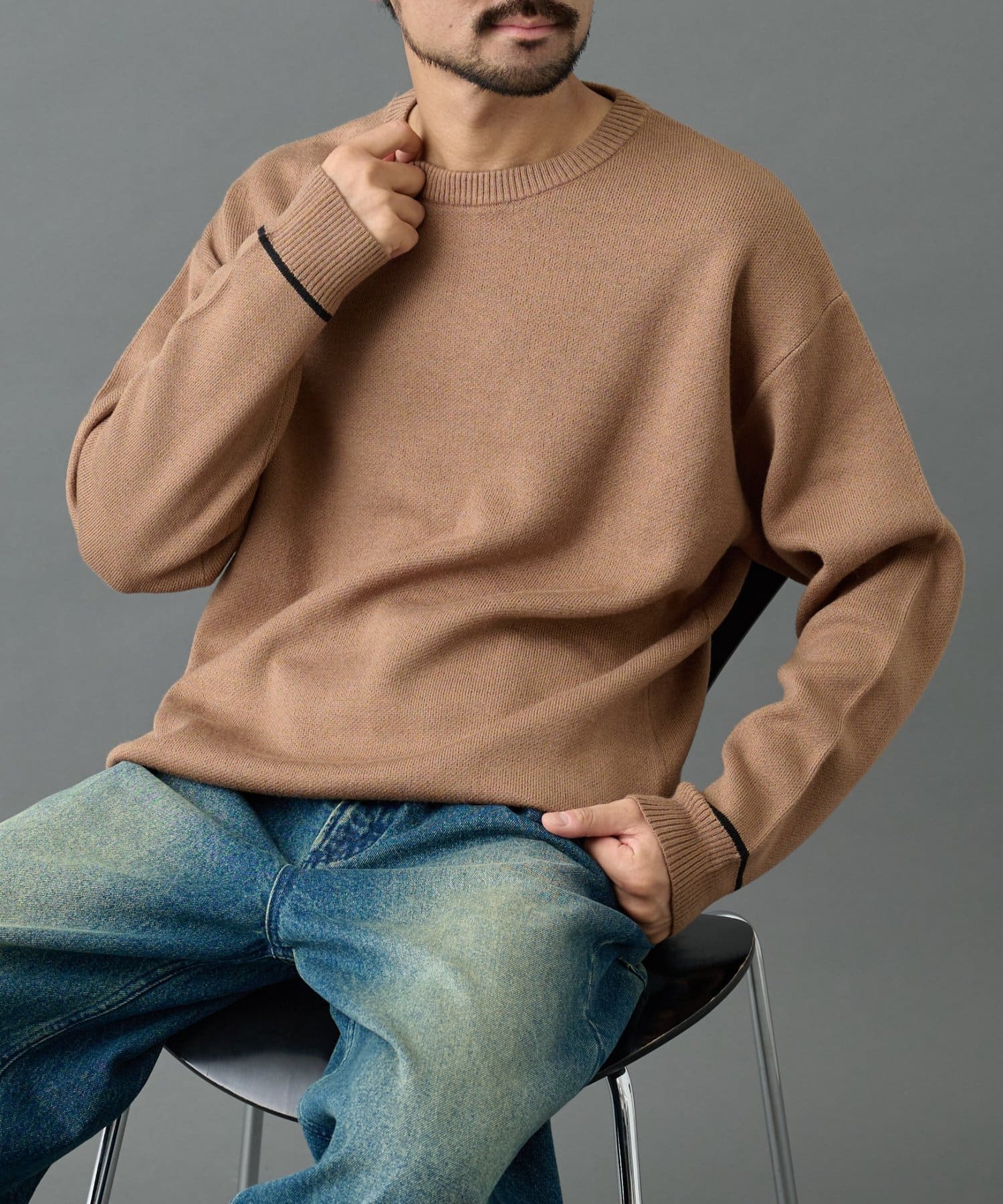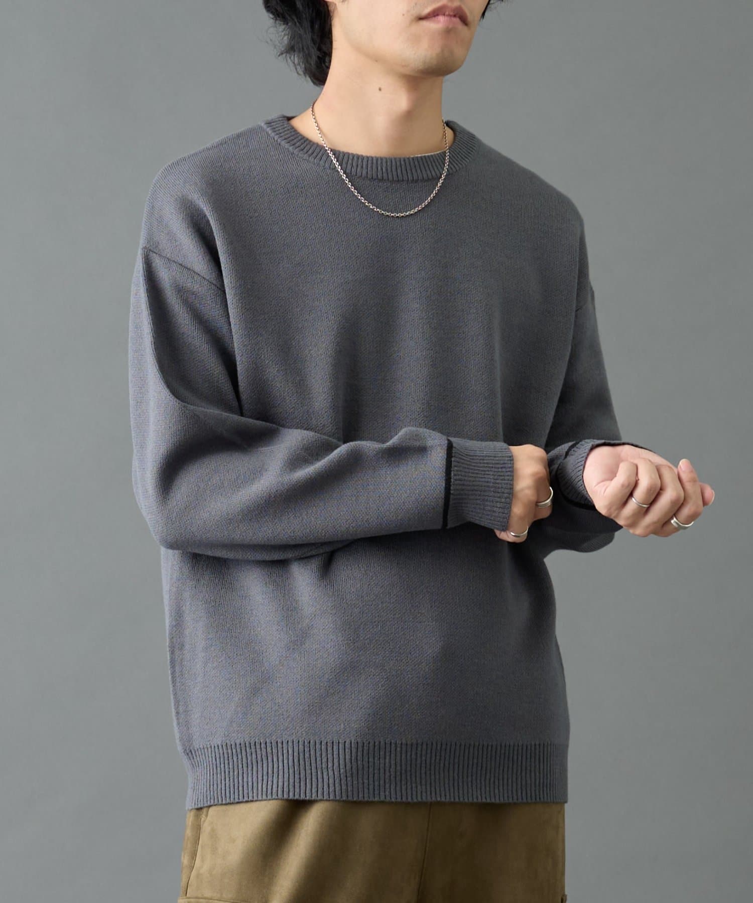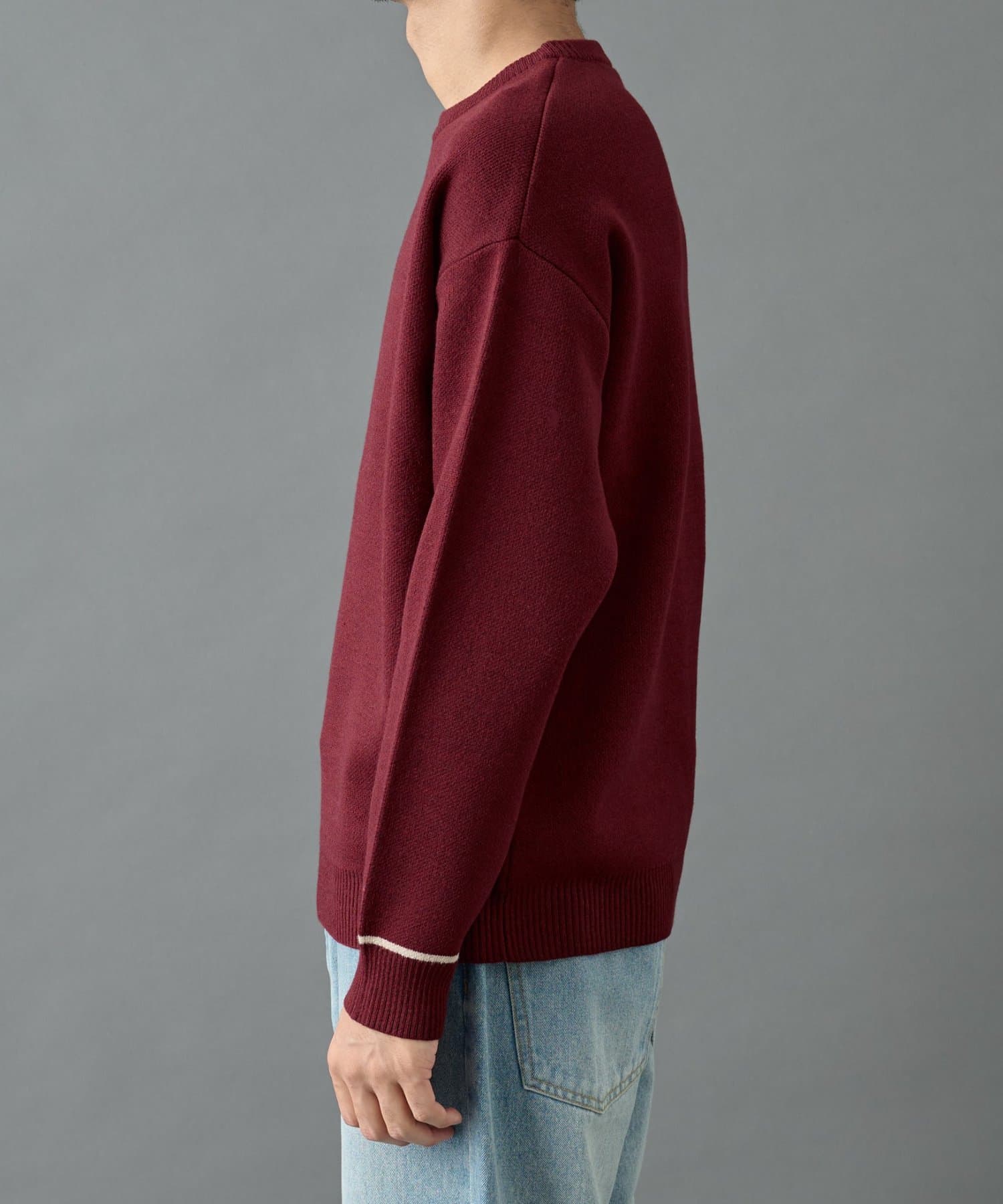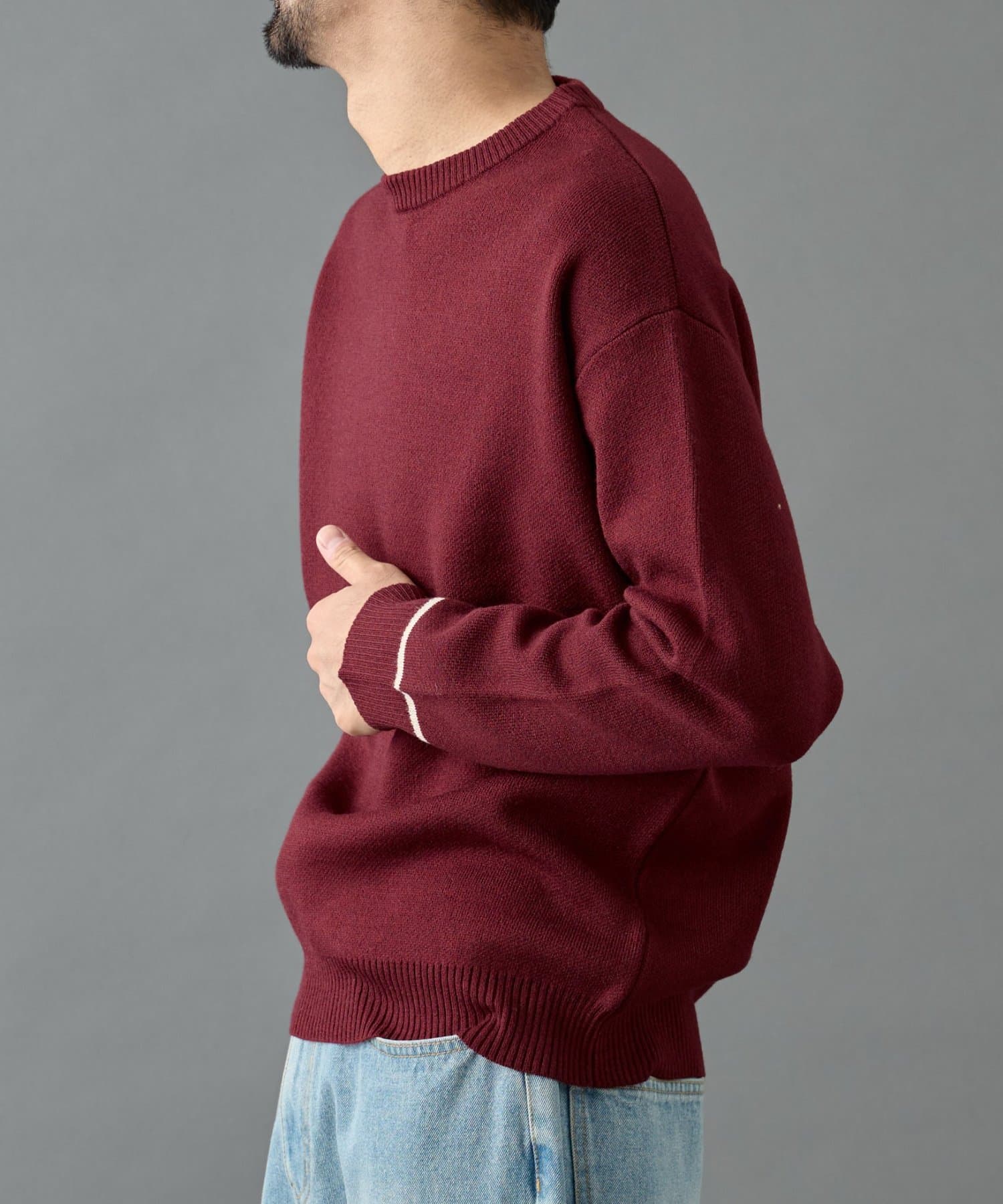 ベーシックなクルーネックニットに、洗練された配色ラインを加えたニットです。
