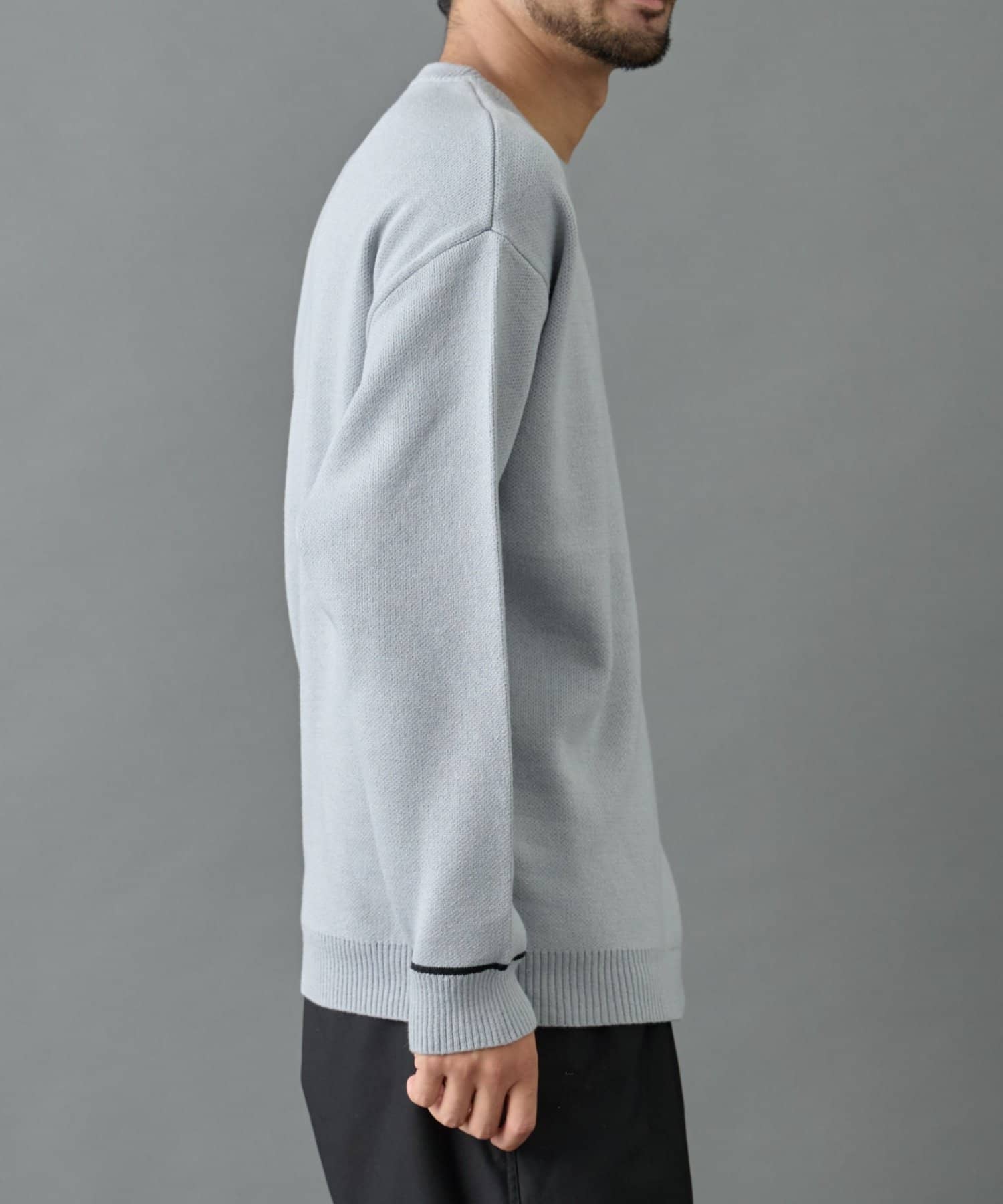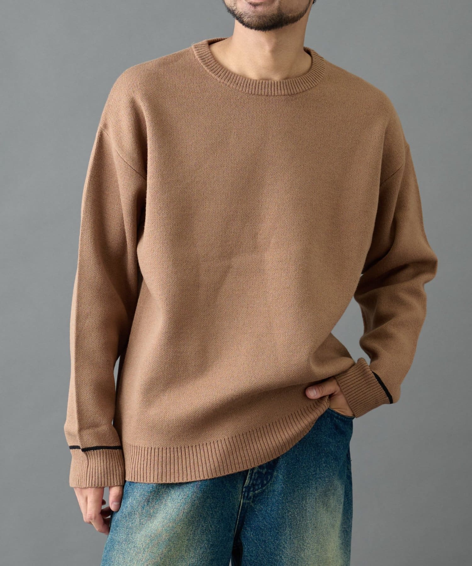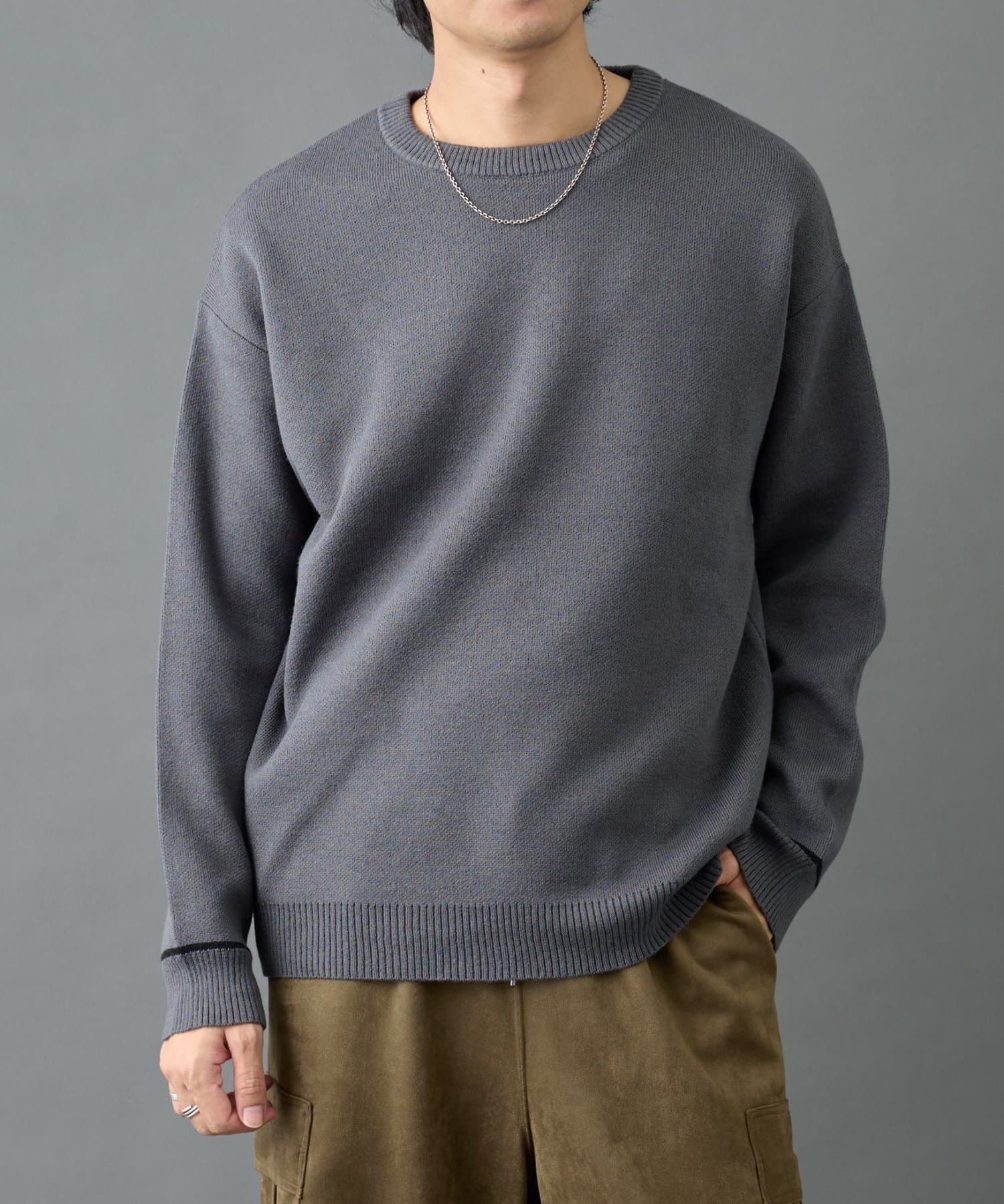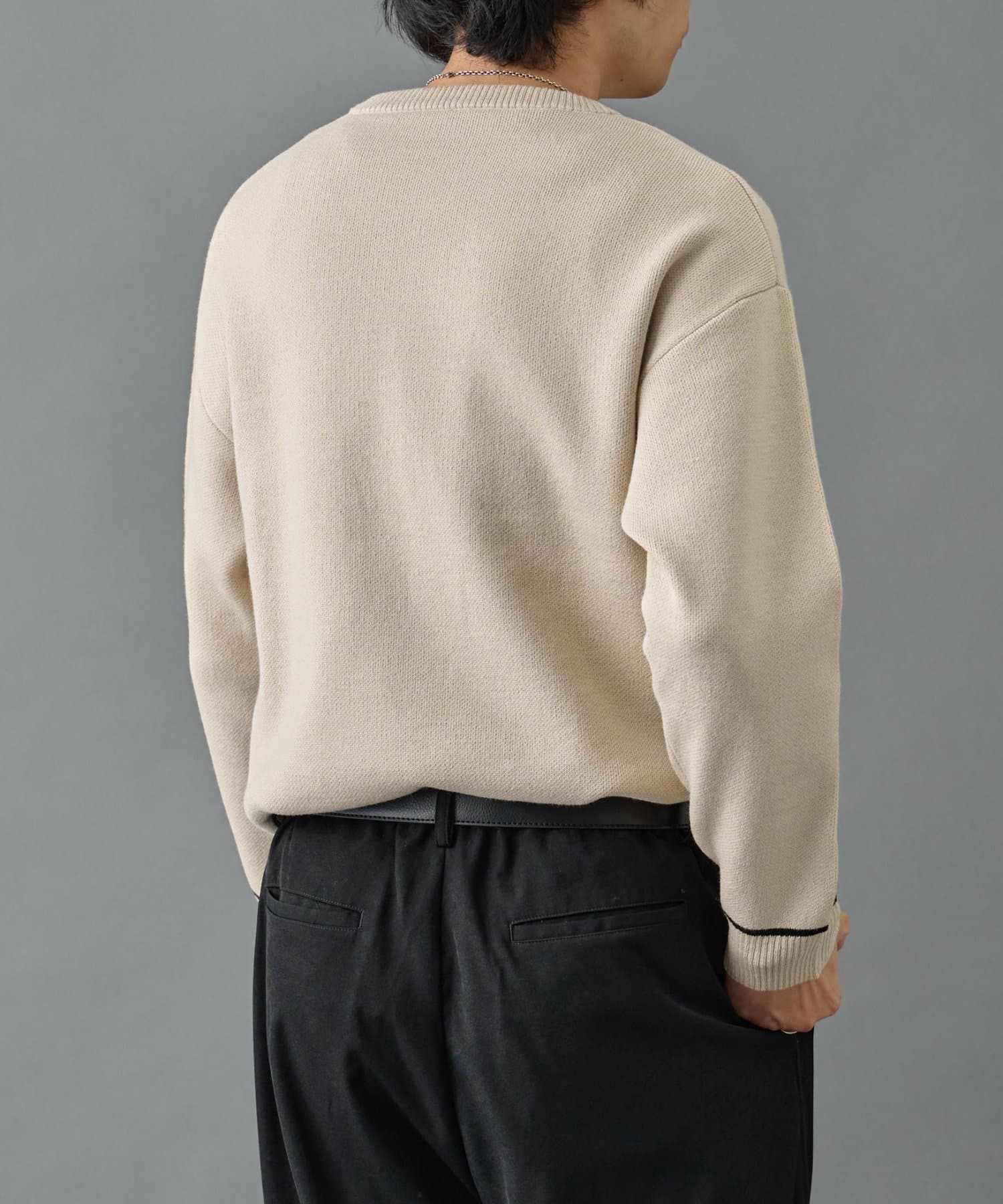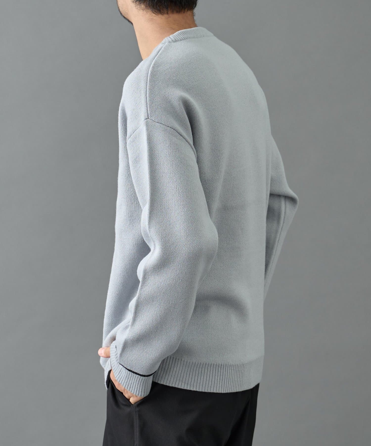 ベーシックなクルーネックニットに、洗練された配色ラインを加えたニットです。