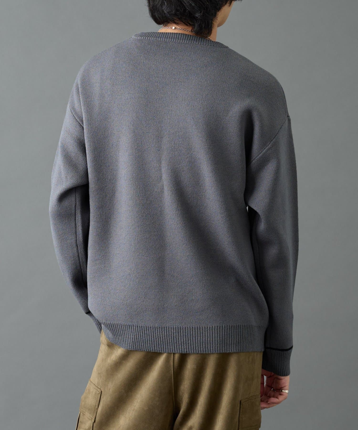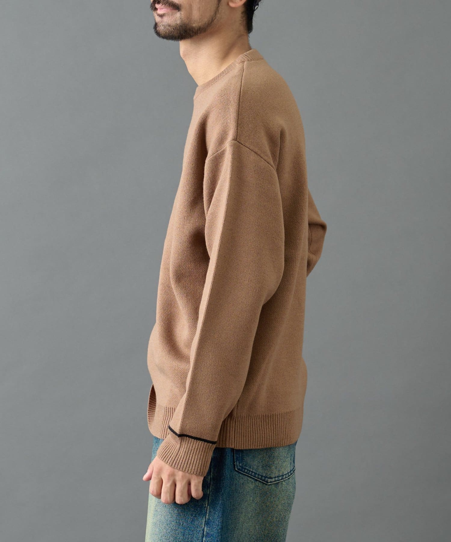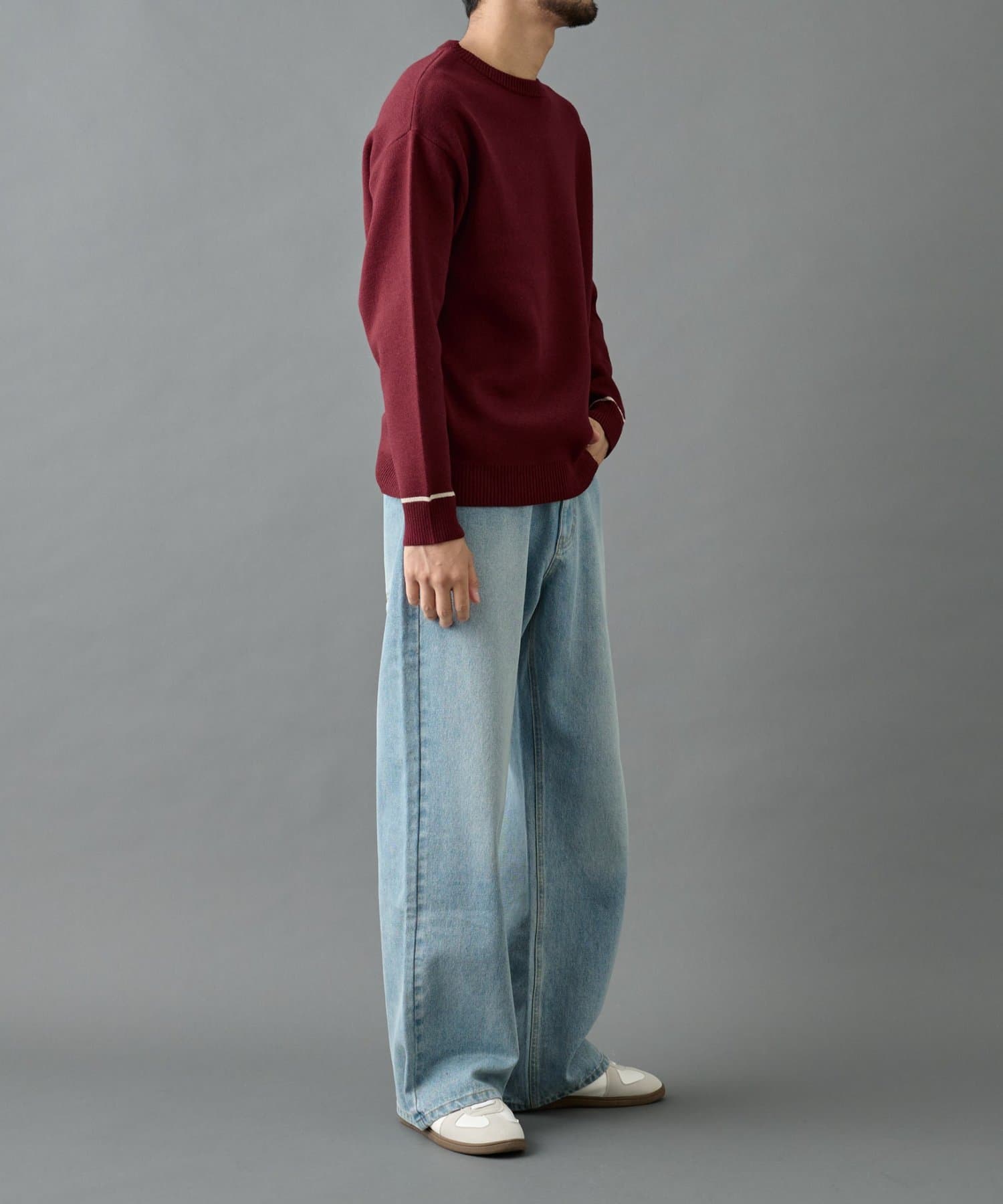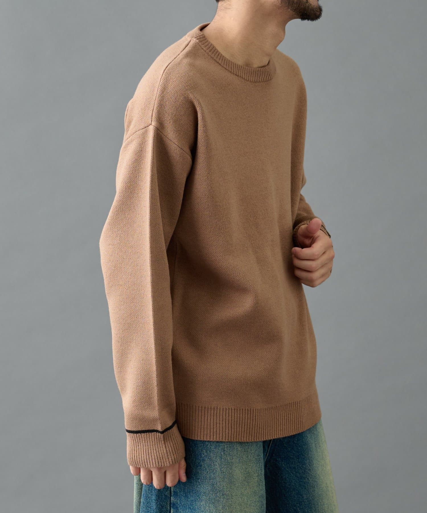 ベーシックなクルーネックニットに、洗練された配色ラインを加えたニットです。