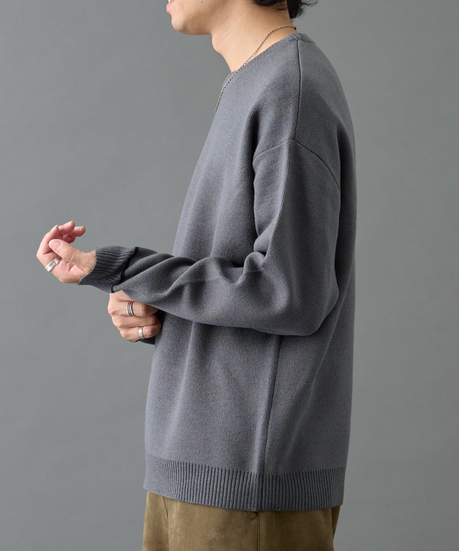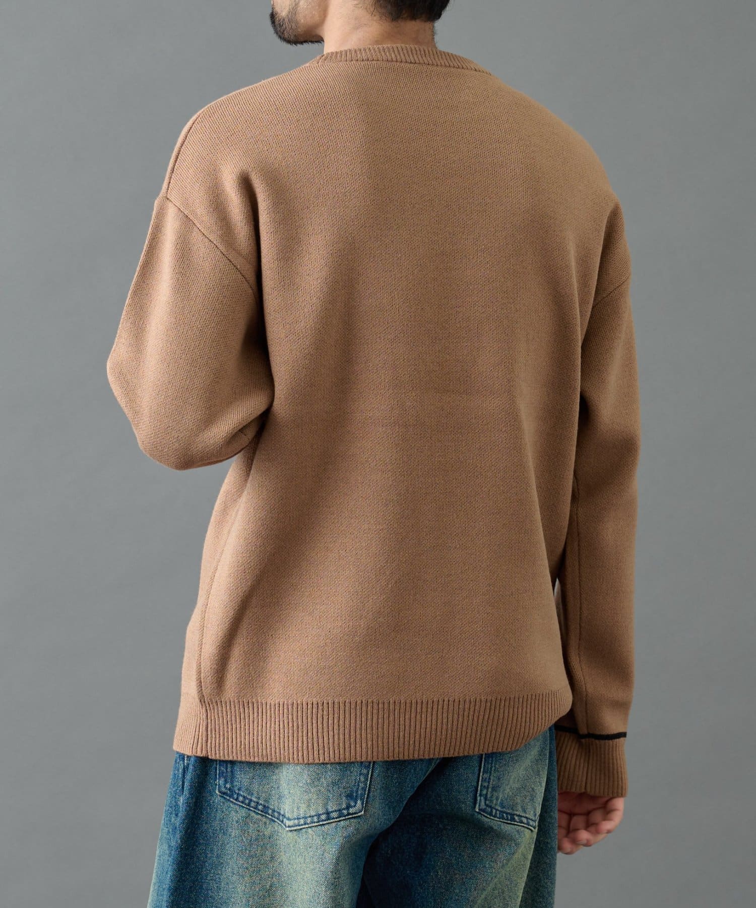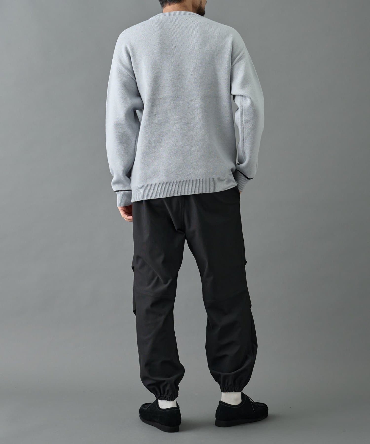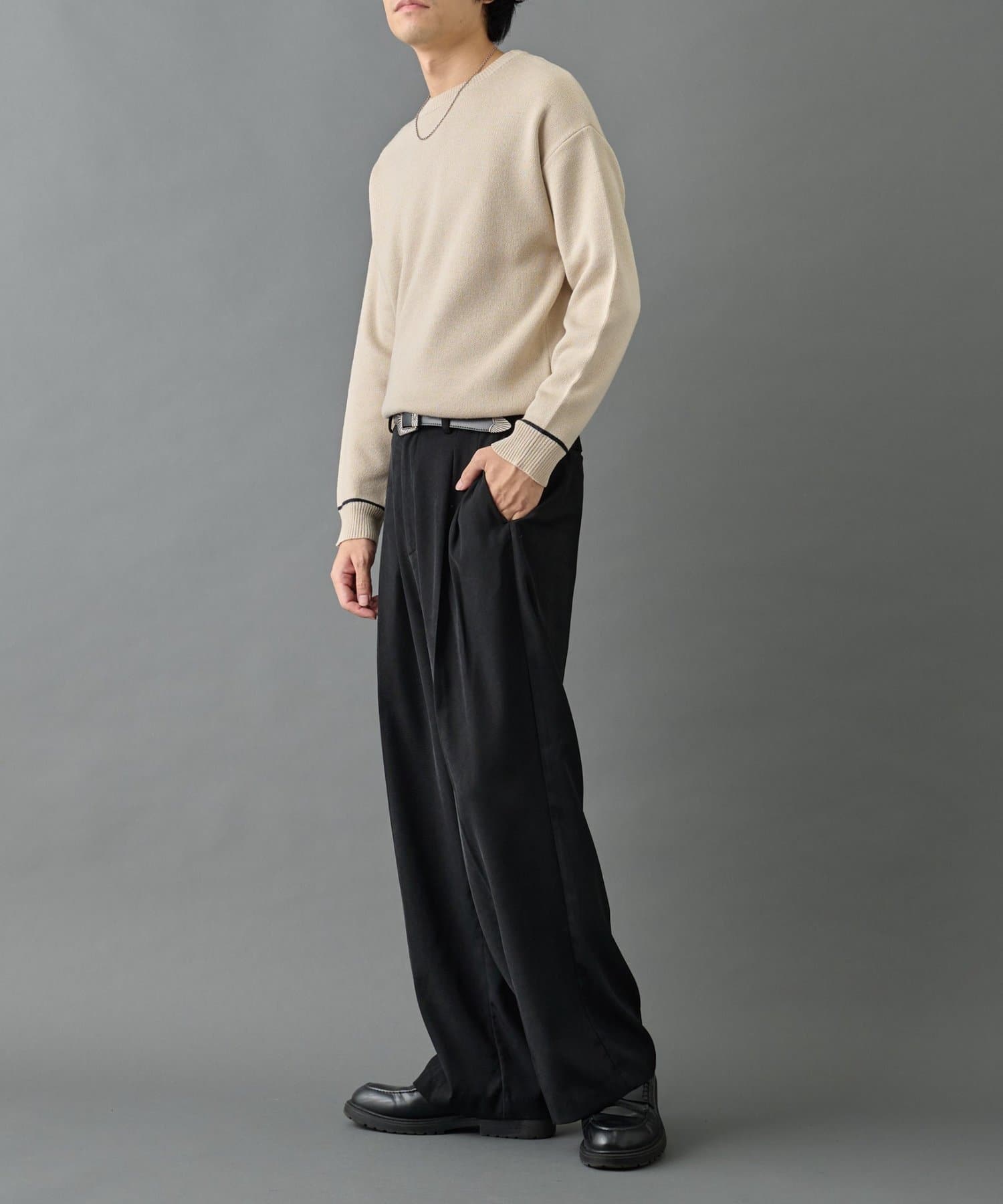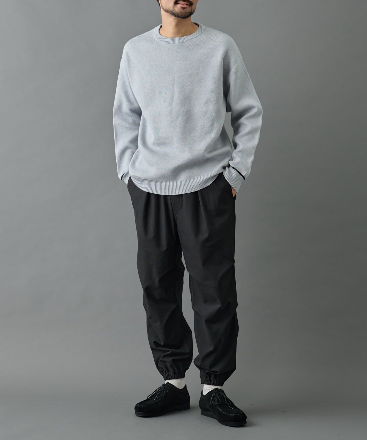 ベーシックなクルーネックニットに、洗練された配色ラインを加えたニットです。