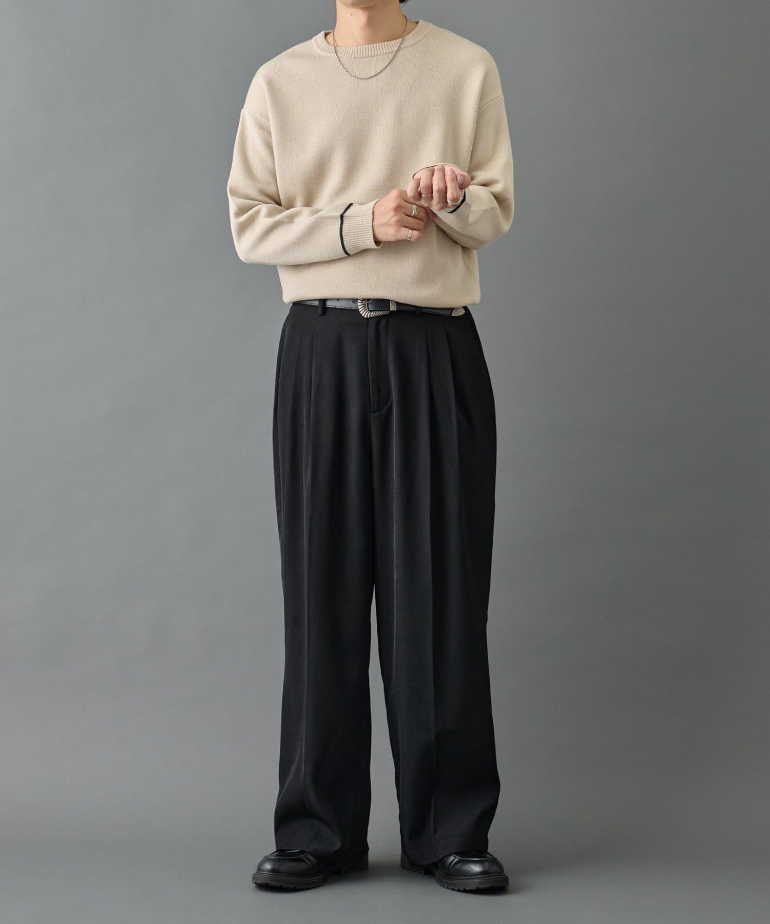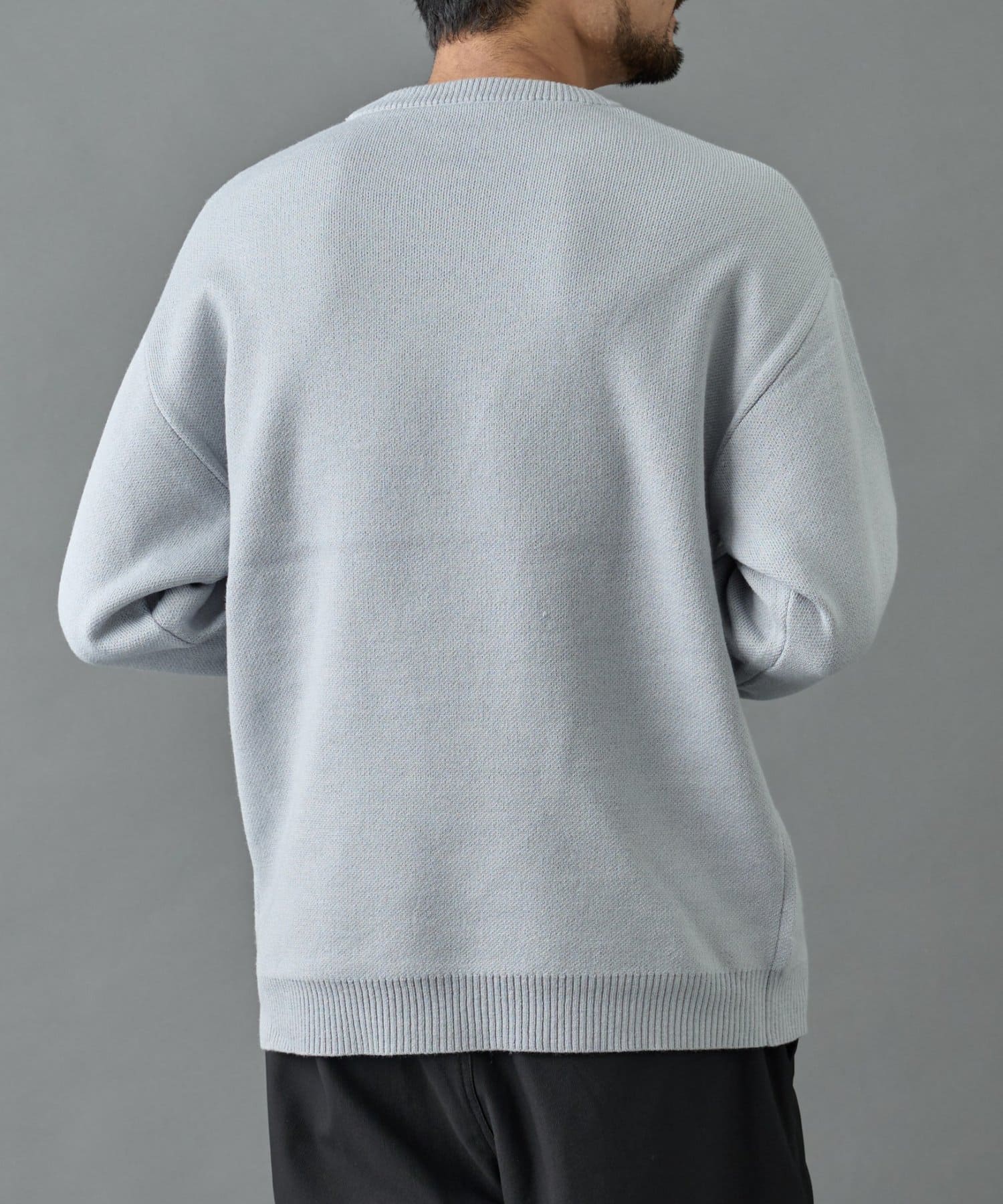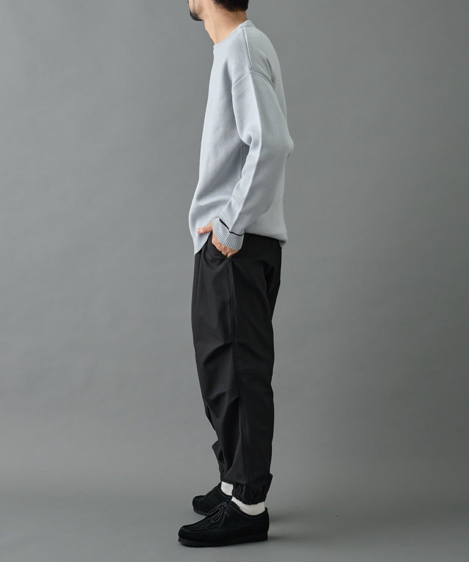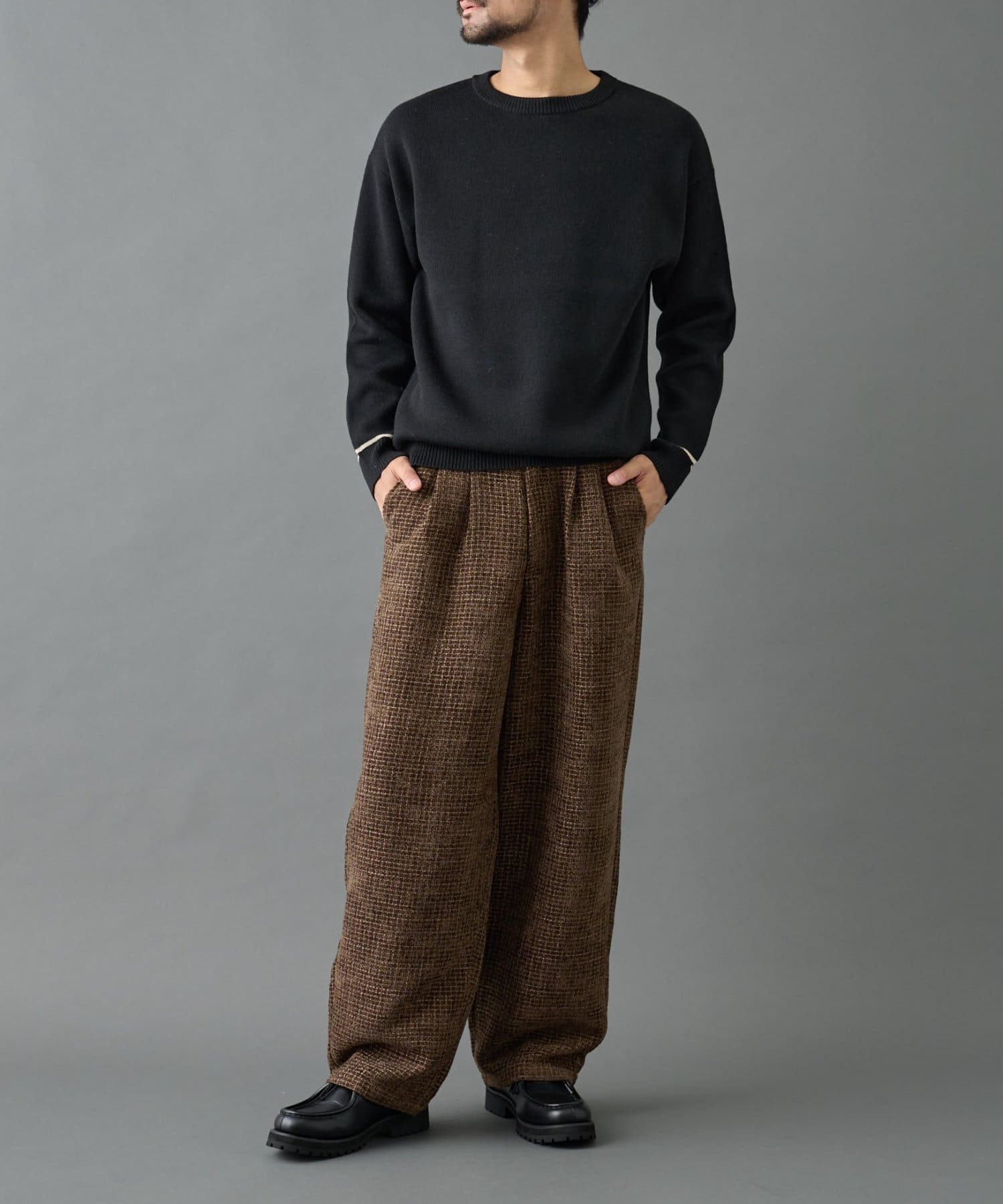 ベーシックなクルーネックニットに、洗練された配色ラインを加えたニットです。