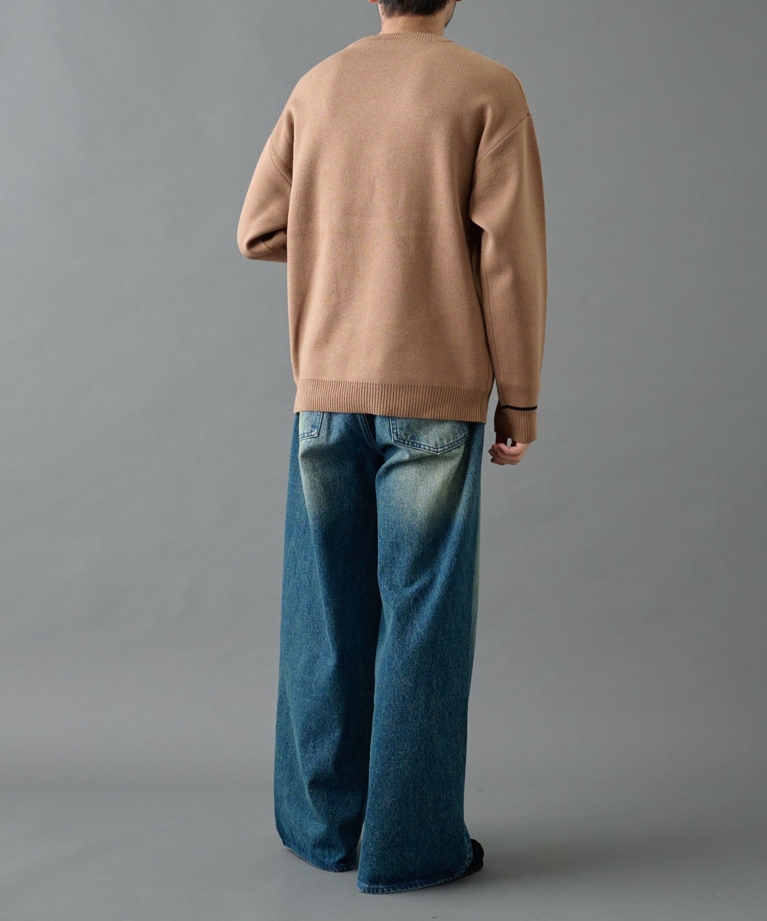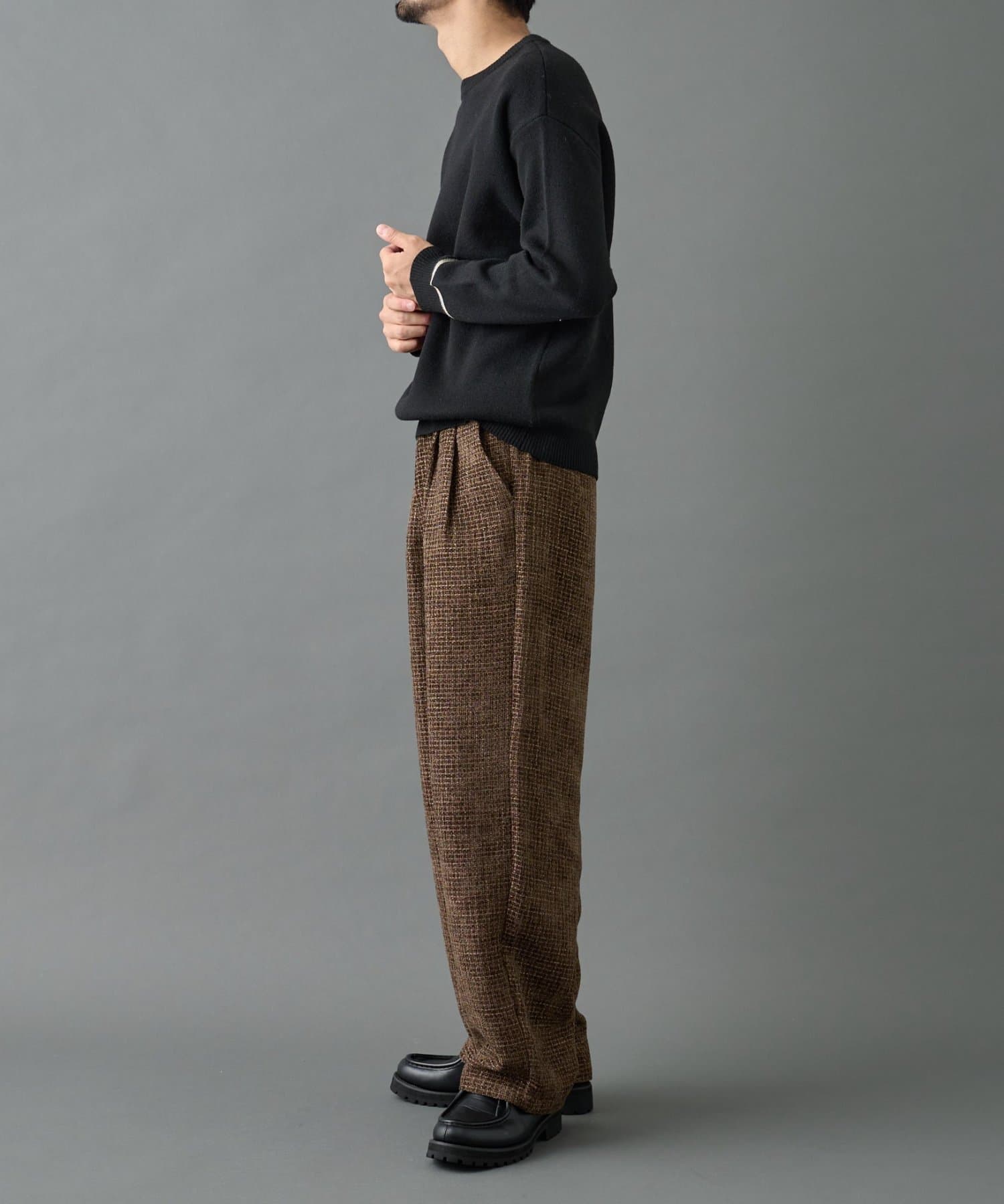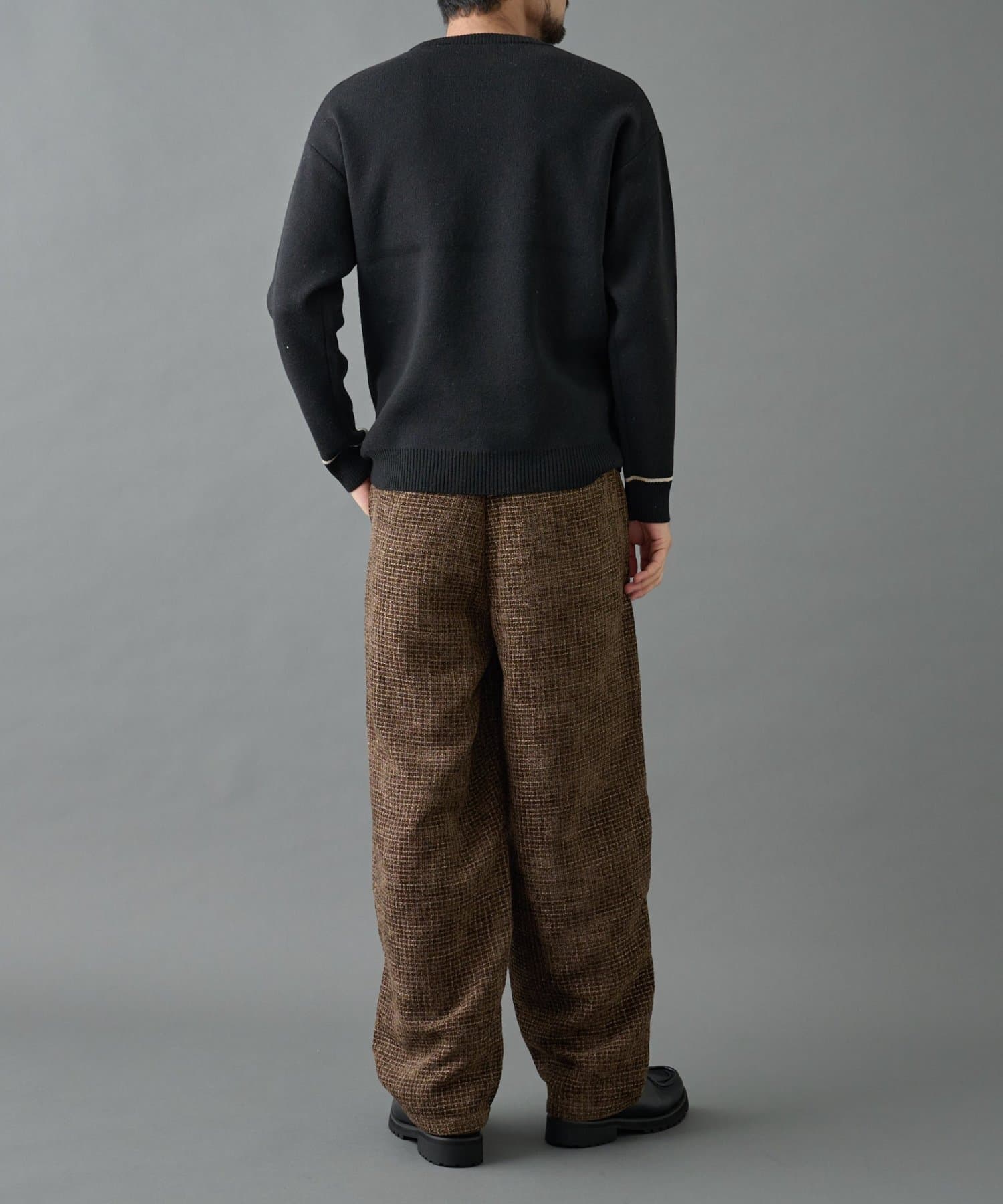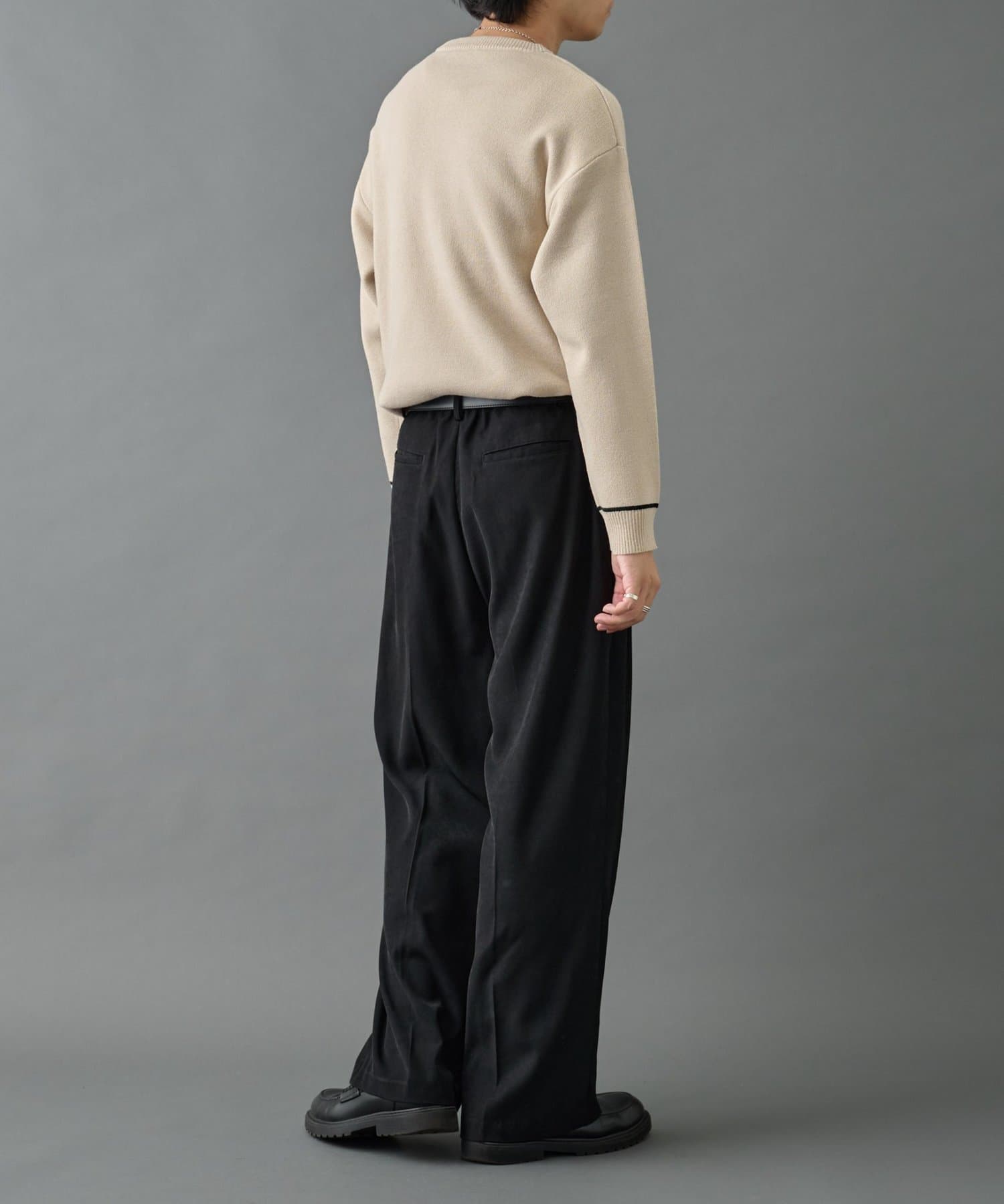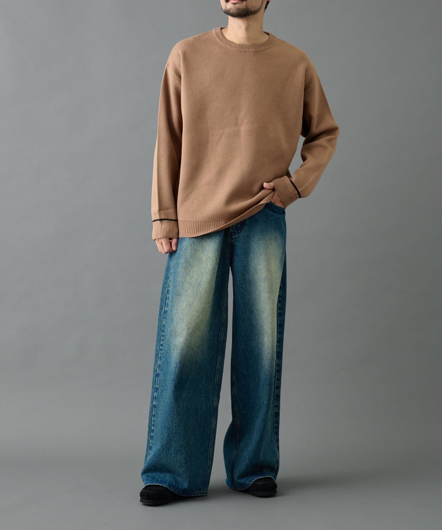 ベーシックなクルーネックニットに、洗練された配色ラインを加えたニットです。