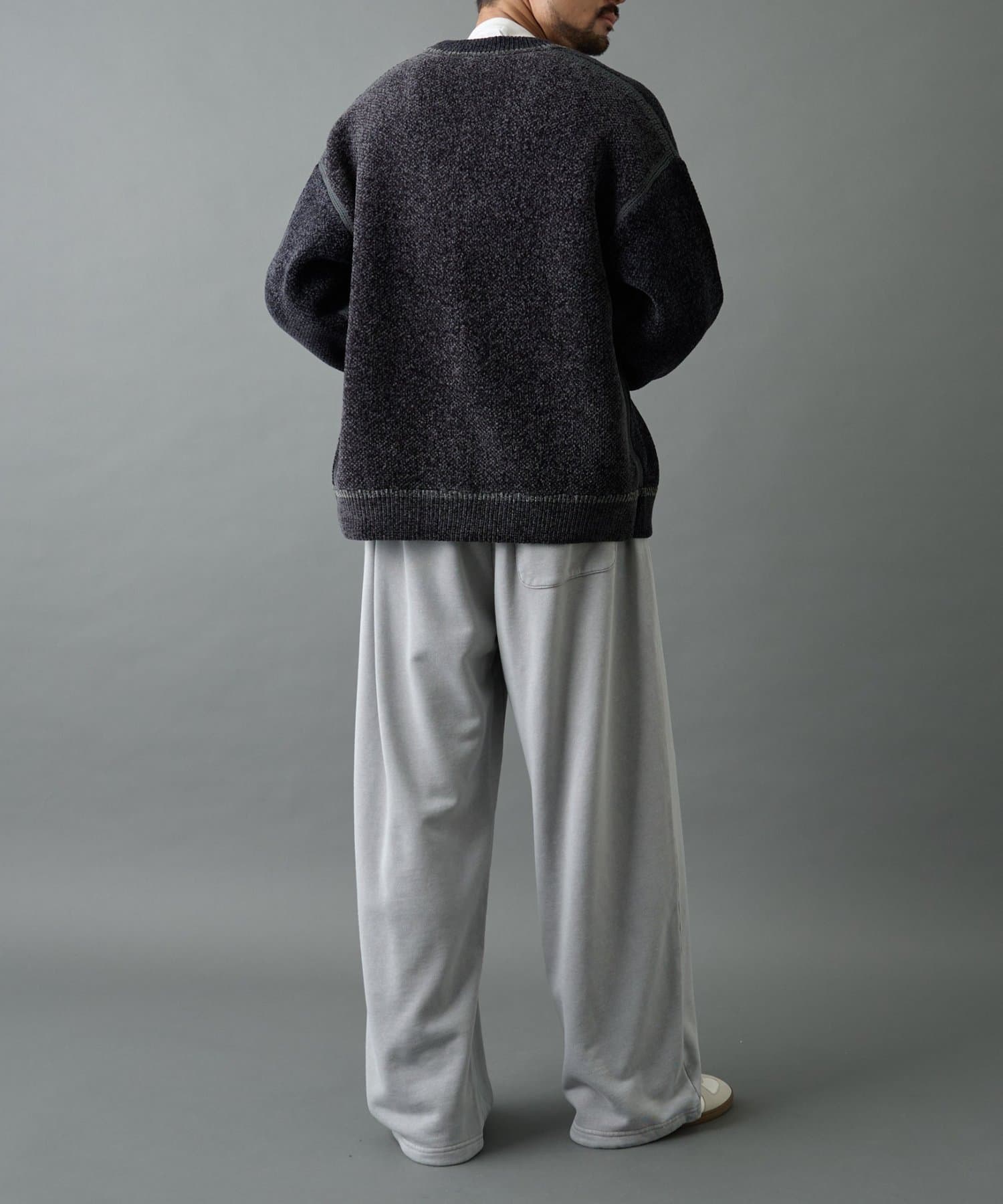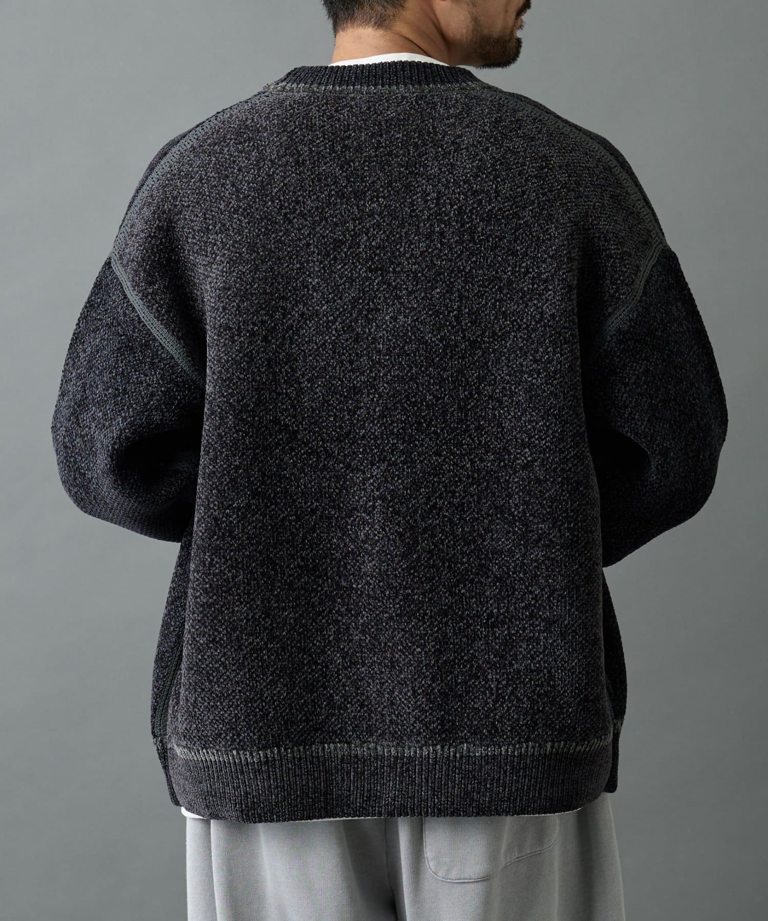 WJQ(ダブルジャガード)編みとモール糸ならではの滑らかな肌触りが合わさることで、着心地の良さと高級感を両立。
