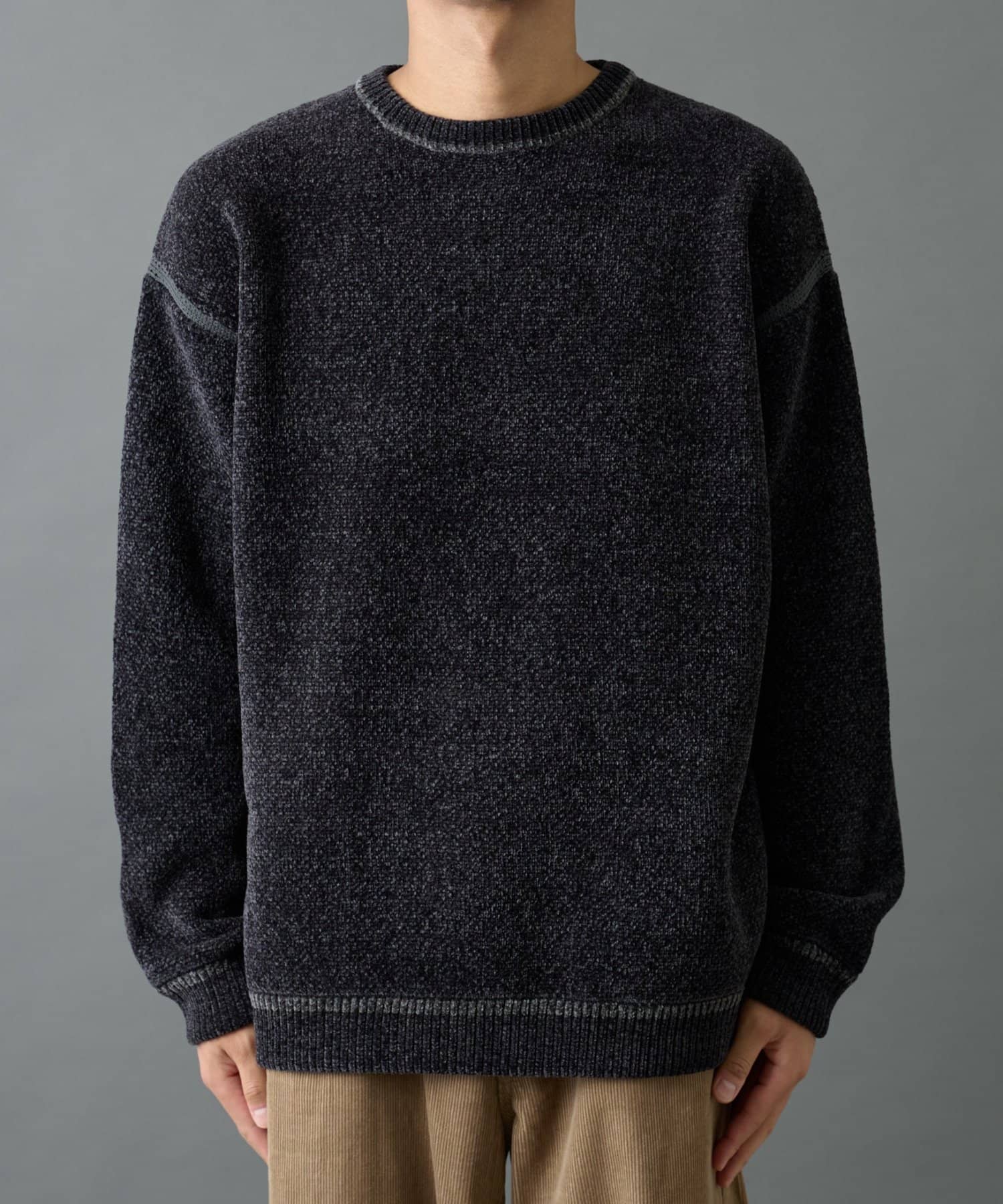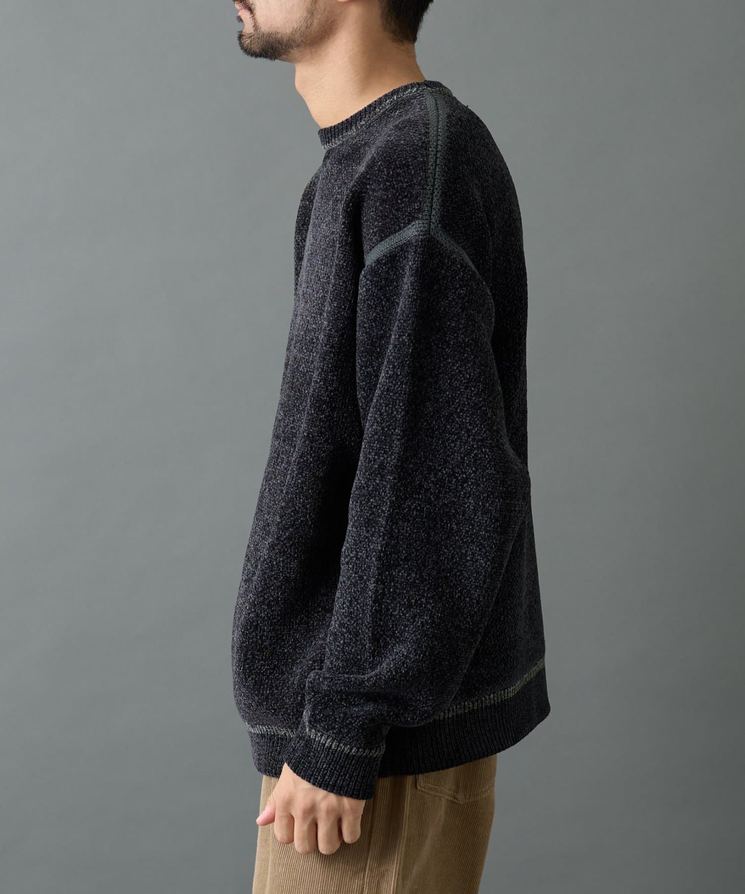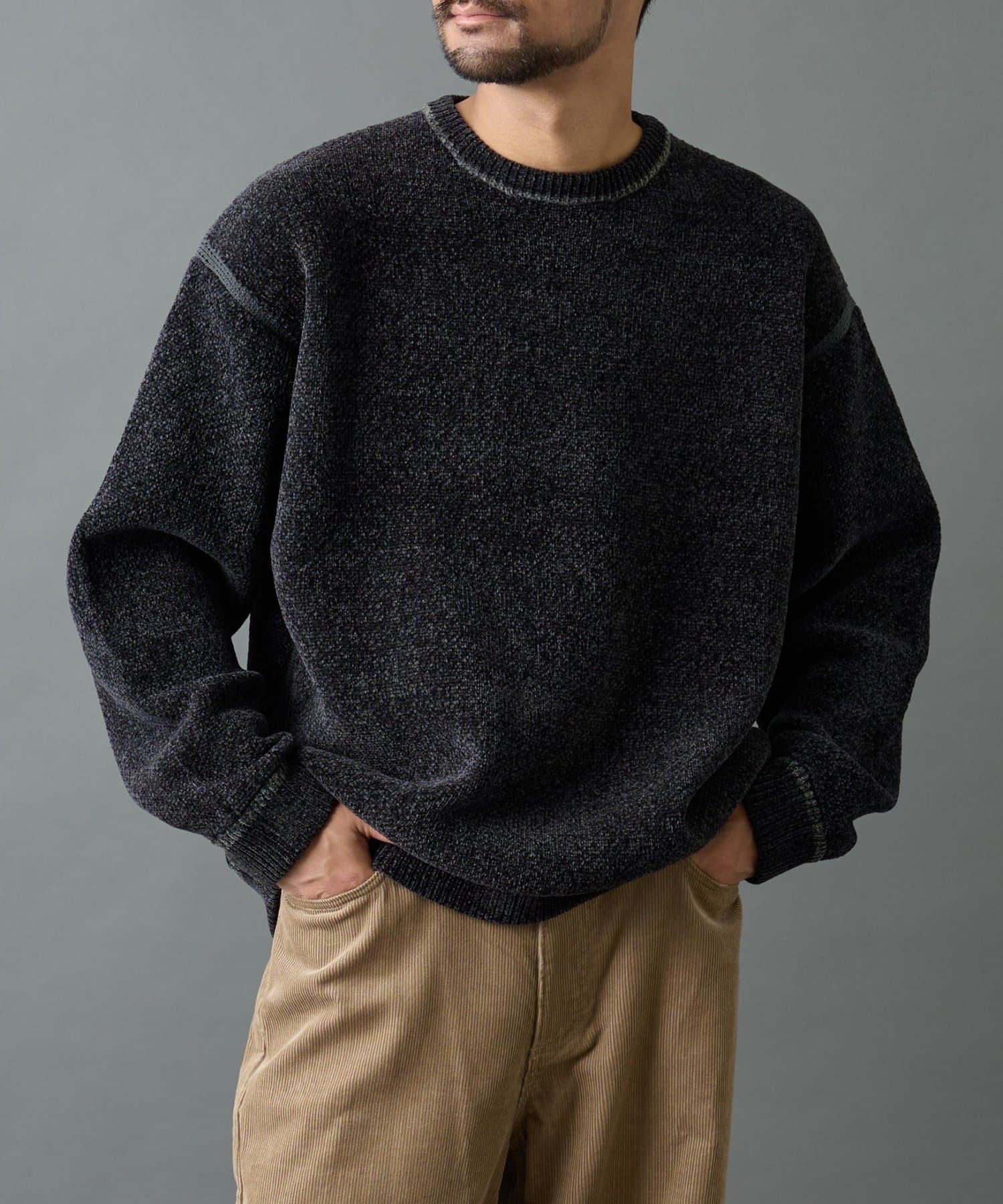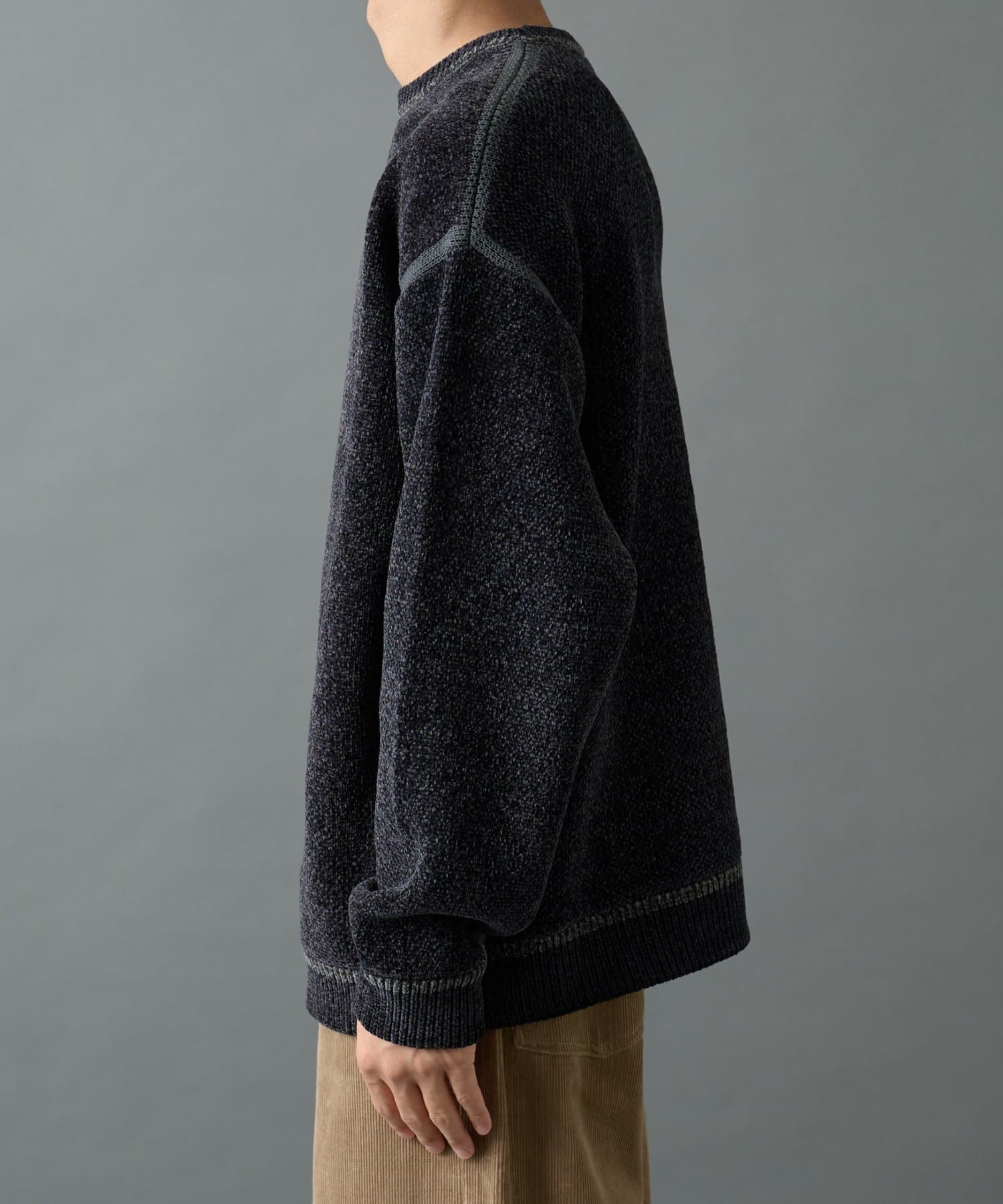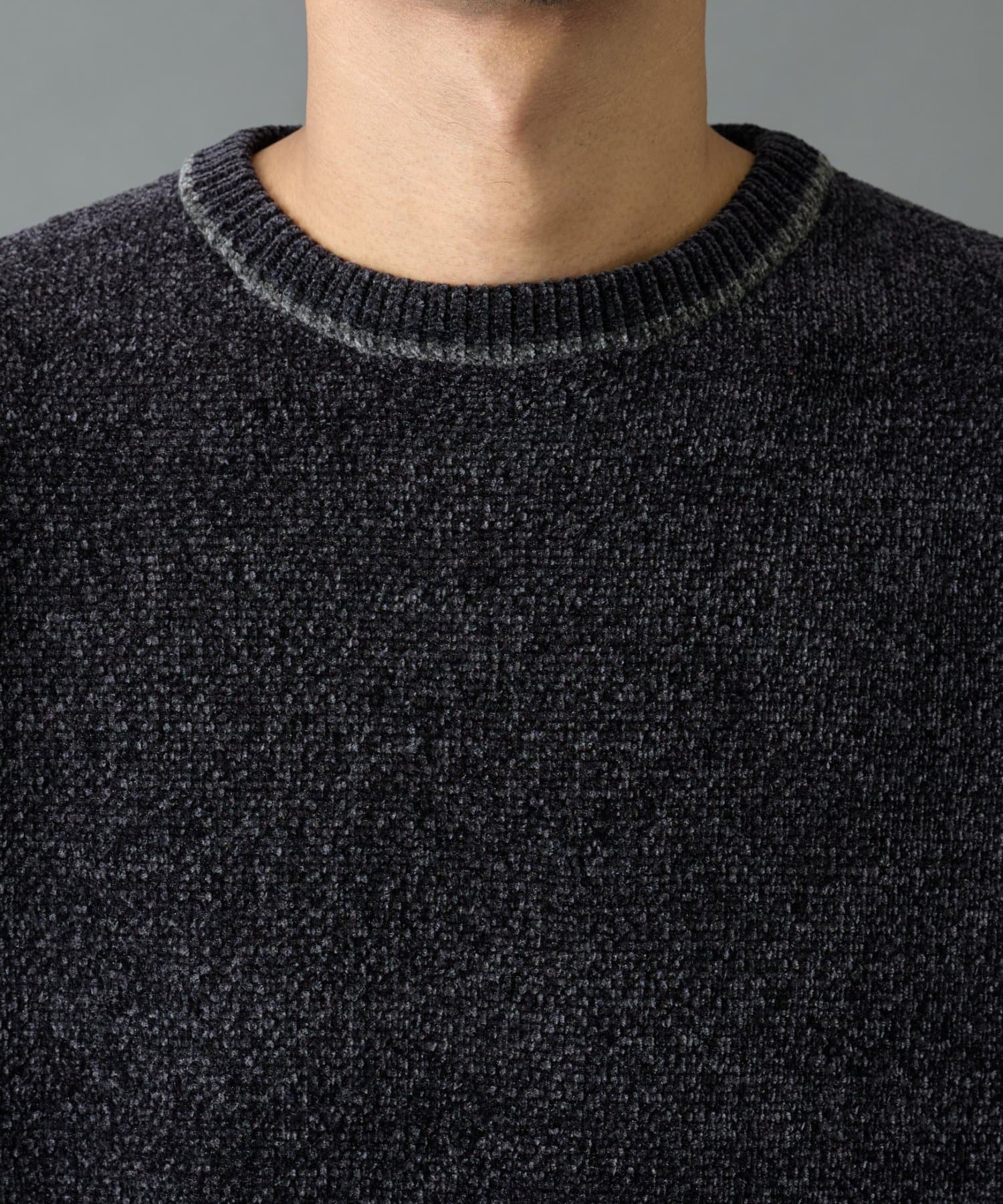 立体感ある表情とモール糸特有の上品な光沢が際立つWJQモールラインクルーネックプルオーバーです。