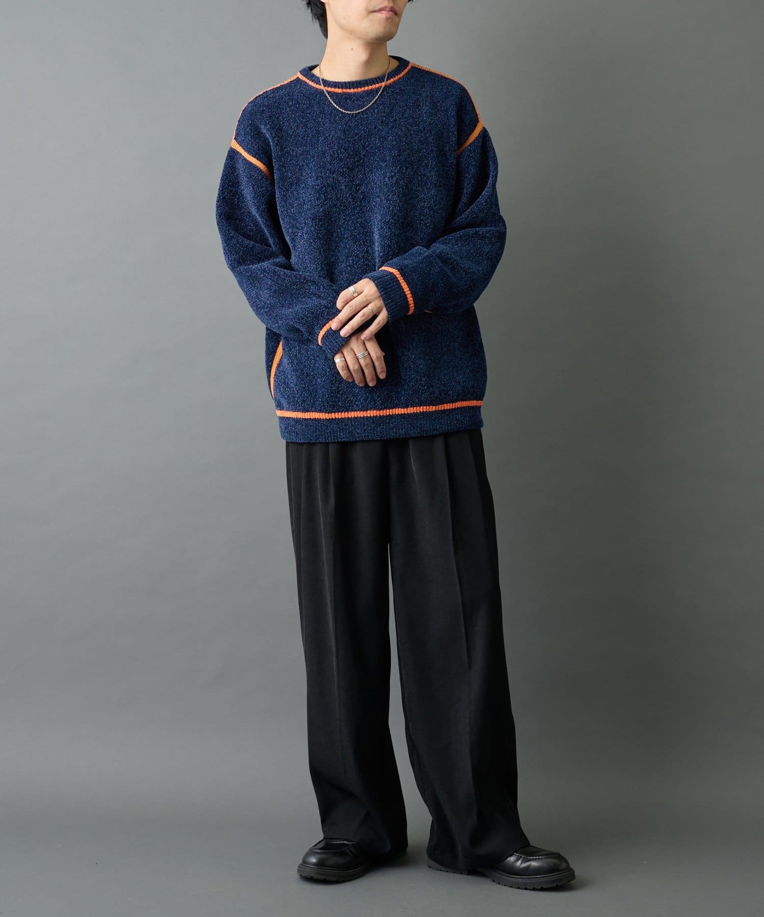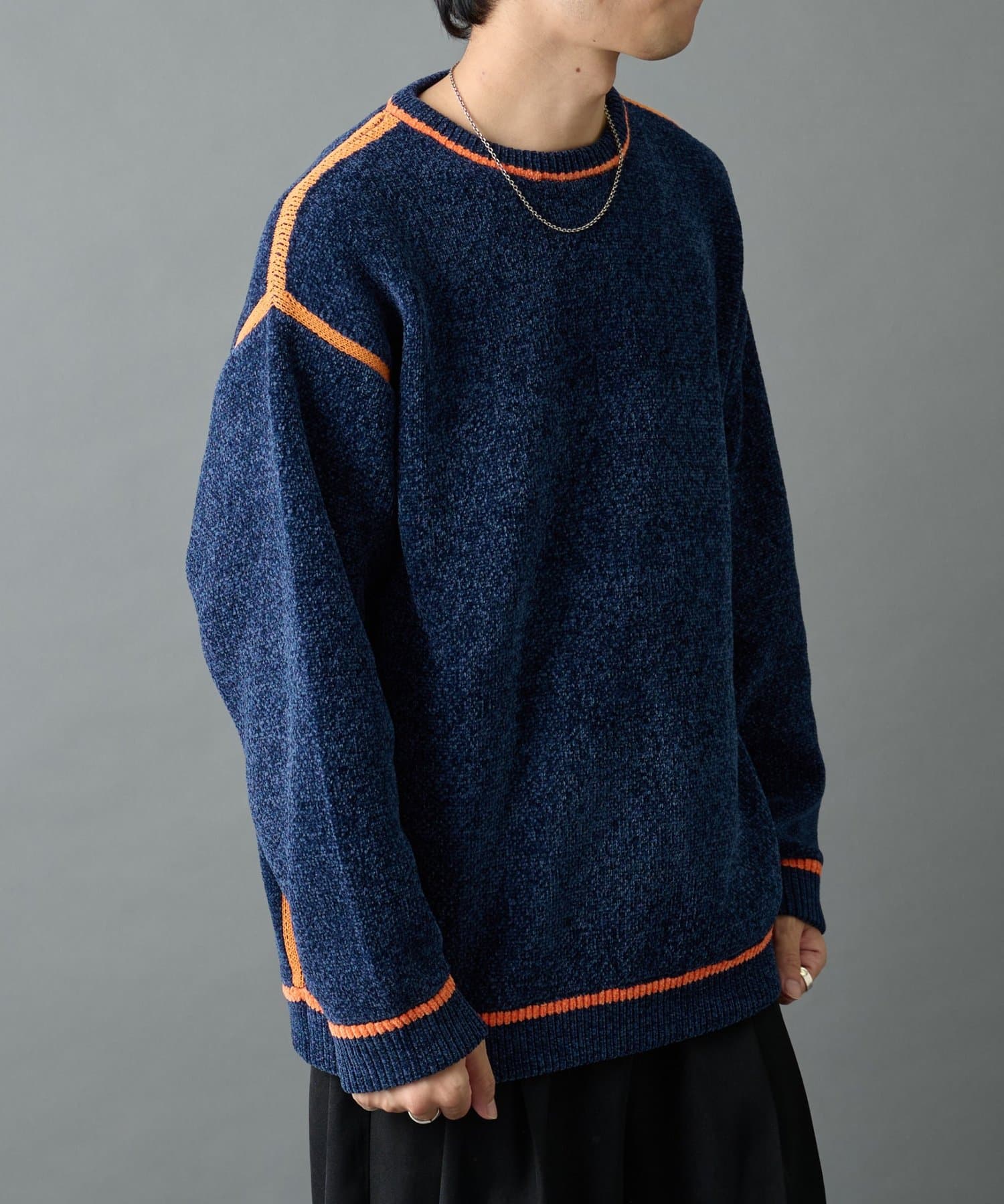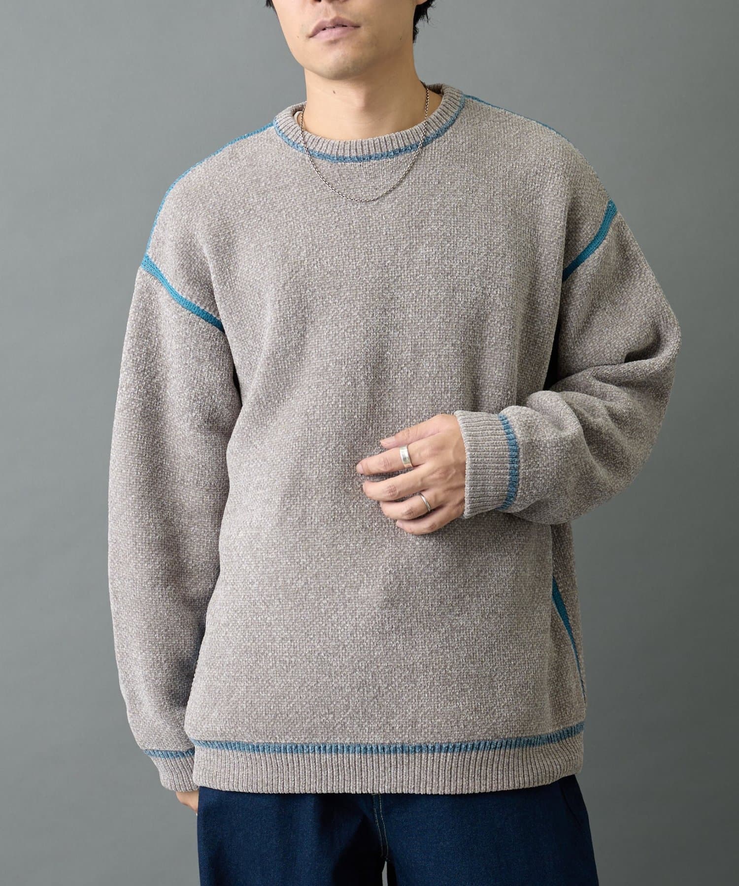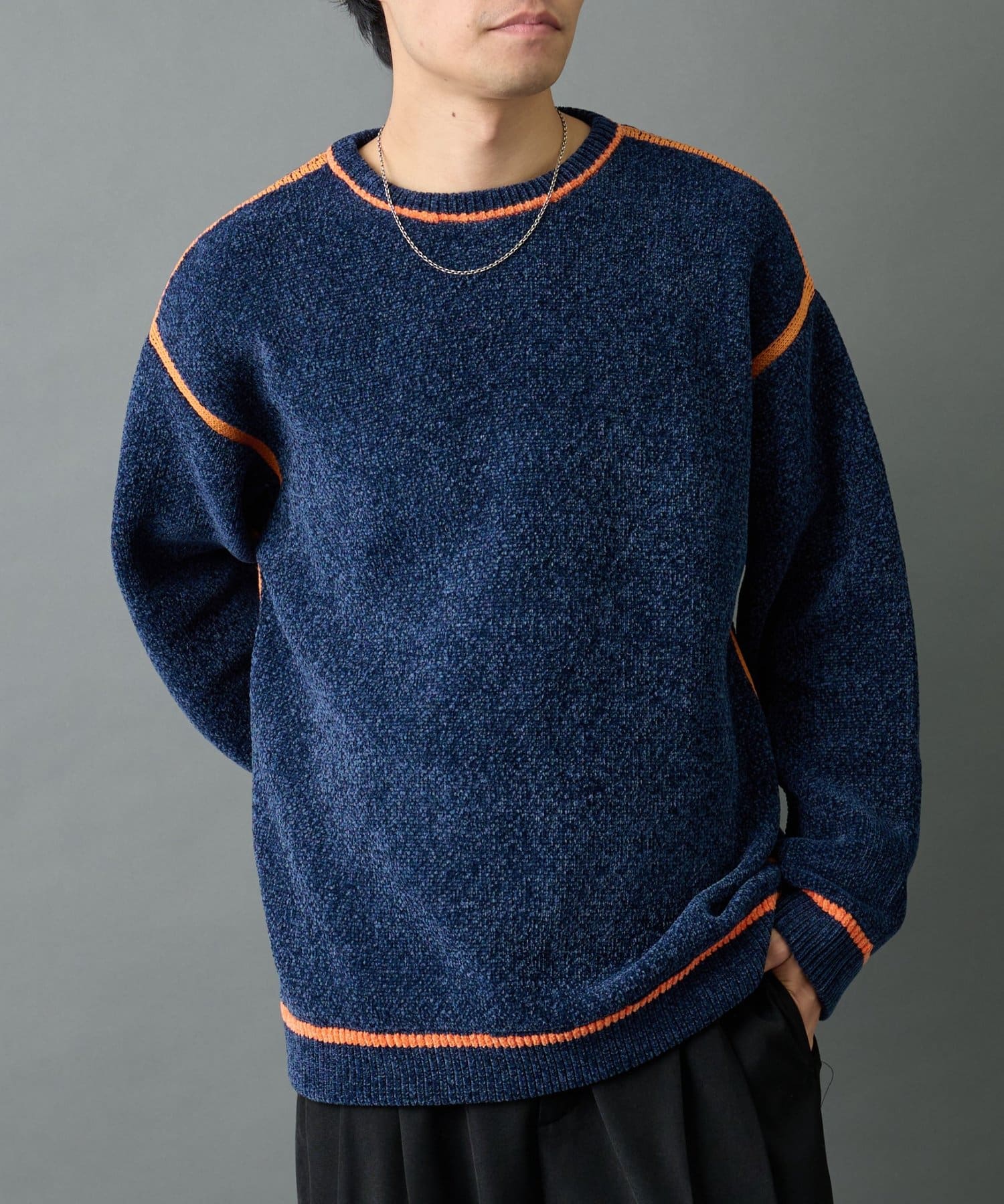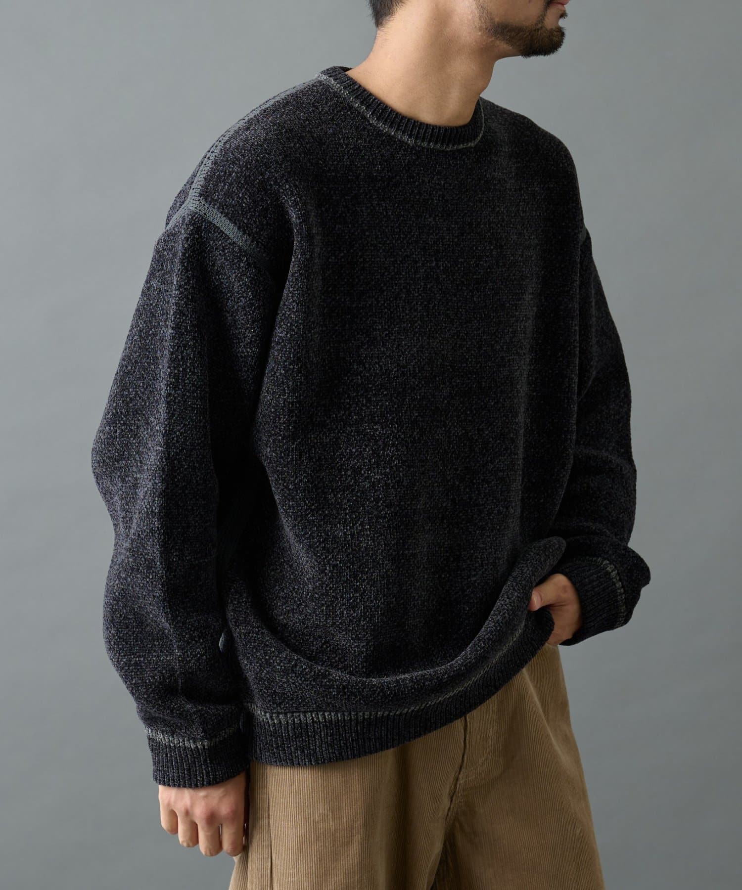 立体感ある表情とモール糸特有の上品な光沢が際立つWJQモールラインクルーネックプルオーバーです。