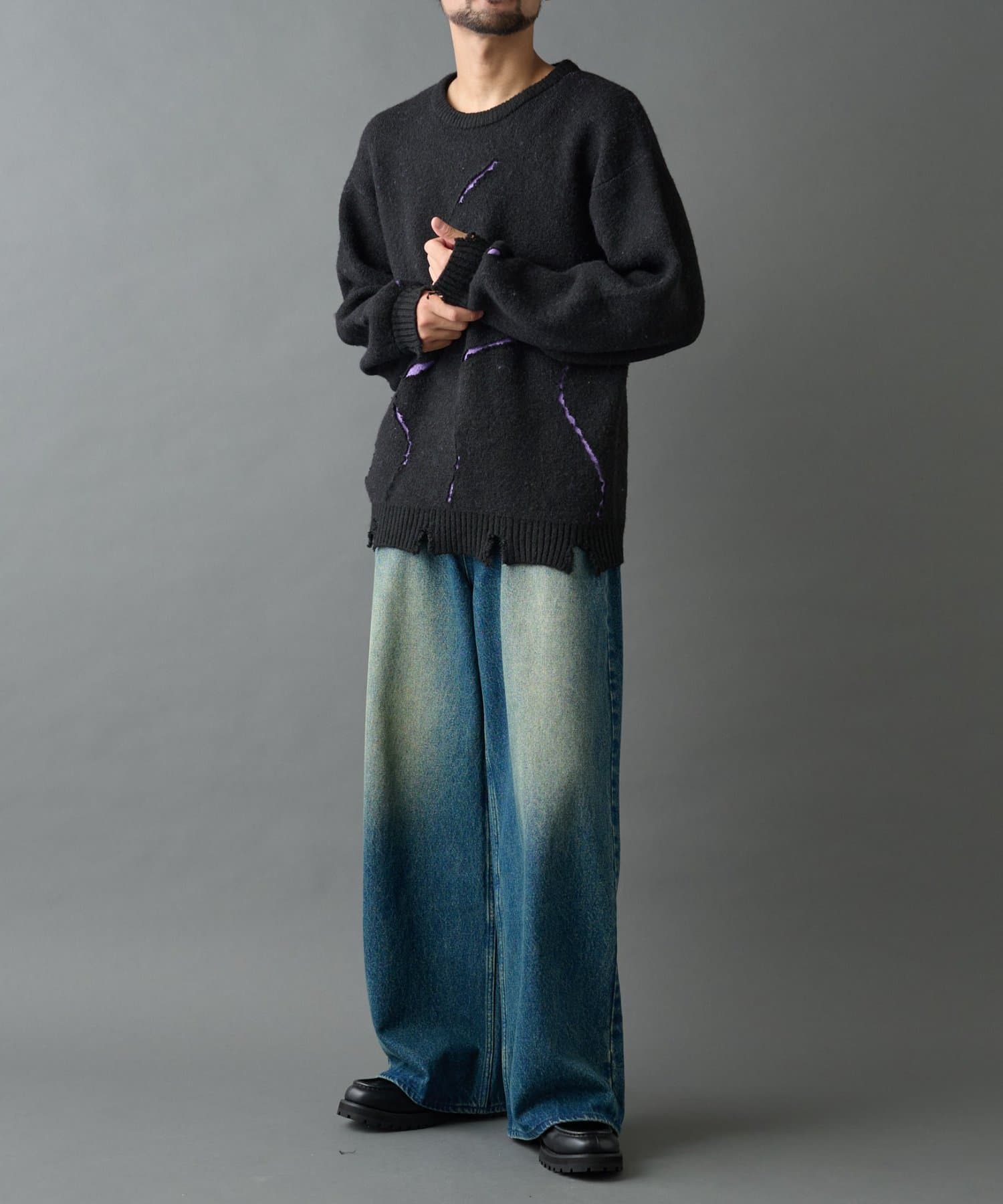 ダメージ加工のようなデザインのクレイジーパターンが特徴になっています。