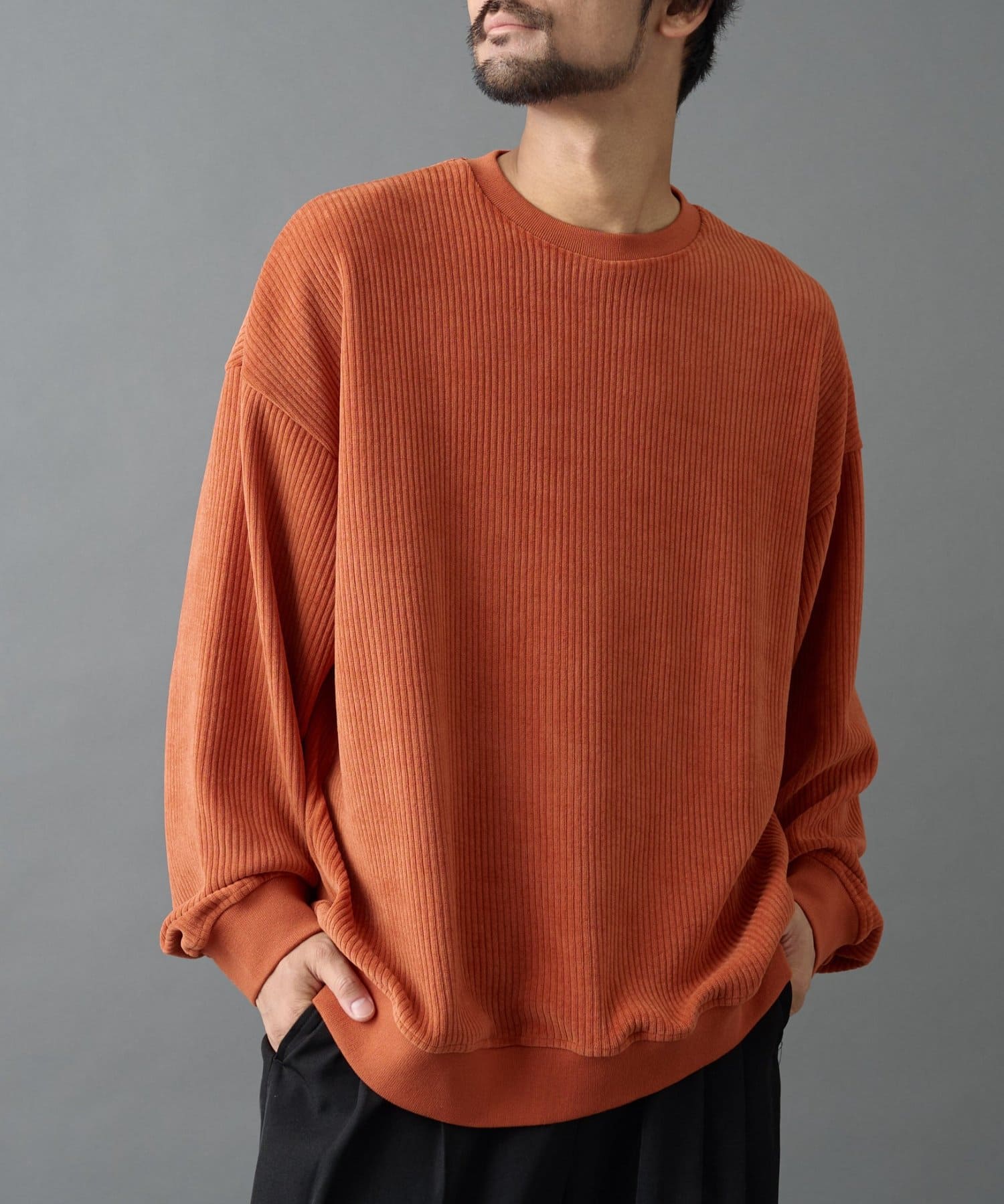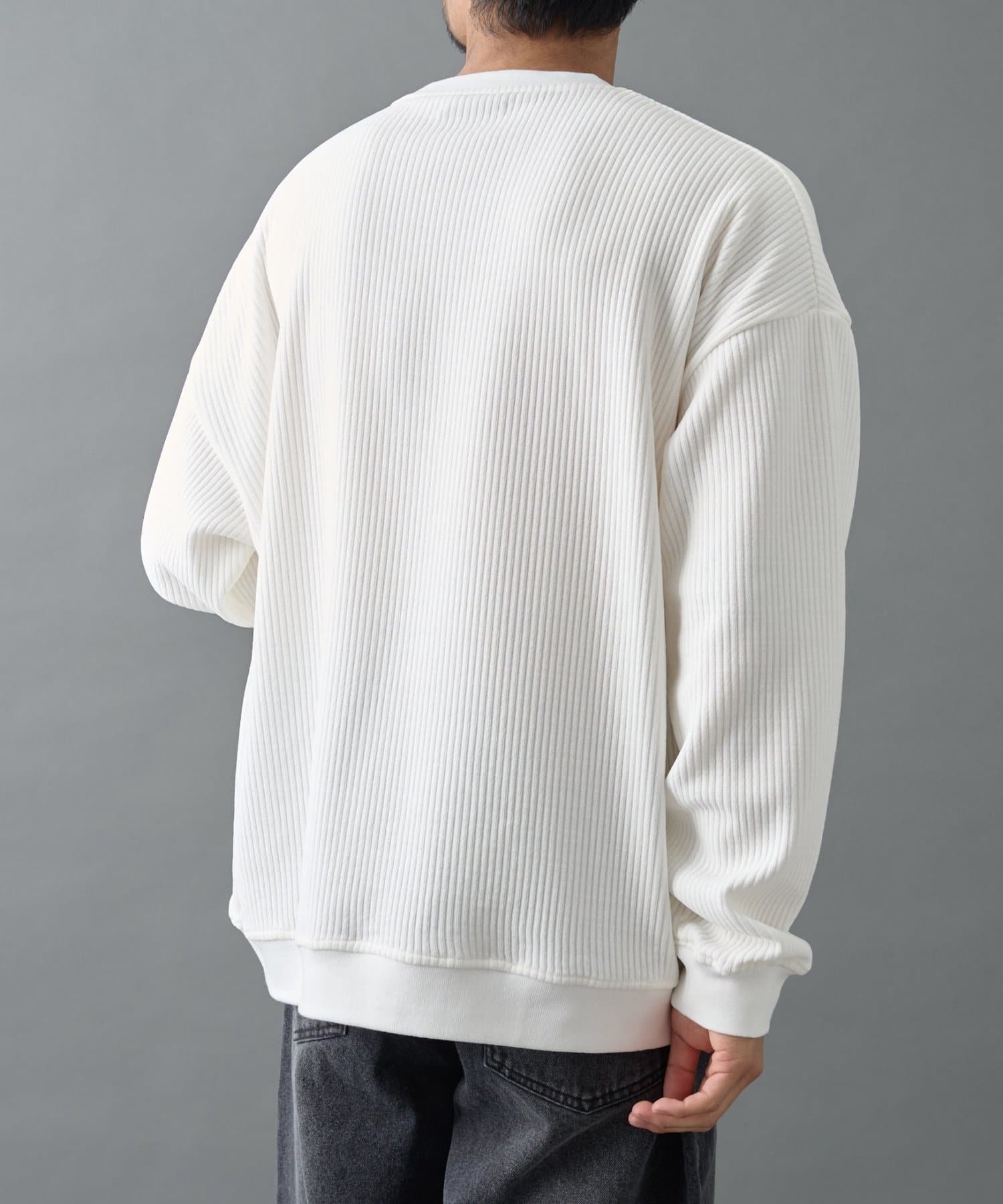 縦に並んだ畝が特徴的なコーデュロイ素材を使用したクルーネックです。