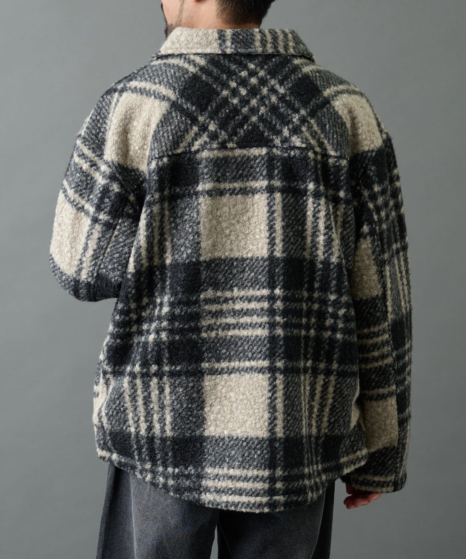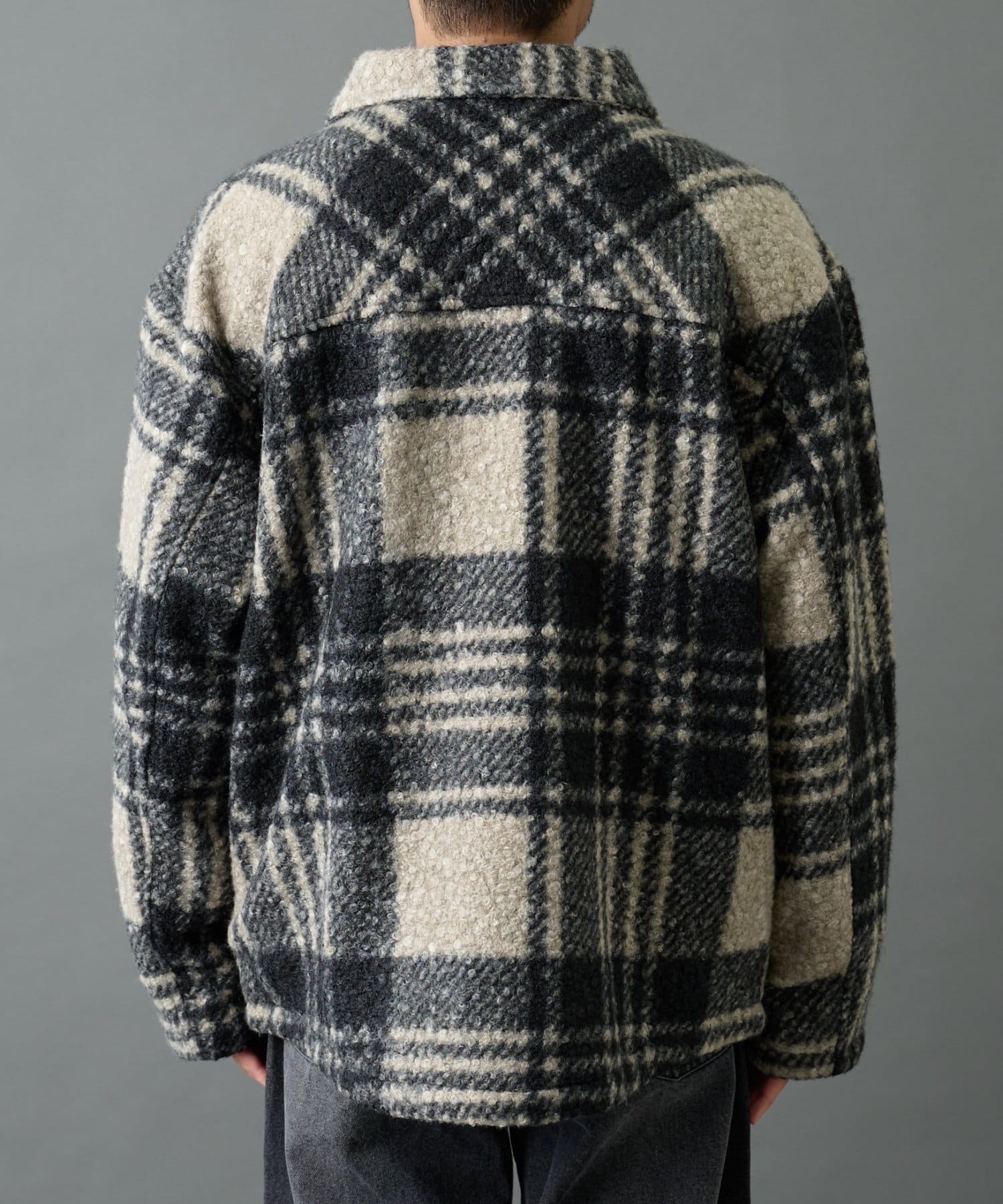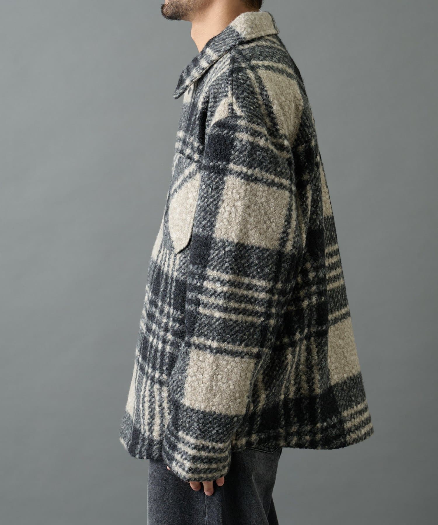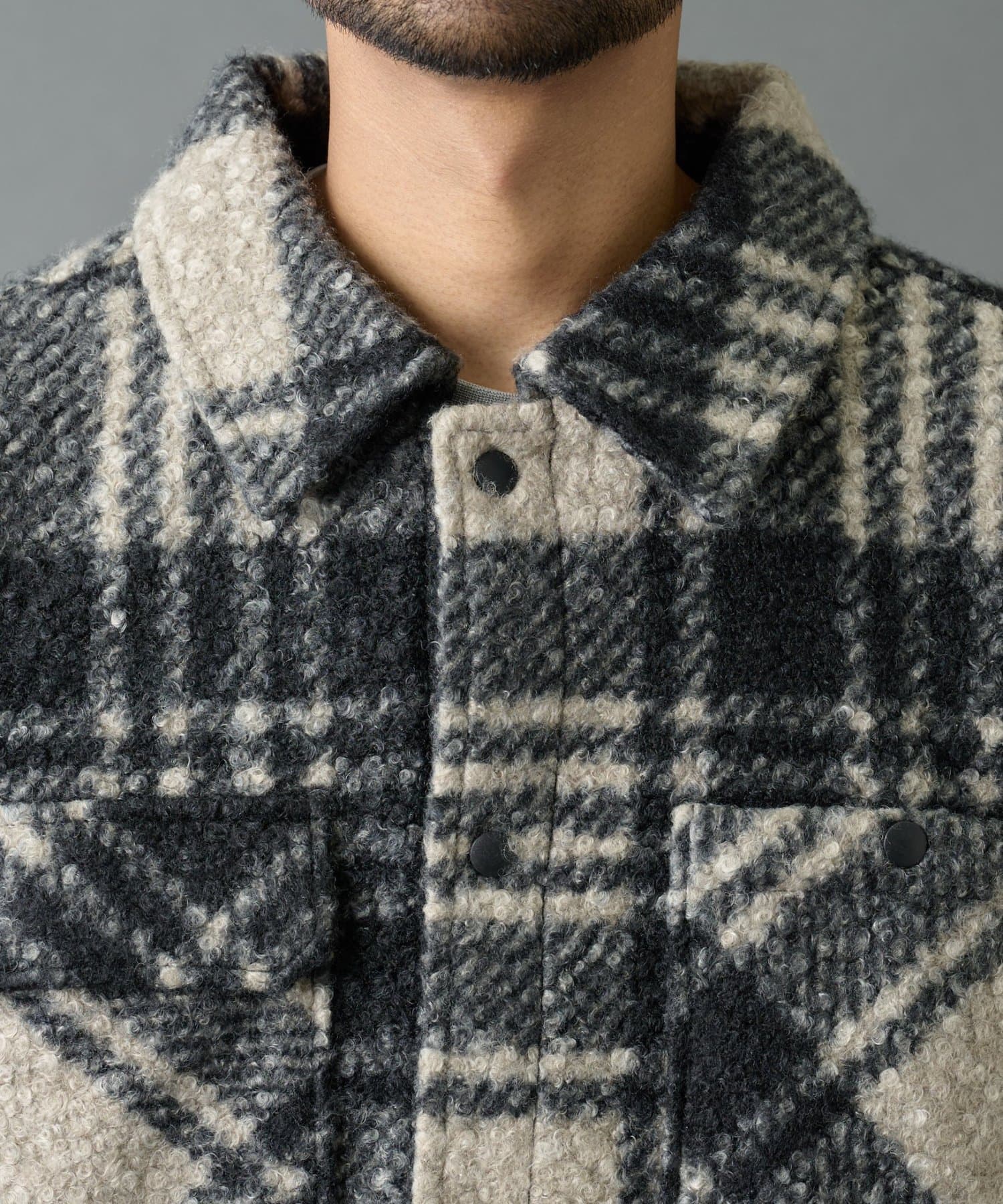 チェック圧縮ブークレーCPOジャケット