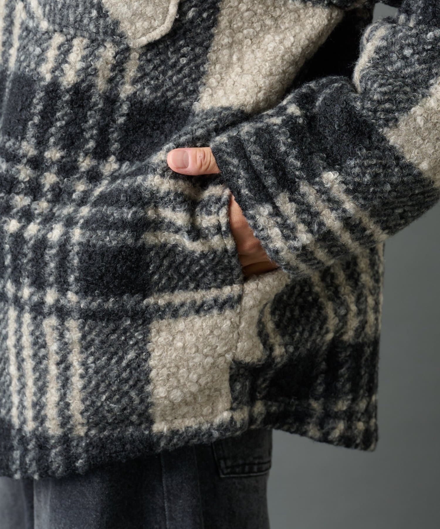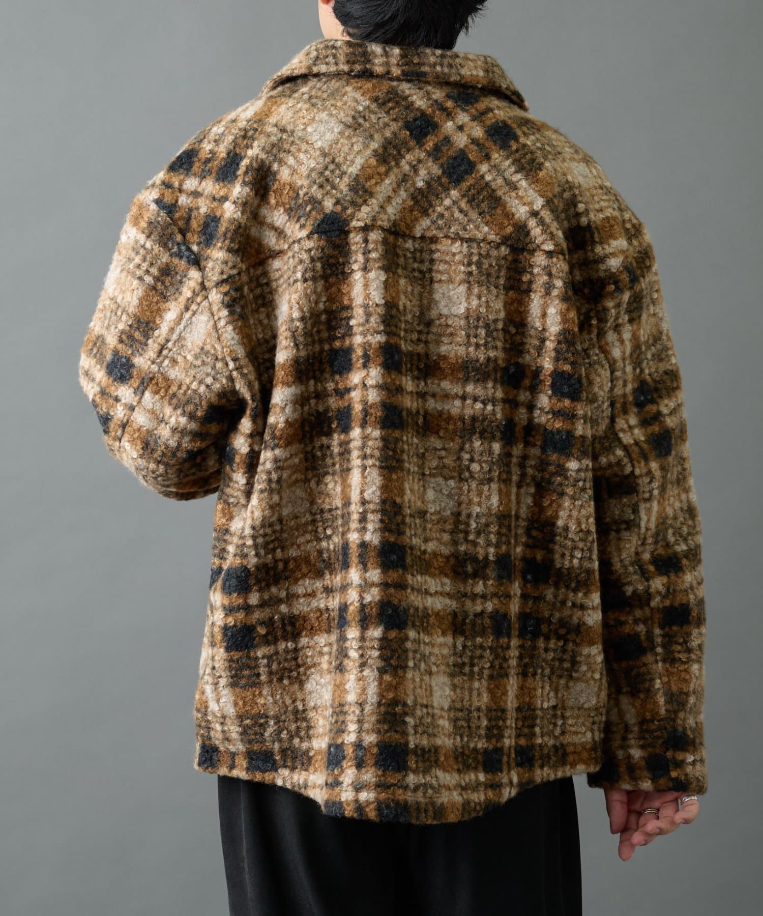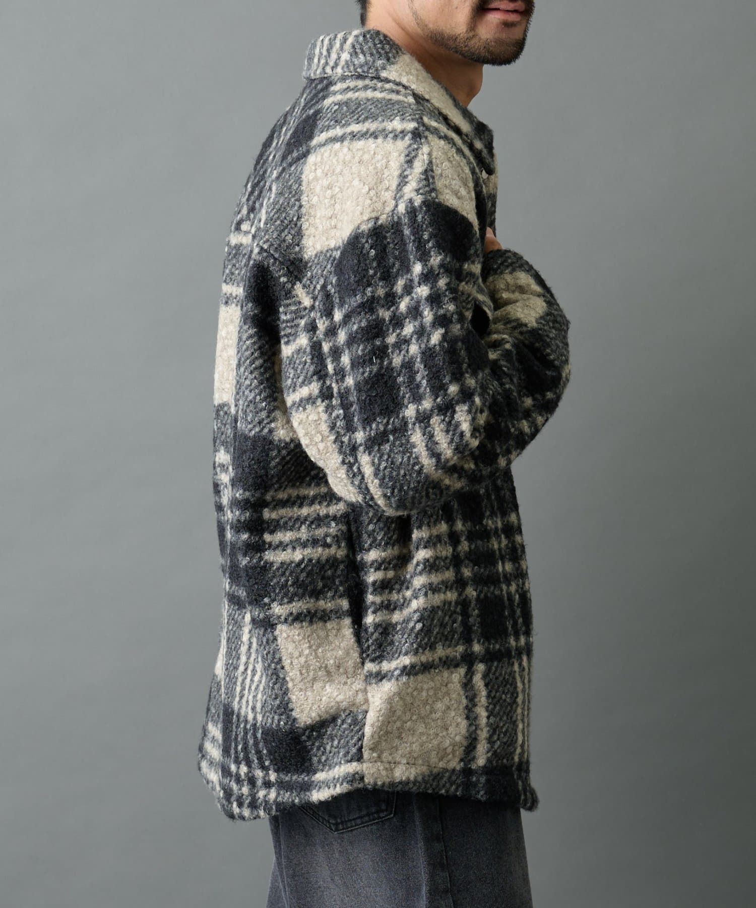 チェック圧縮ブークレーCPOジャケット