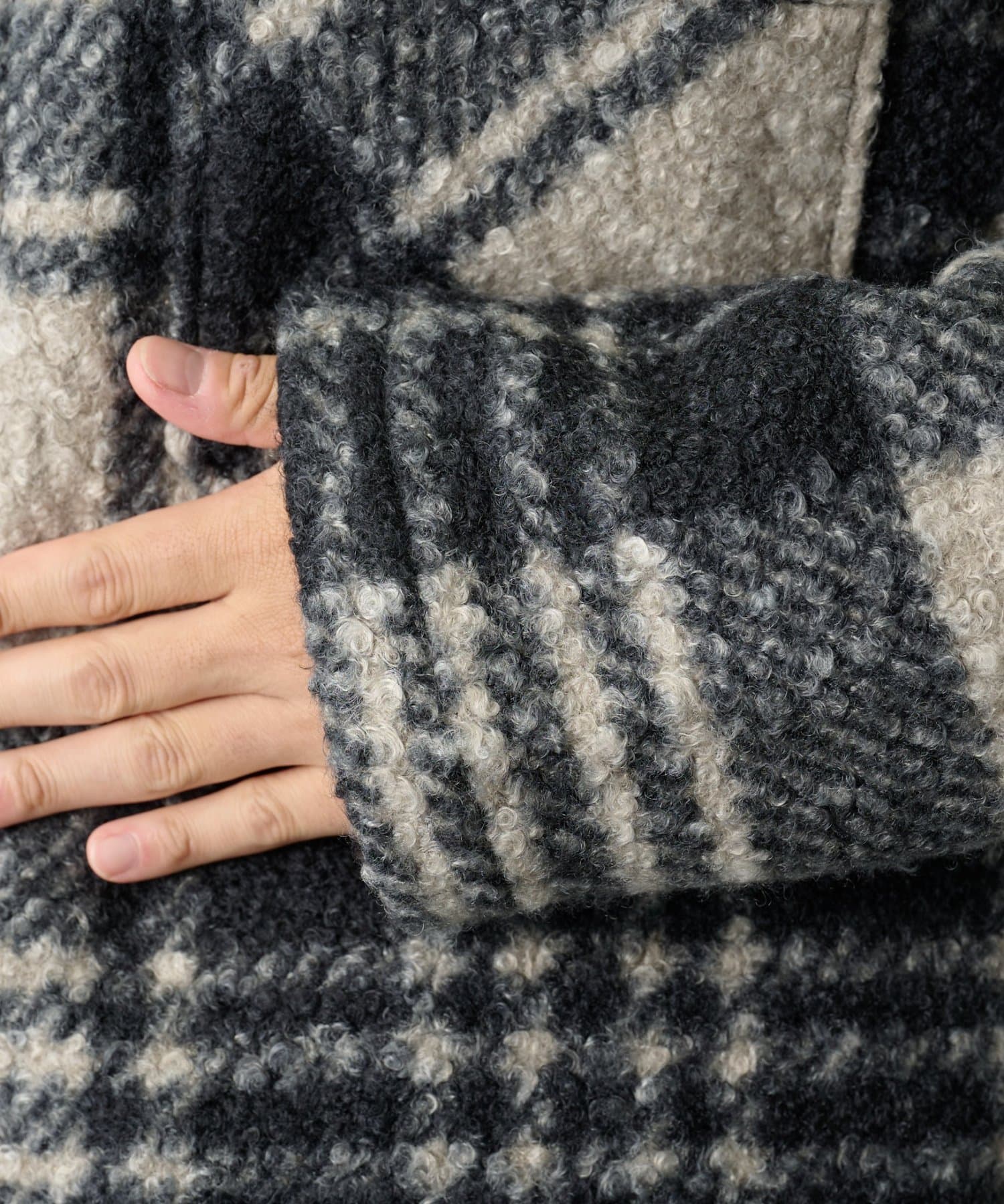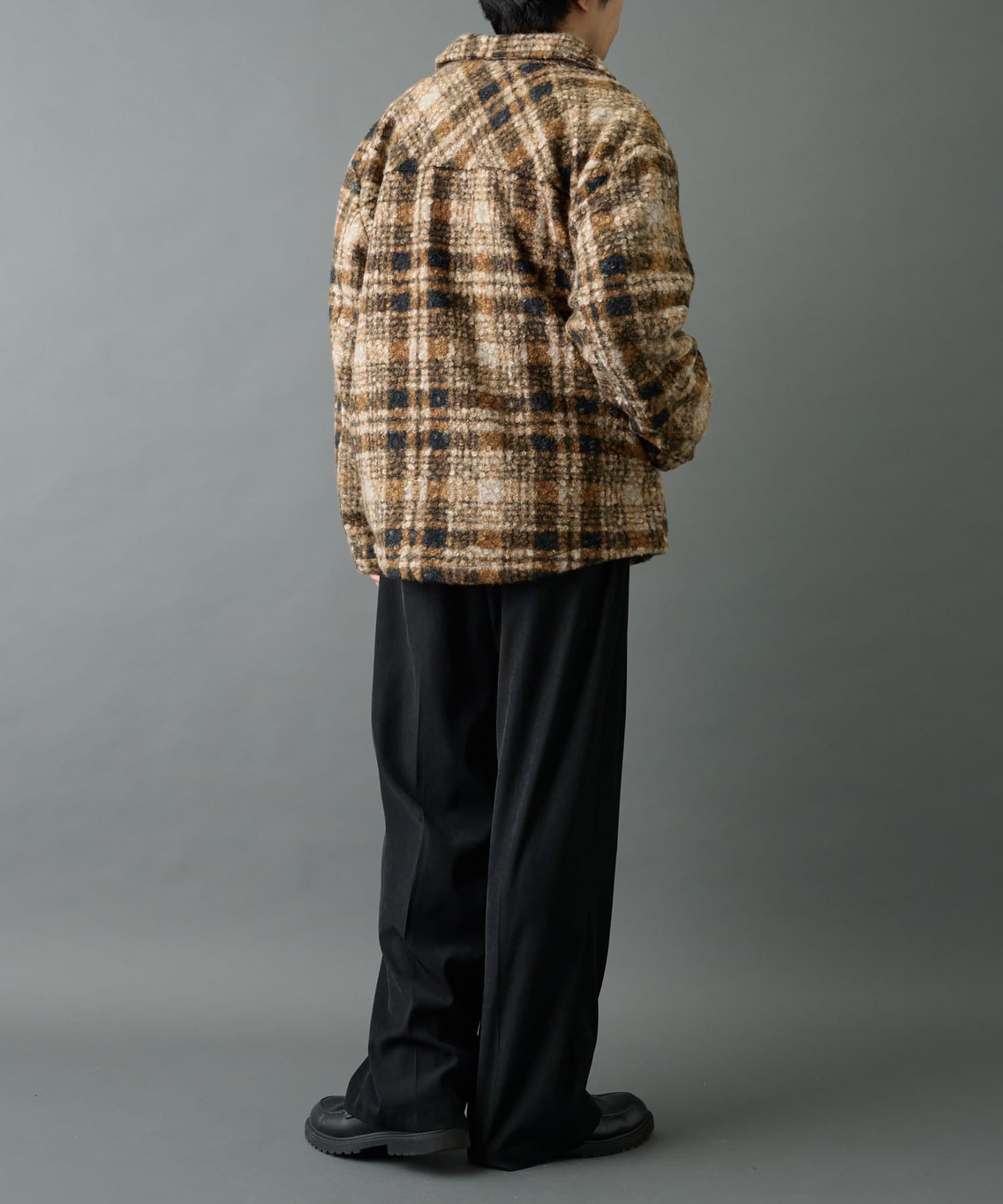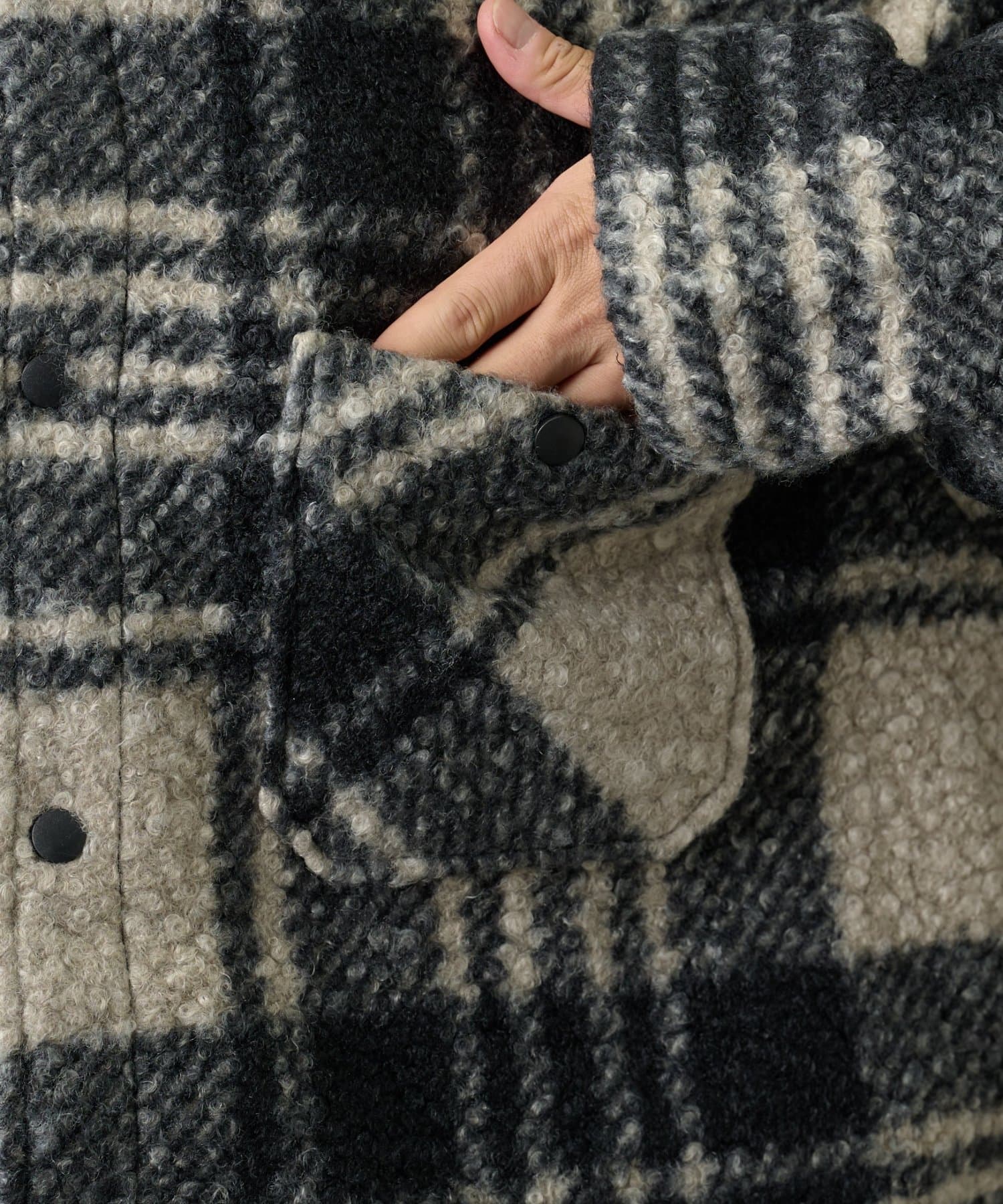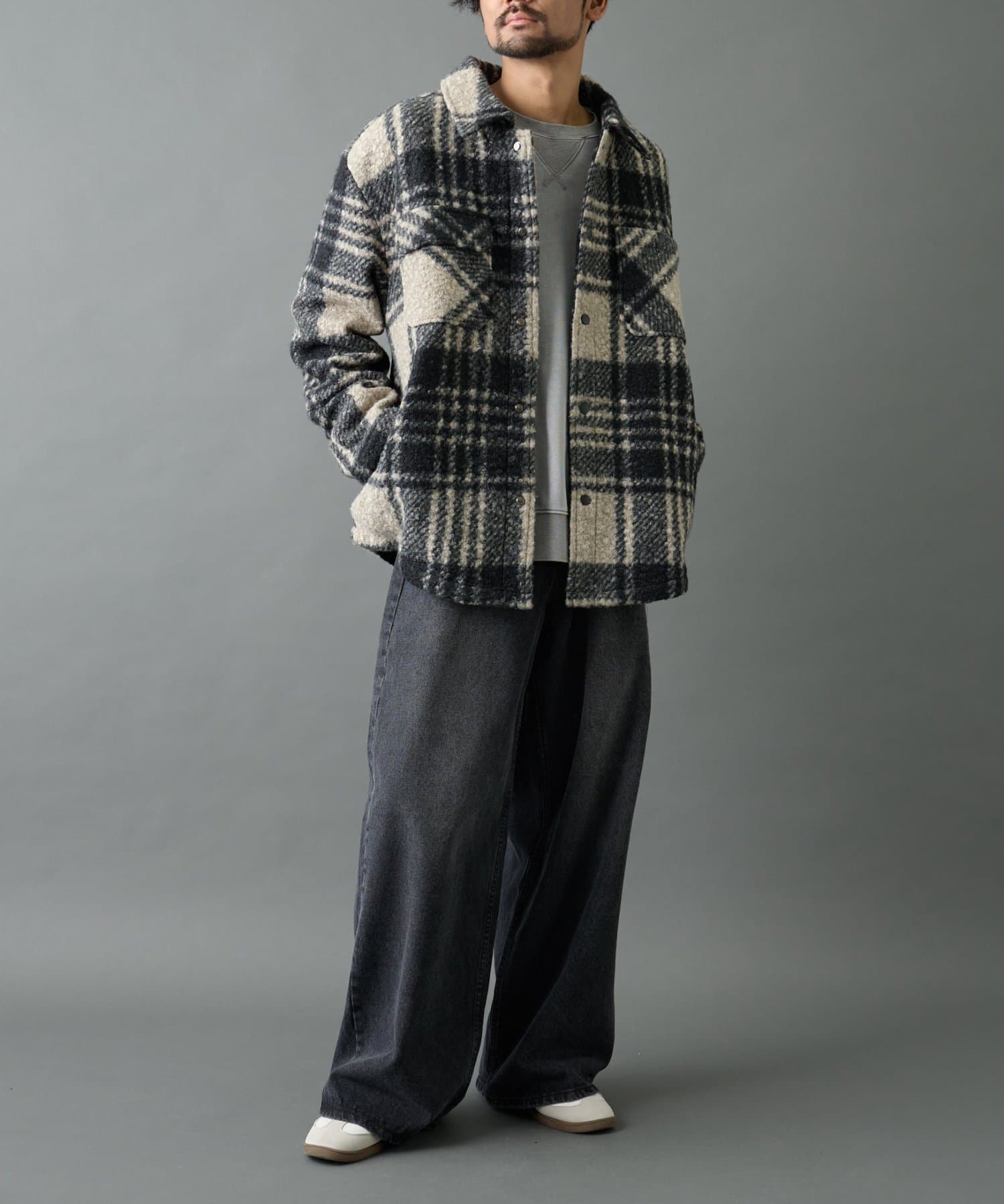チェック圧縮ブークレーCPOジャケット