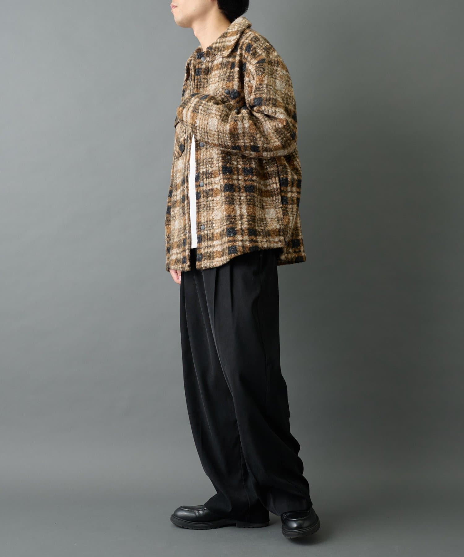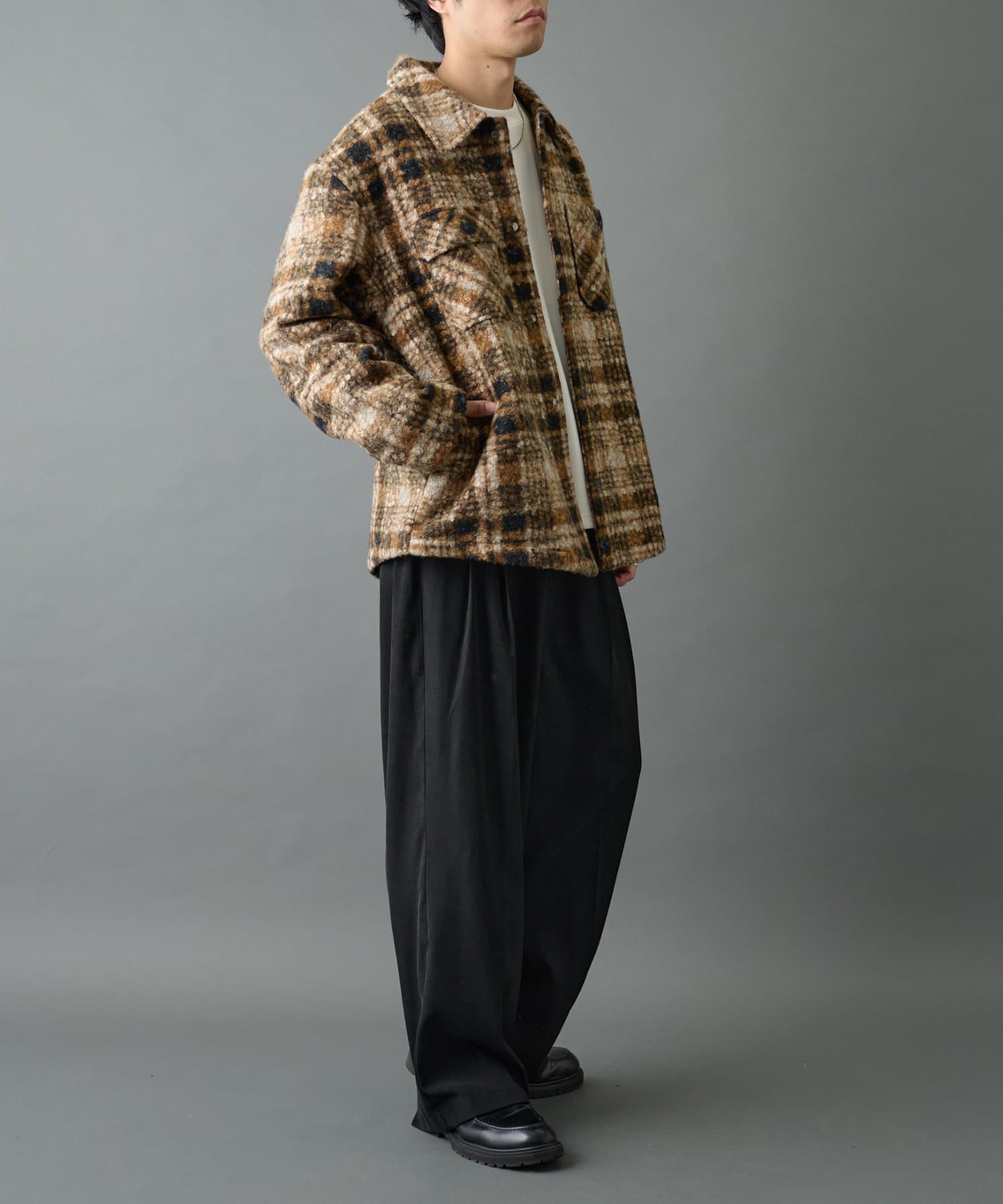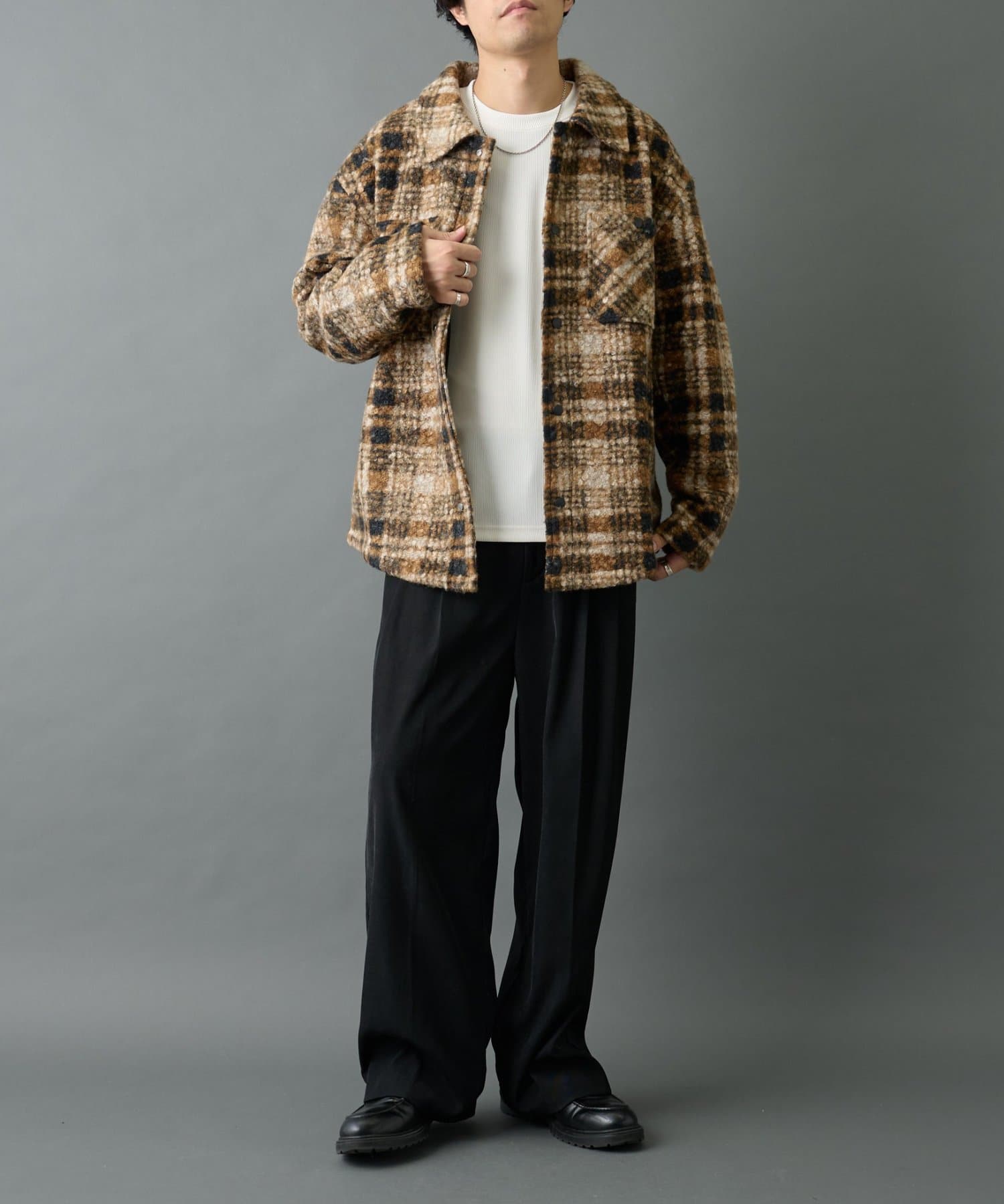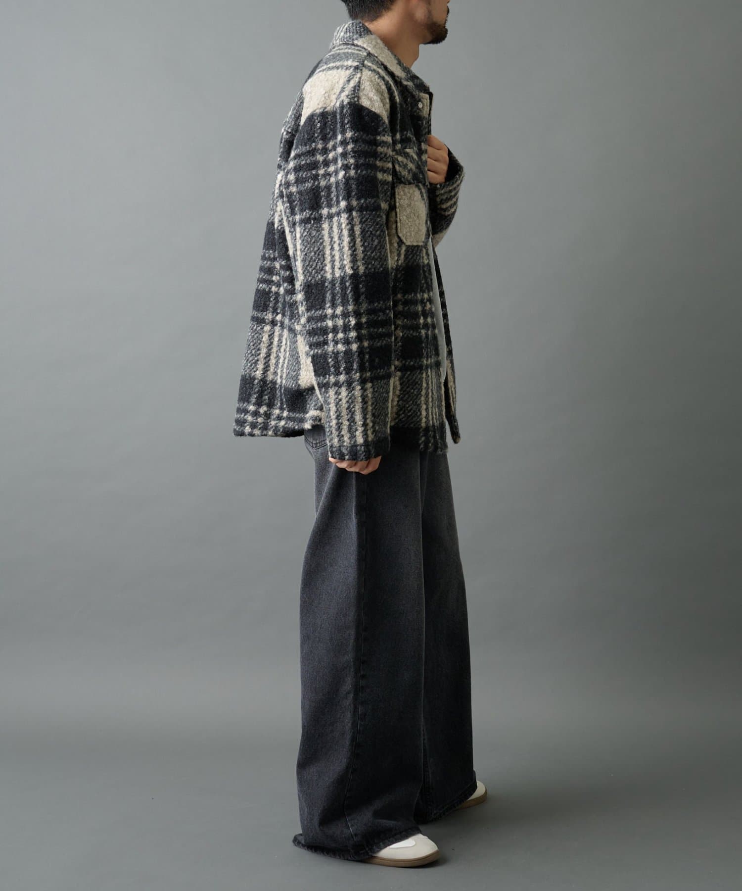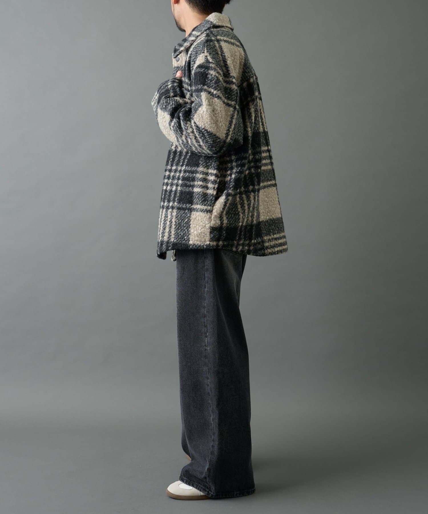 デニムでカジュアルに合わせるのも、スラックスでキレイめに合わせるのもオススメの万能チェックジャケットです。