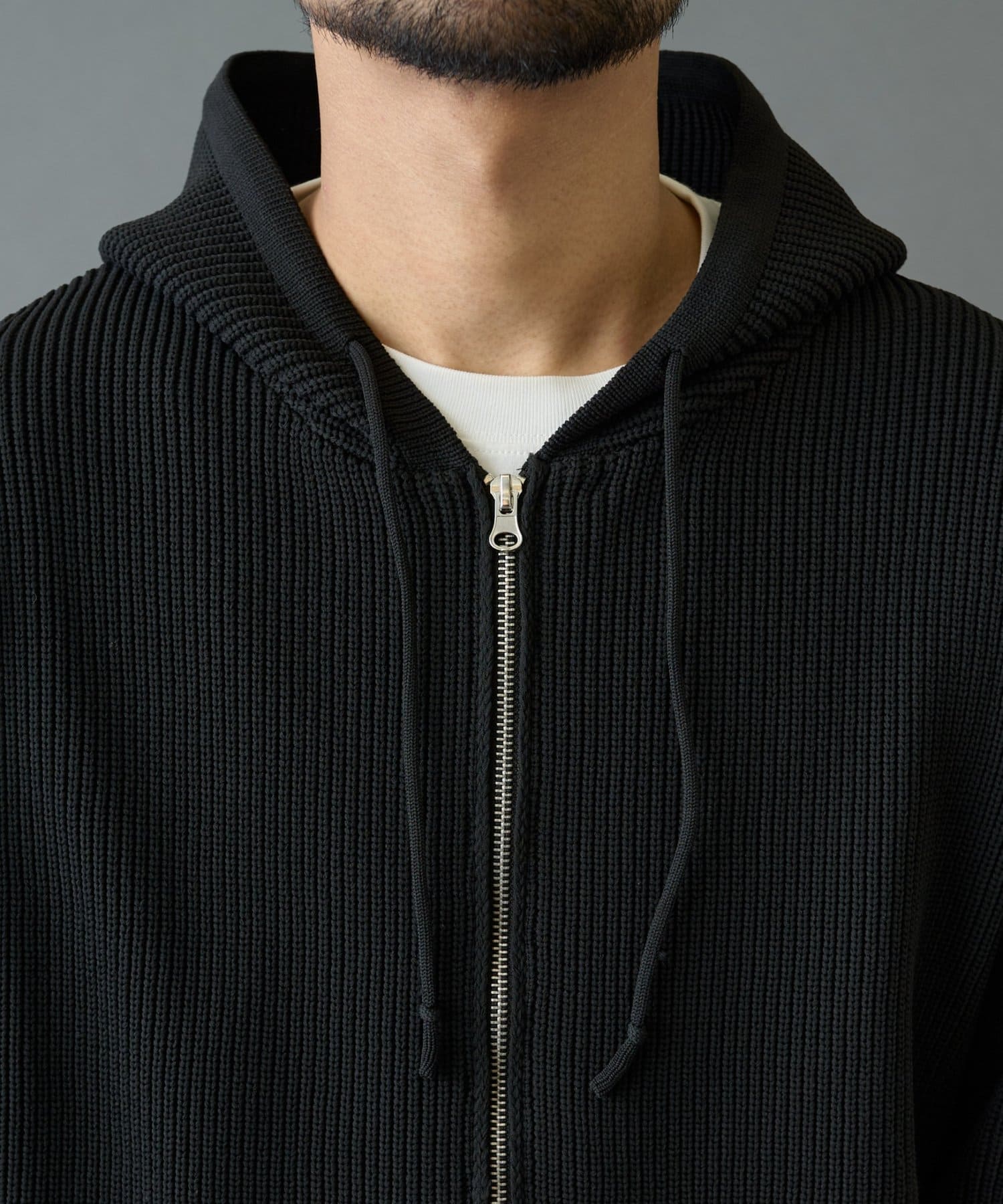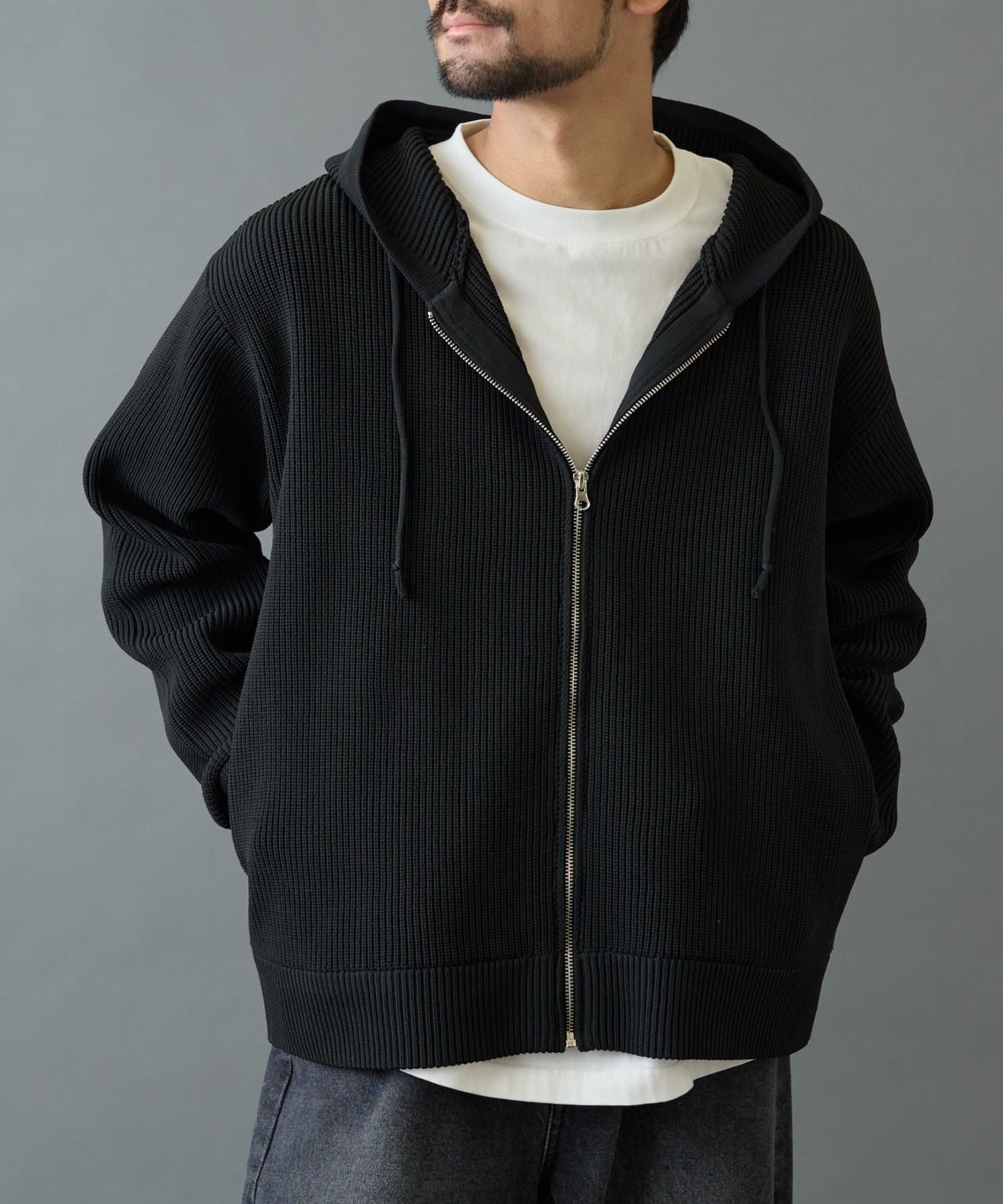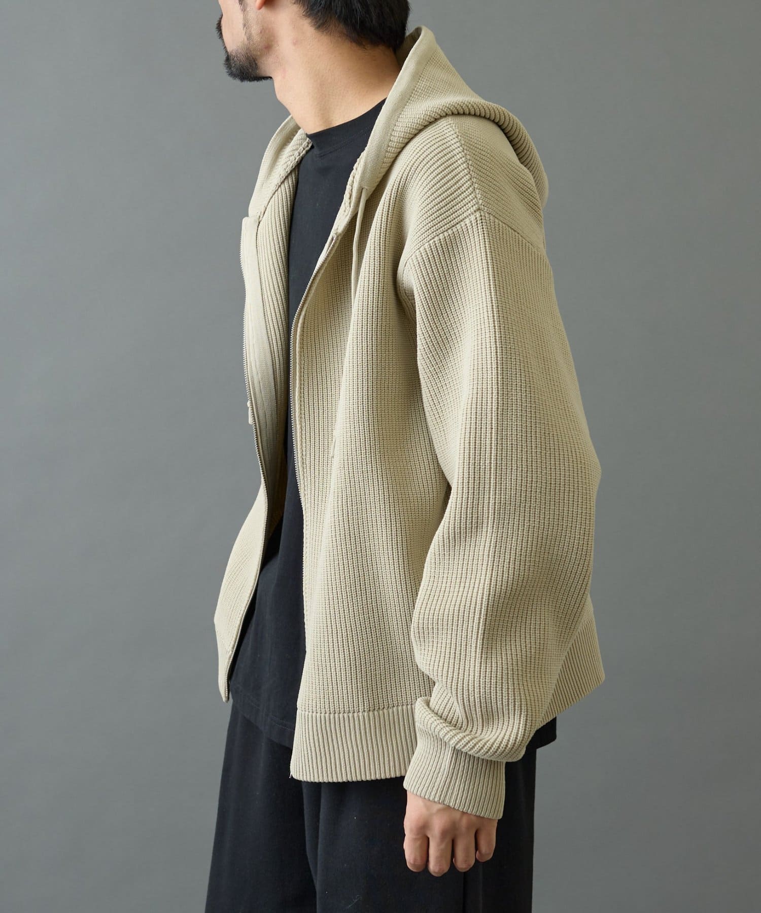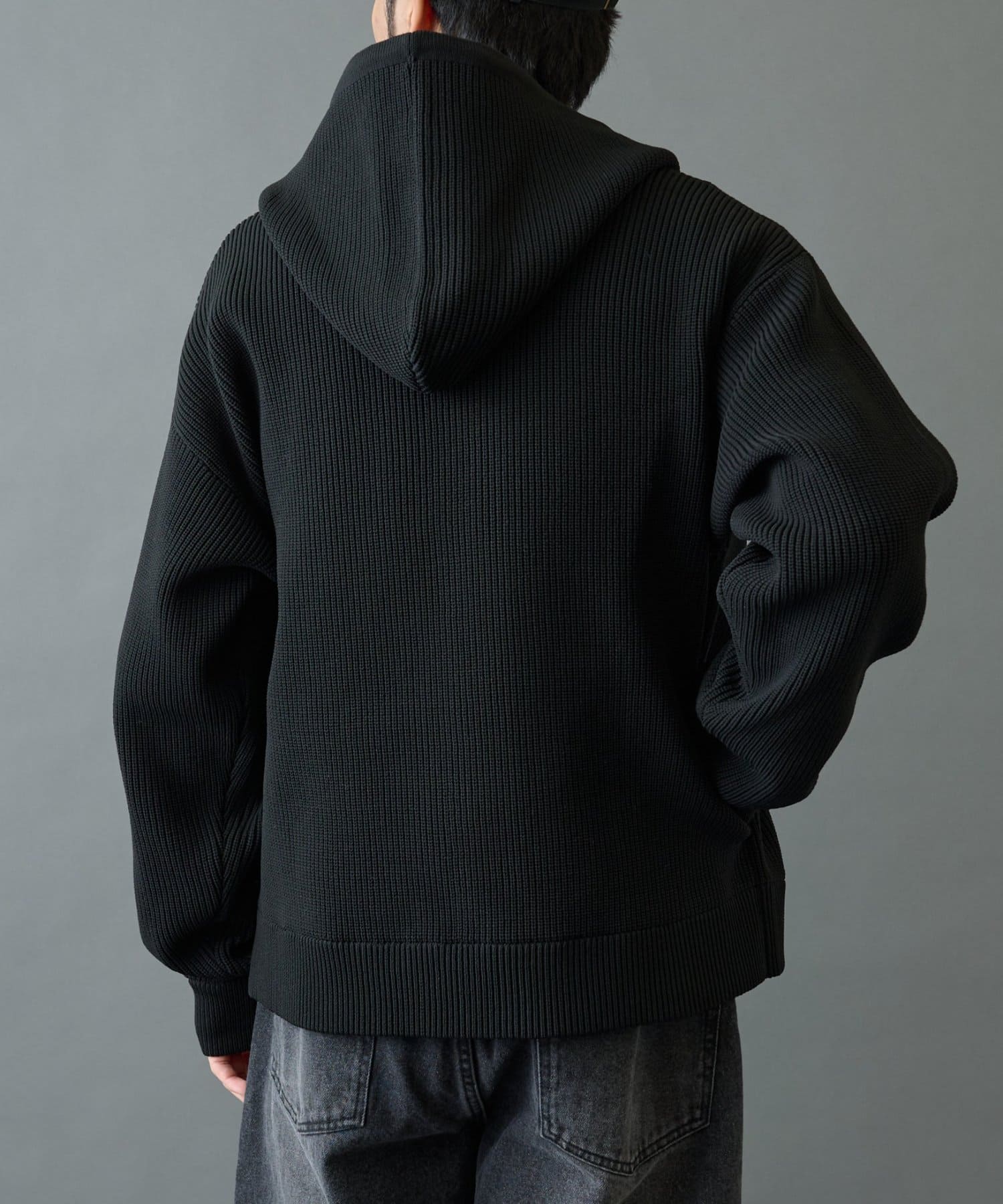 ハリ感と伸縮性を兼ね備えたテックニット素材を使用したジップパーカーです。