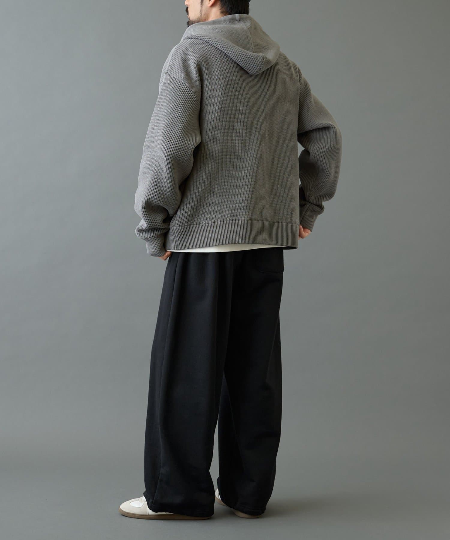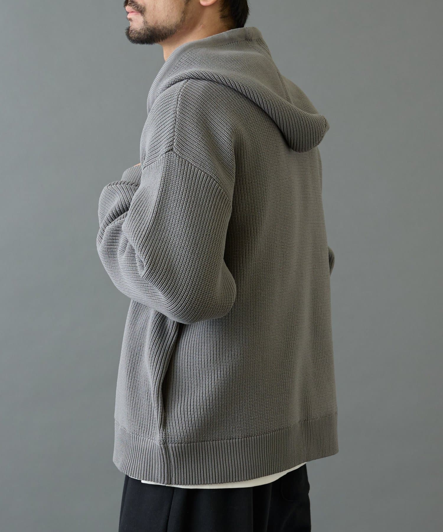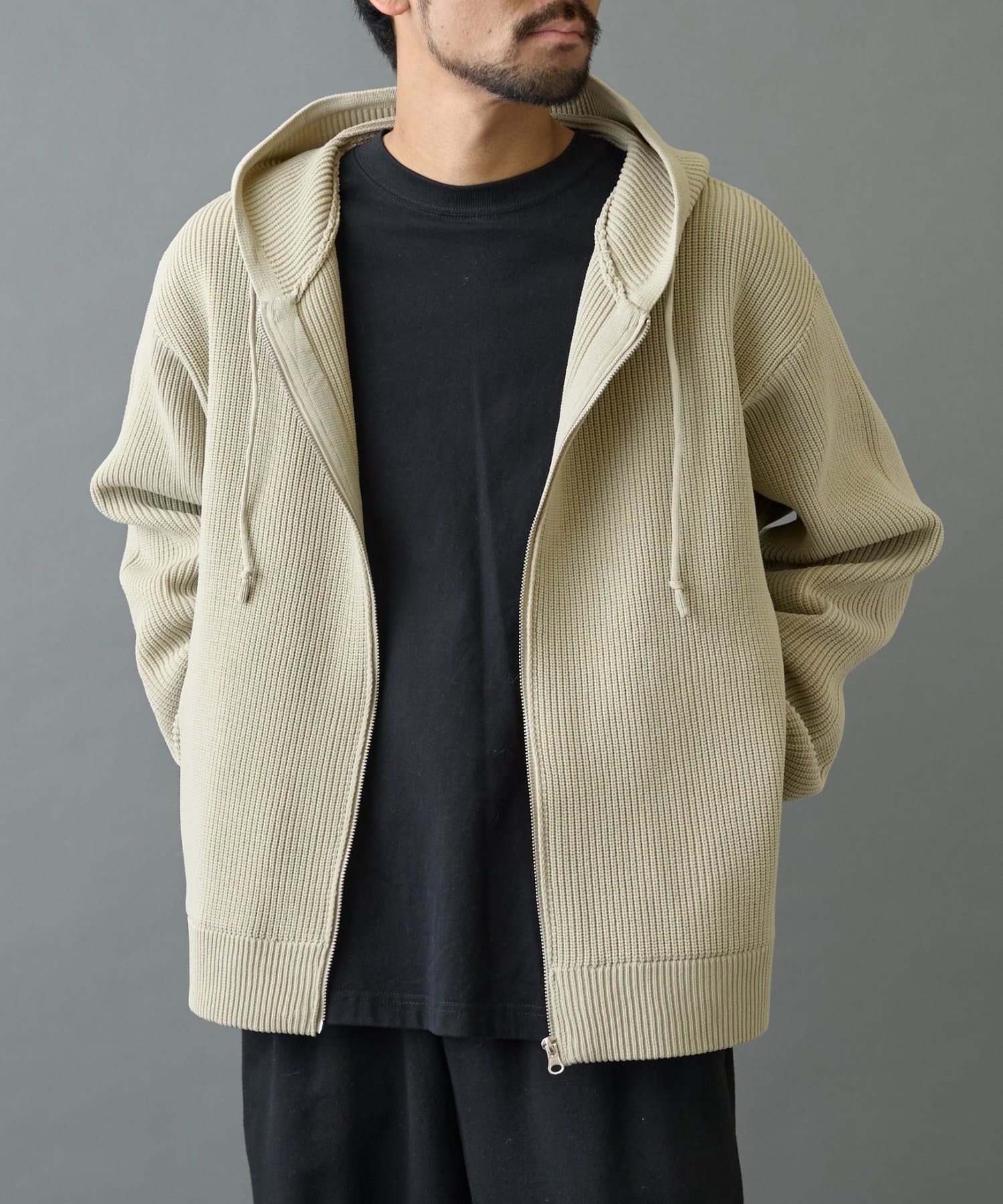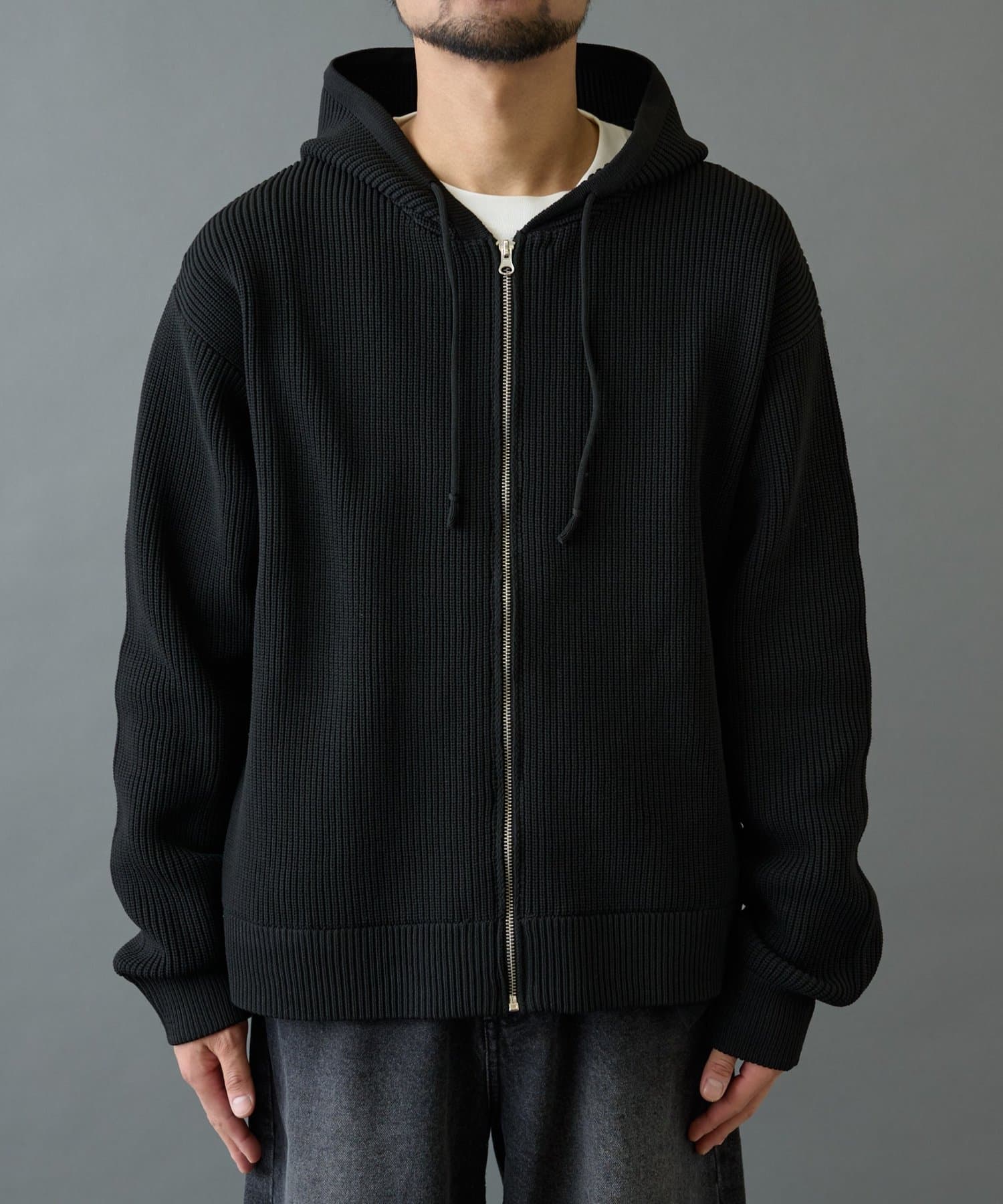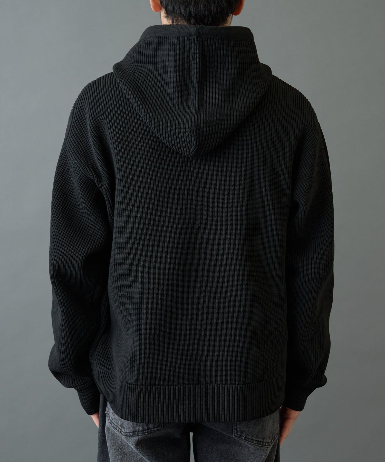 ハリ感と伸縮性を兼ね備えたテックニット素材を使用したジップパーカーです。