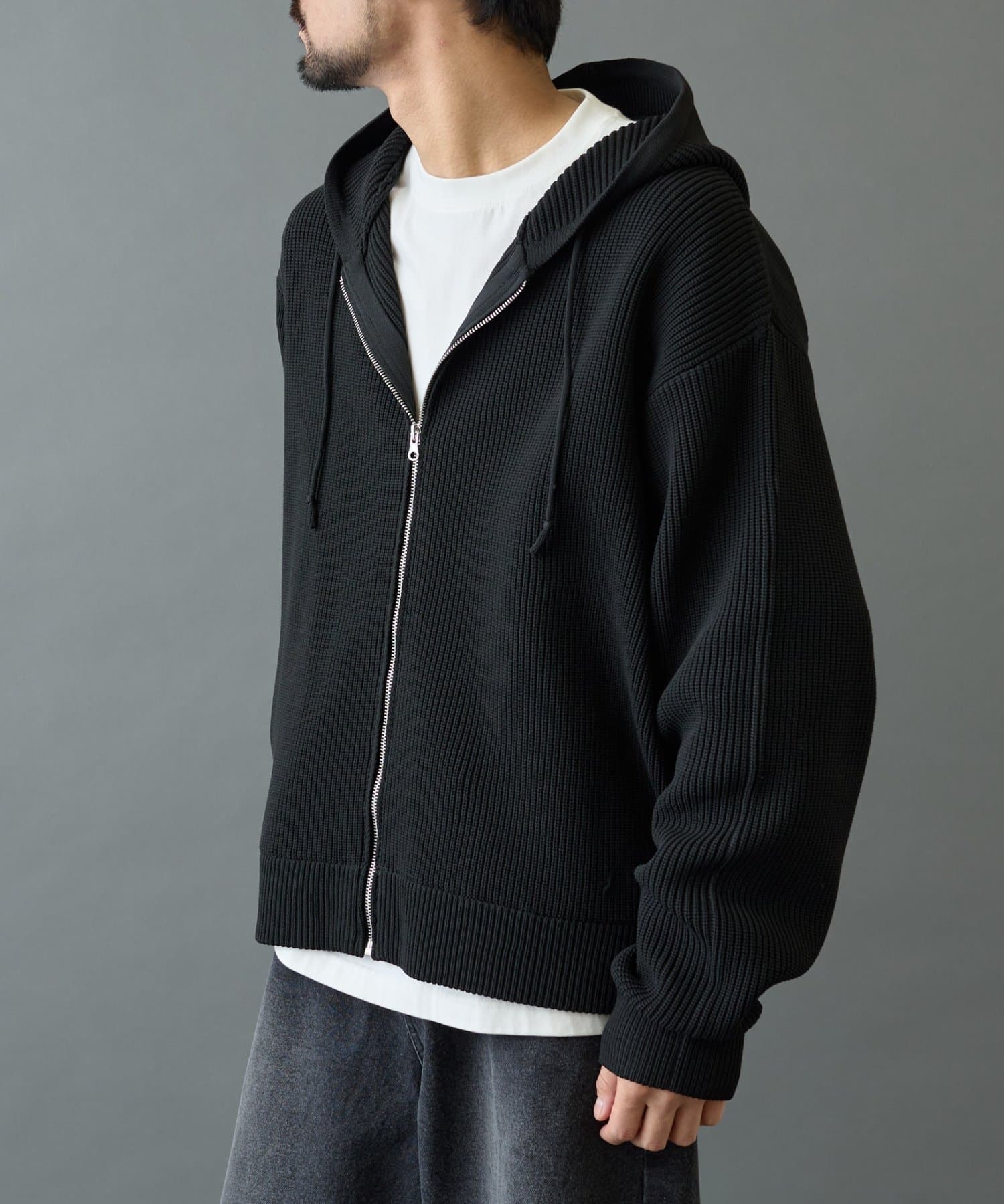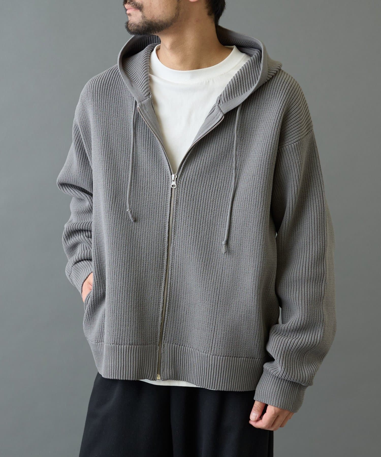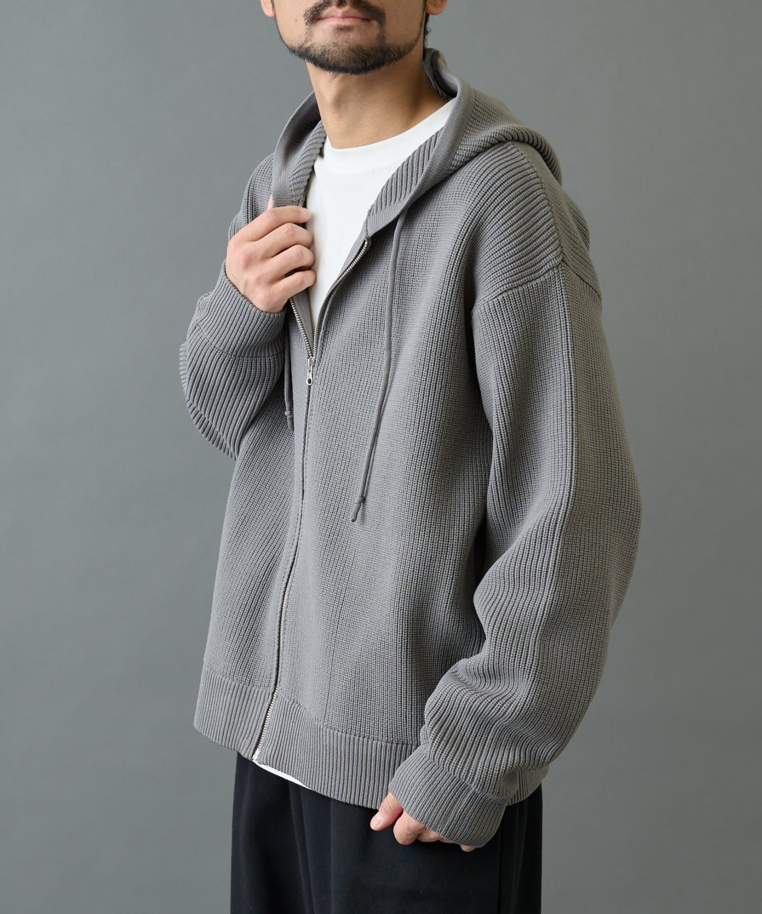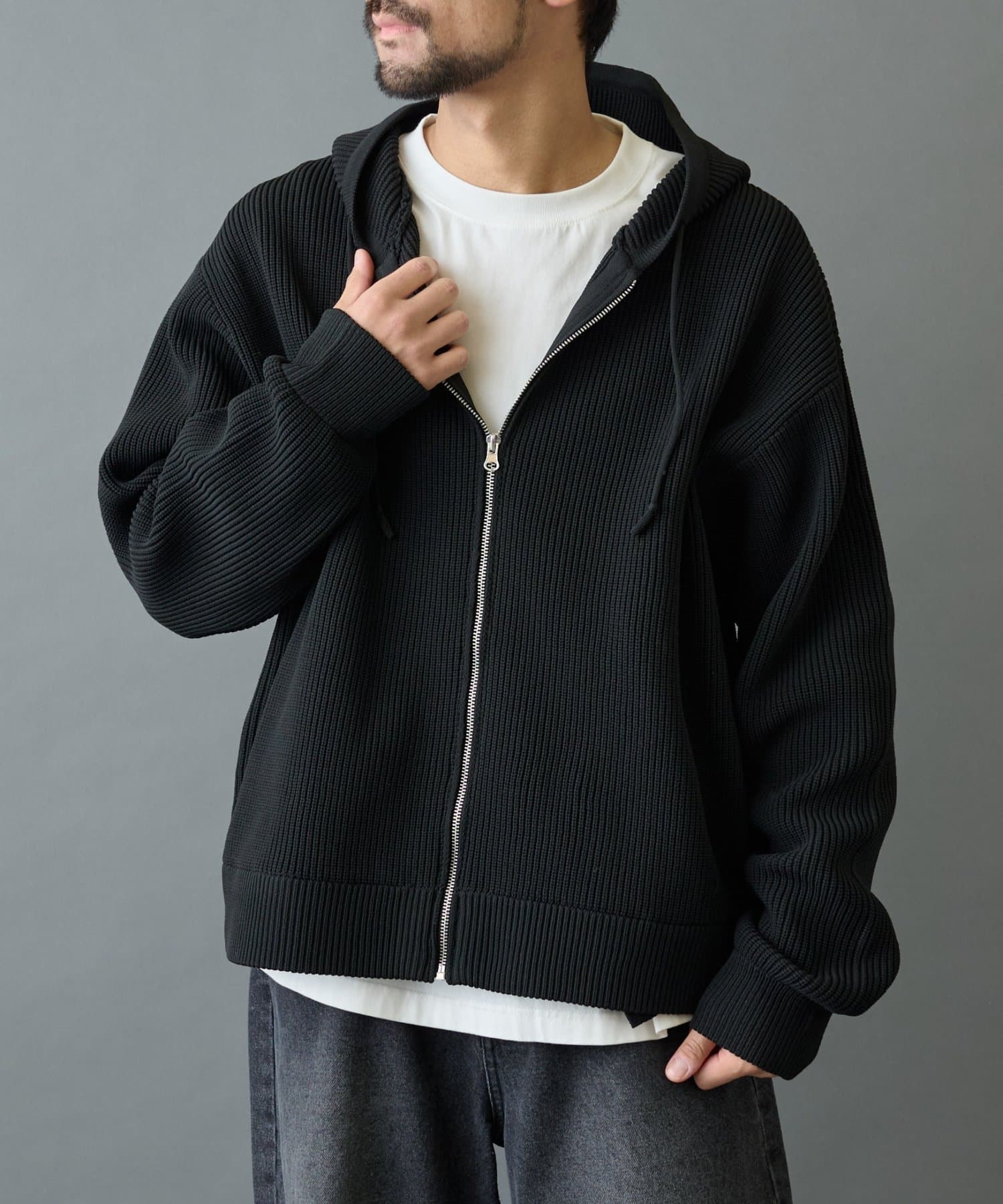 ハリ感と伸縮性を兼ね備えたテックニット素材を使用したジップパーカーです。
