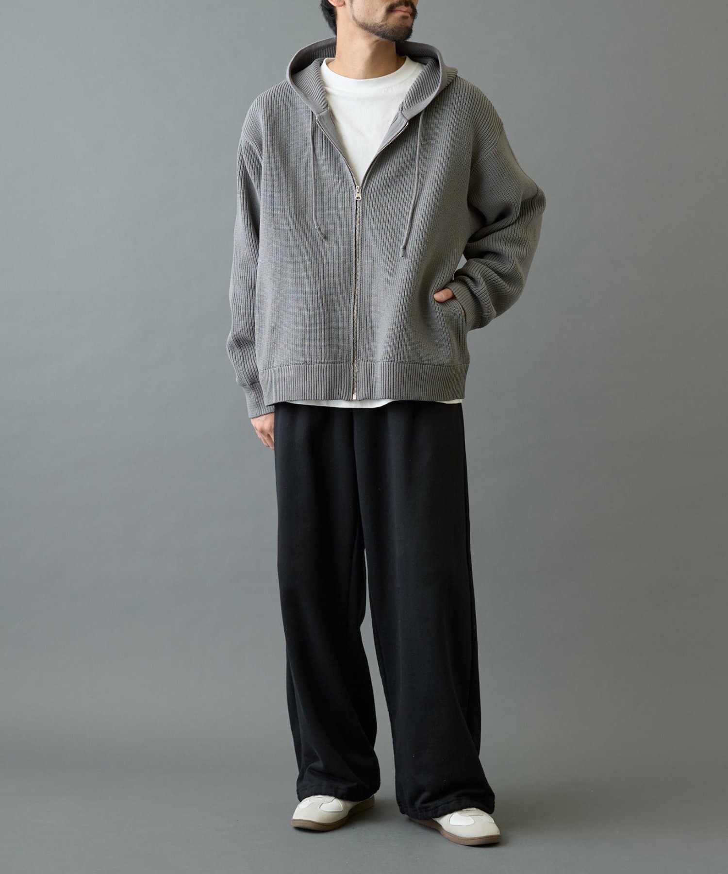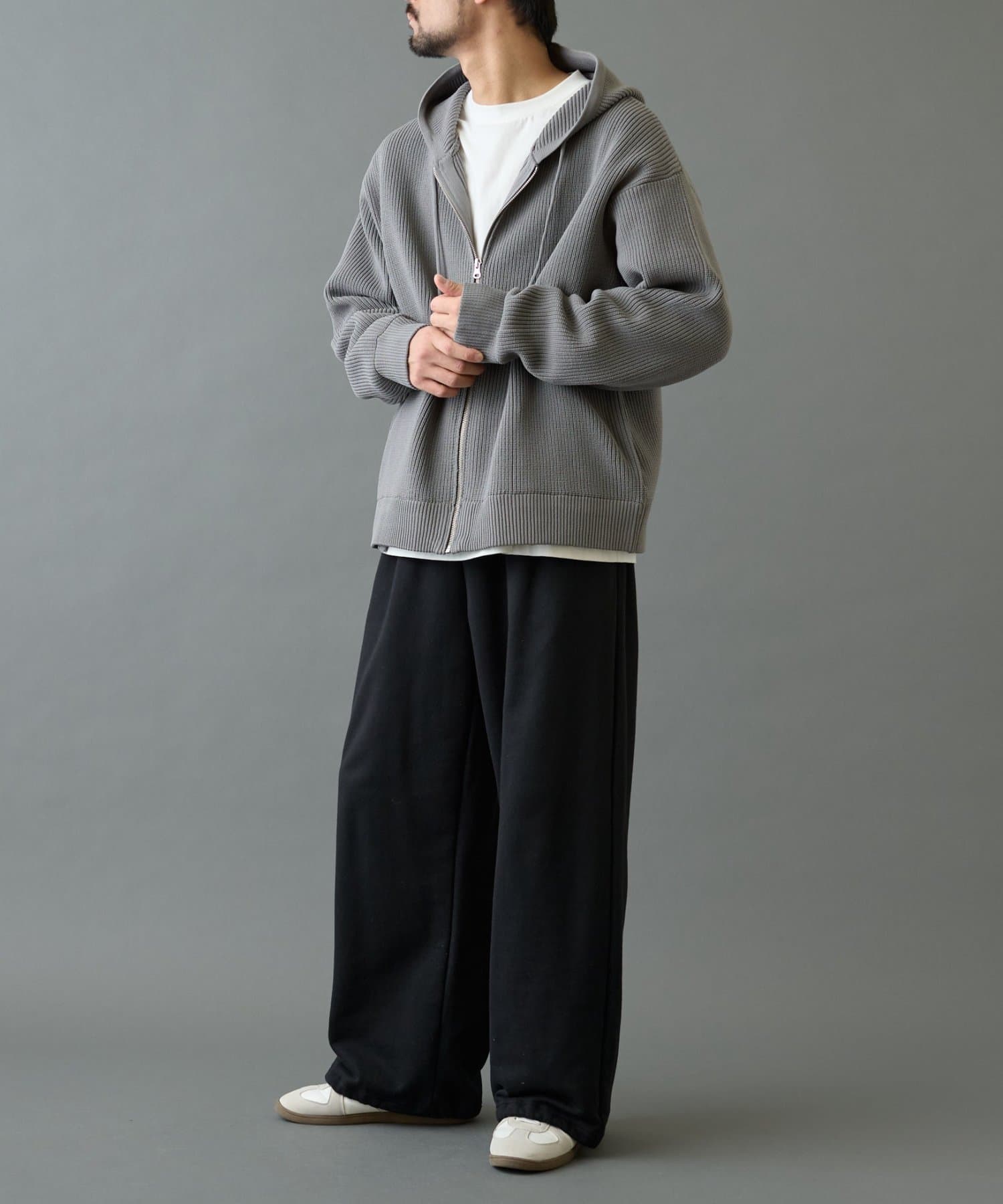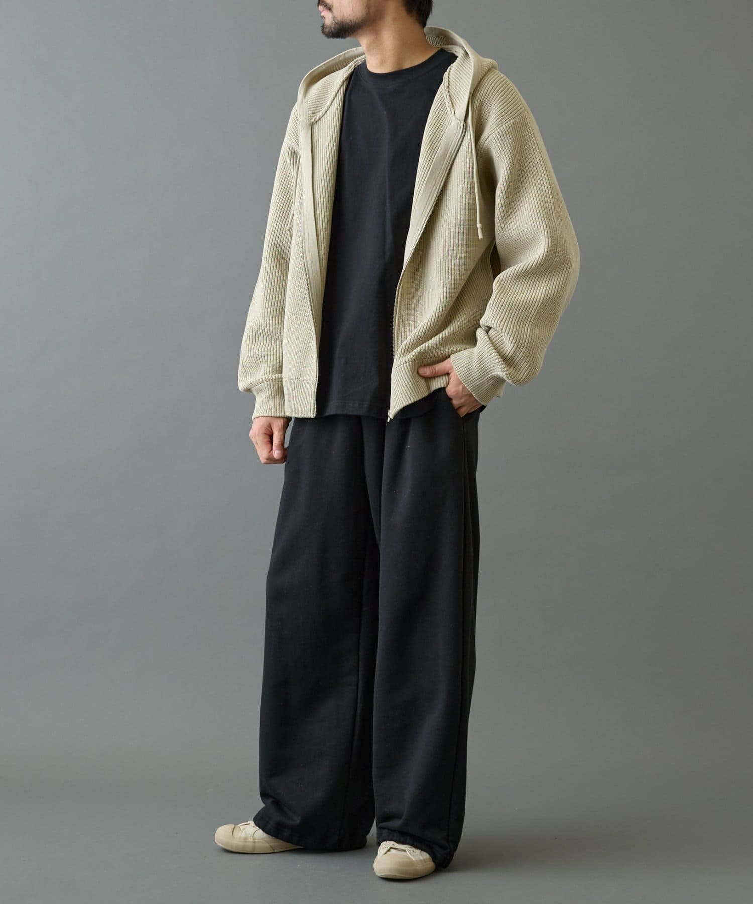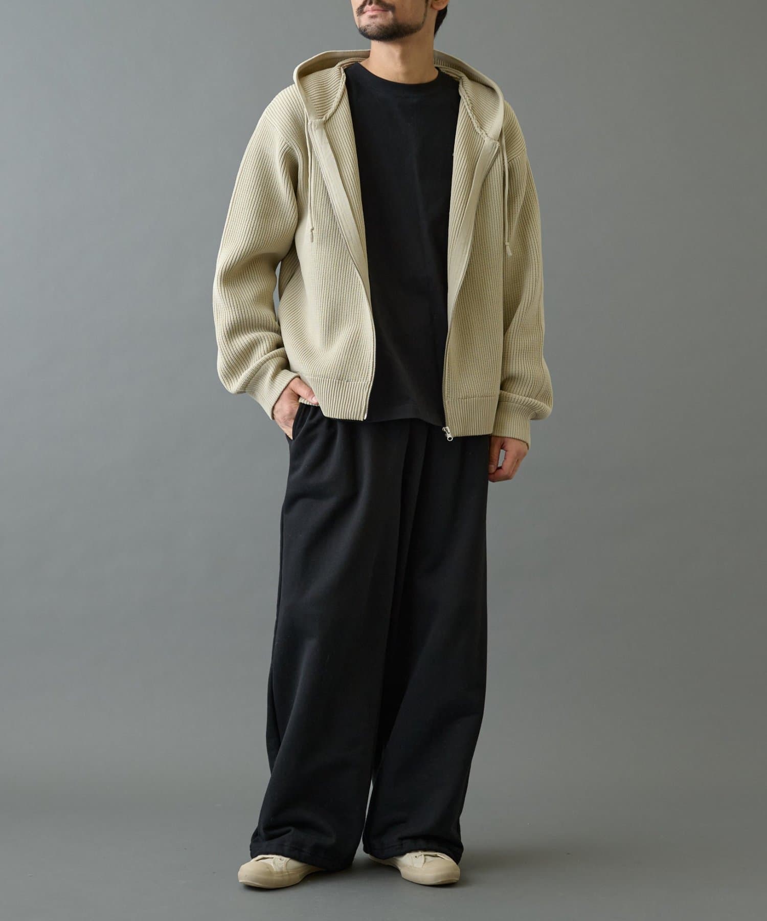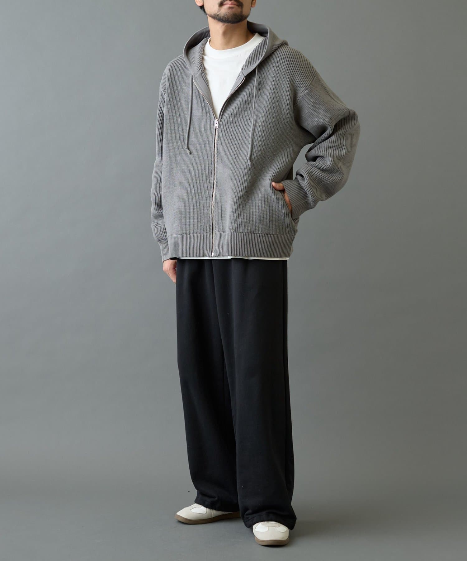 ハリ感と伸縮性を兼ね備えたテックニット素材を使用したジップパーカーです。