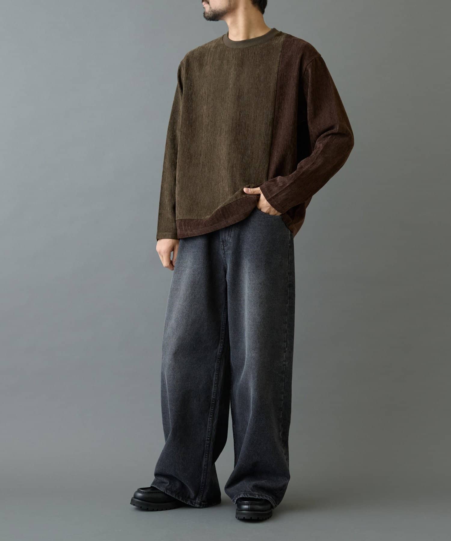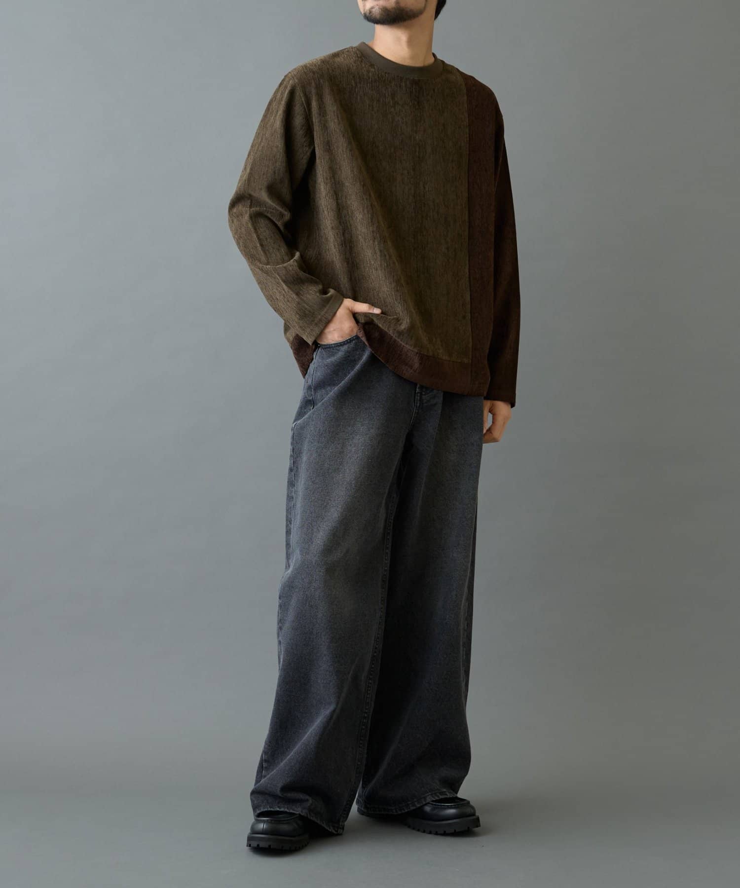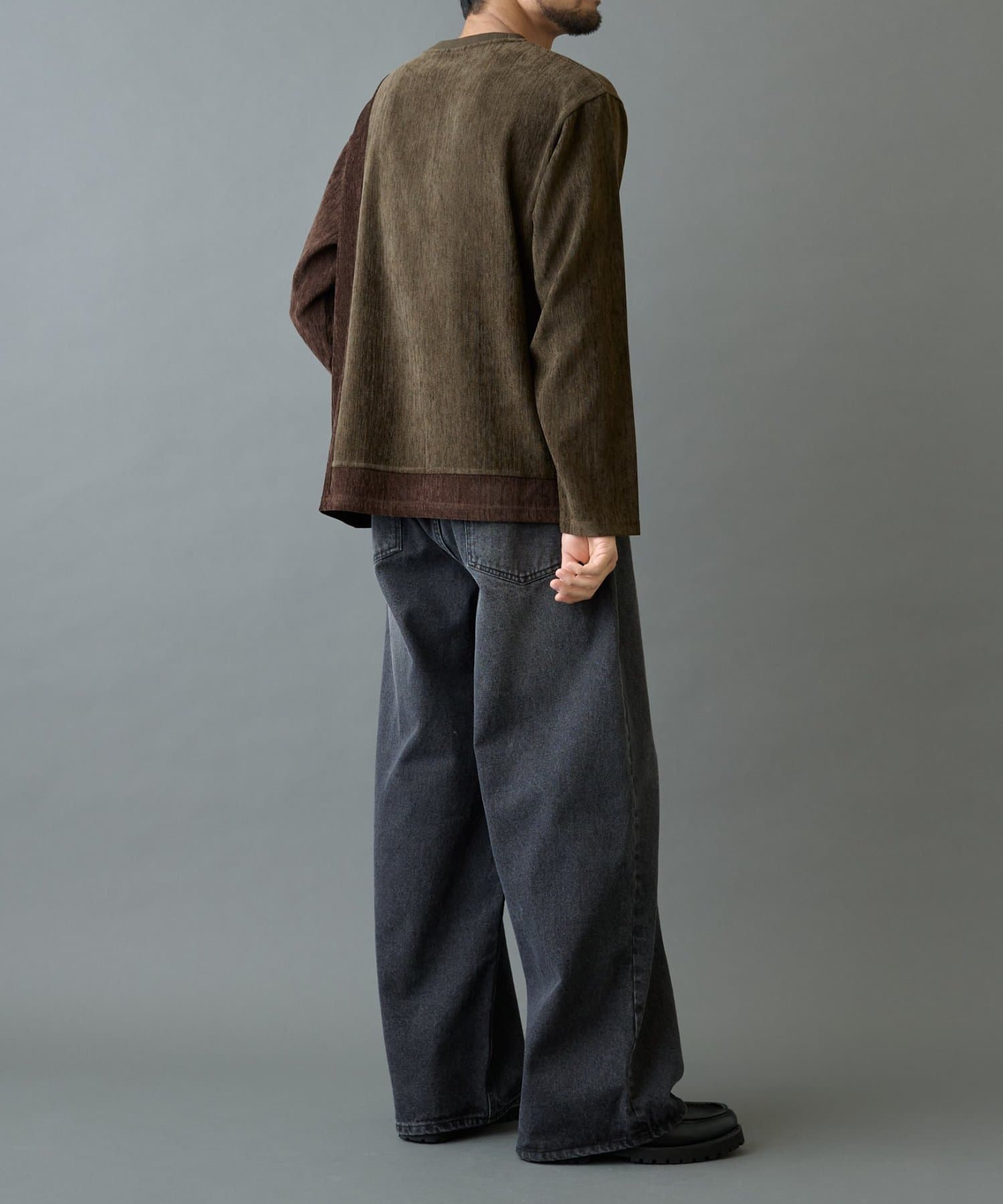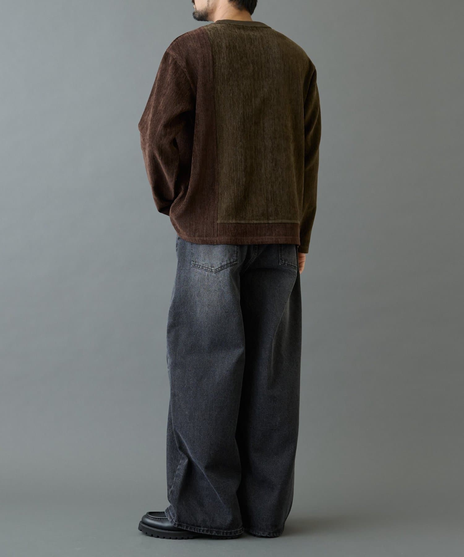 上品なフェードカラーとバイカラー切り替えが印象的なモール素材のクルーネックプルオーバーです。