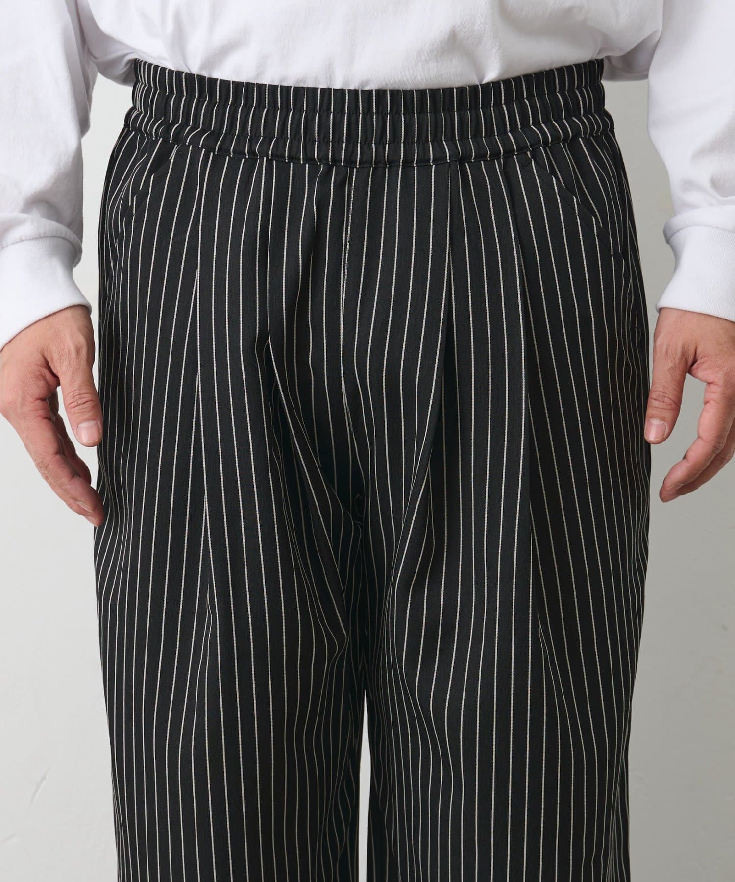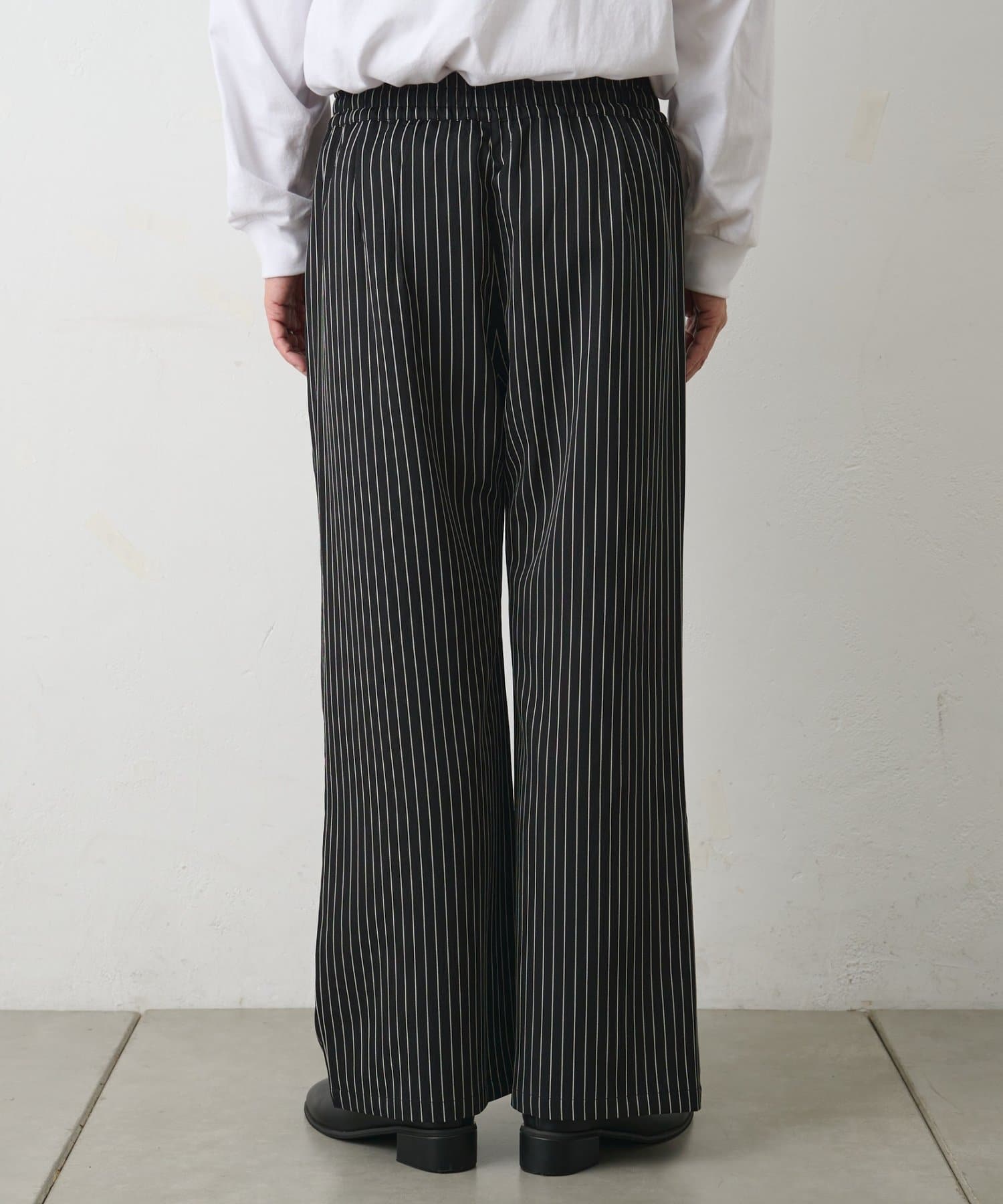 細かなピンストライプ柄が縦のラインを強調しすっきりとした印象を演出するイージーパンツです。