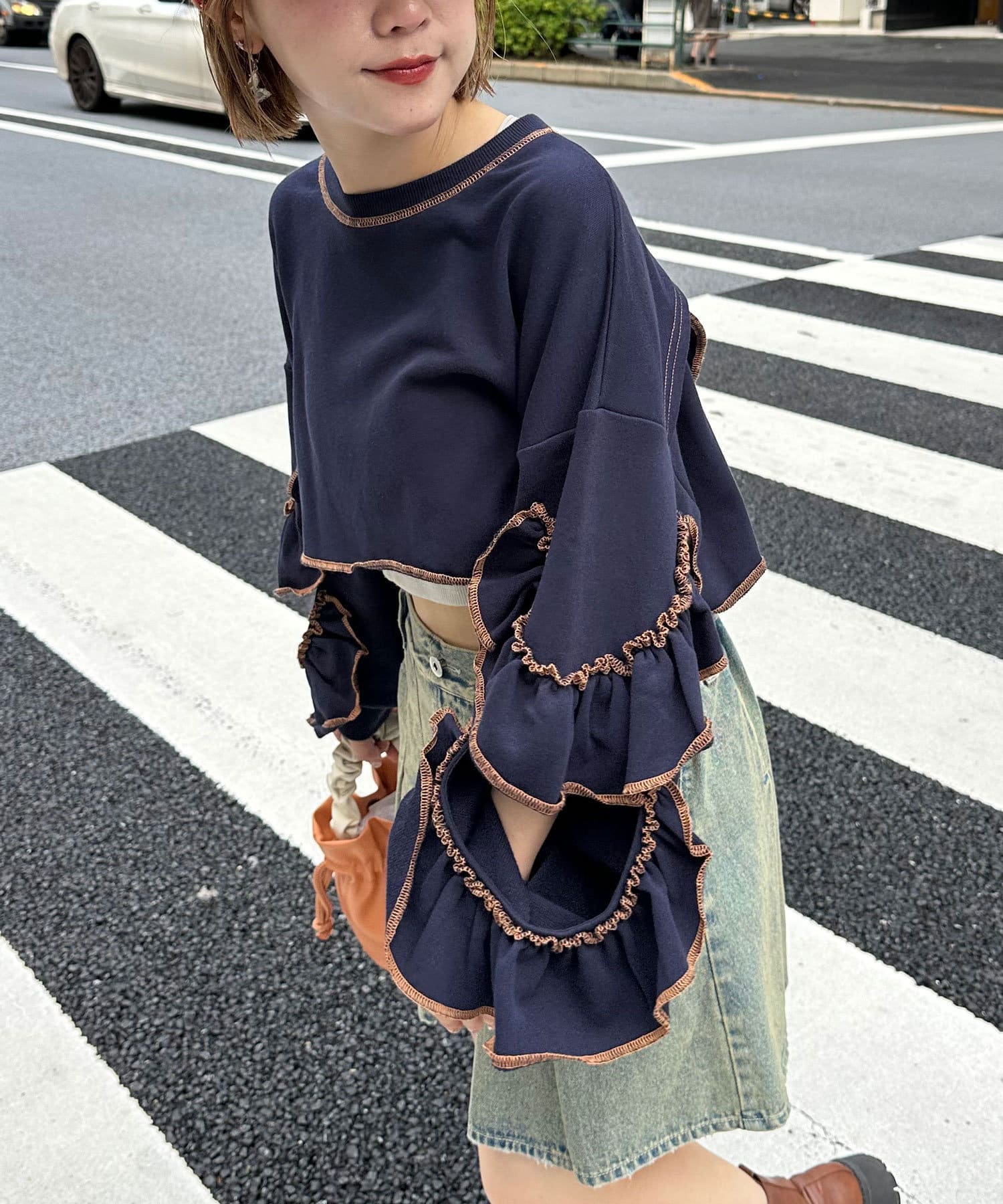 ・「フリル×カットアウト」でボリューム感あるスリーブ