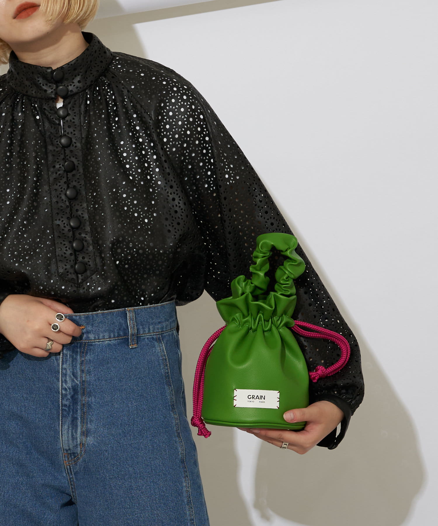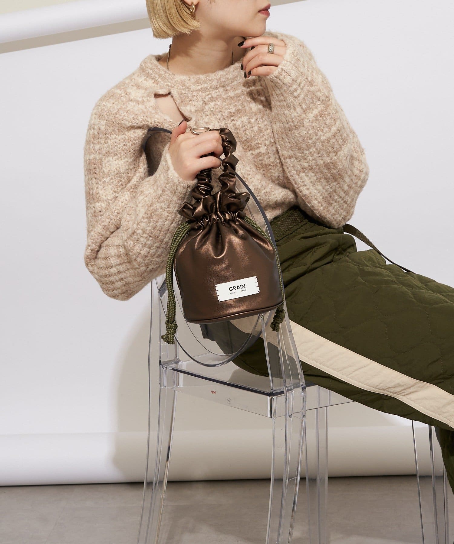 【GRAIN/グレイン】ギャザーハンドル巾着ラウンドバッグ #Loon