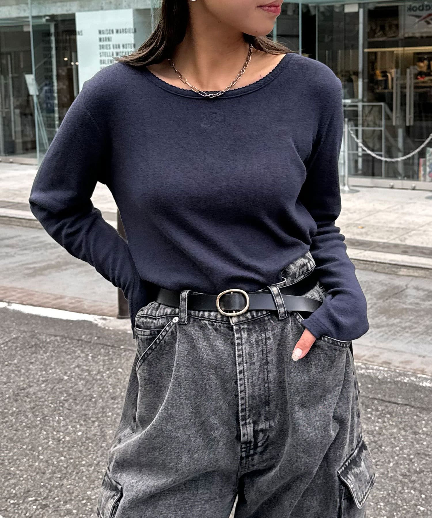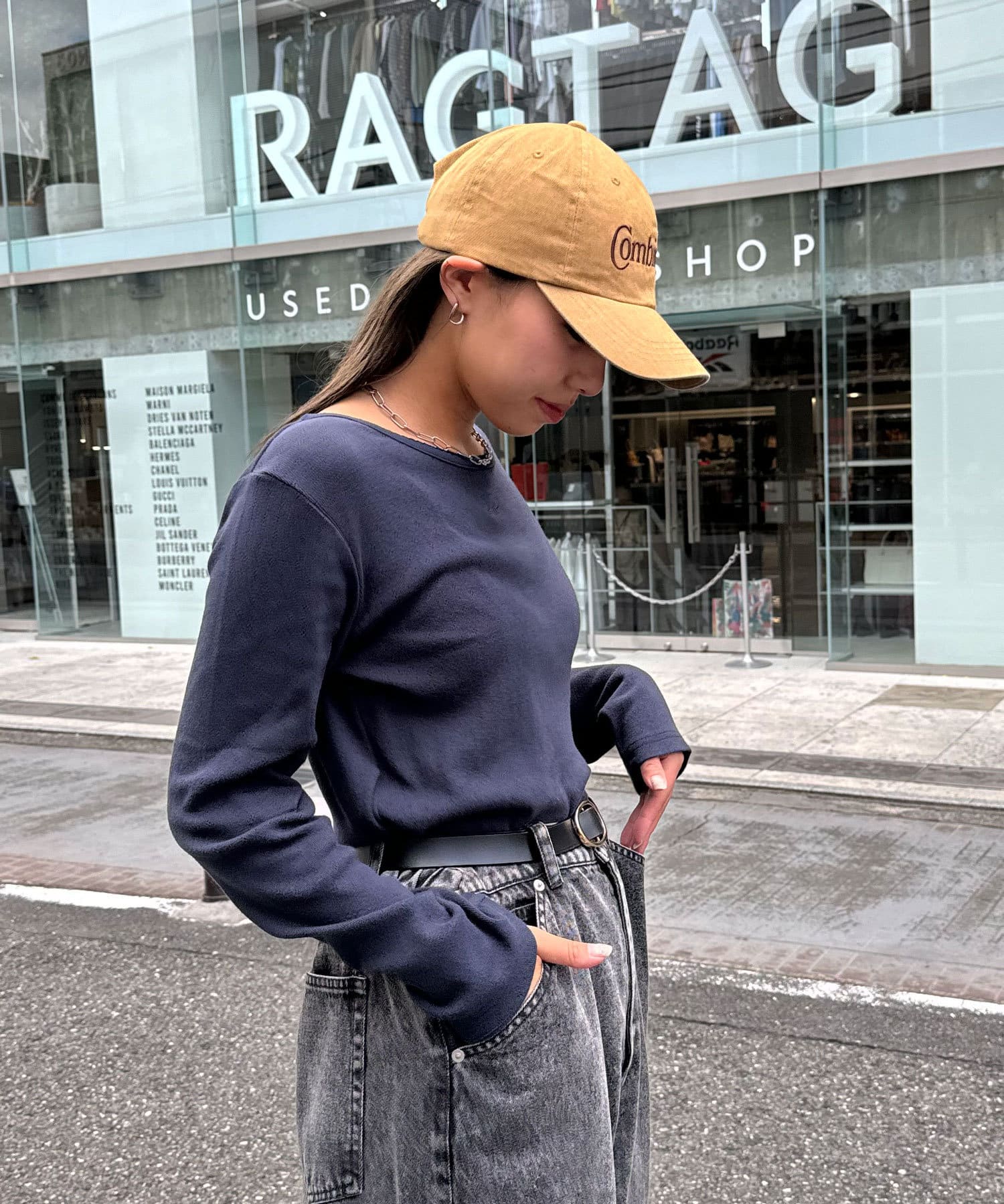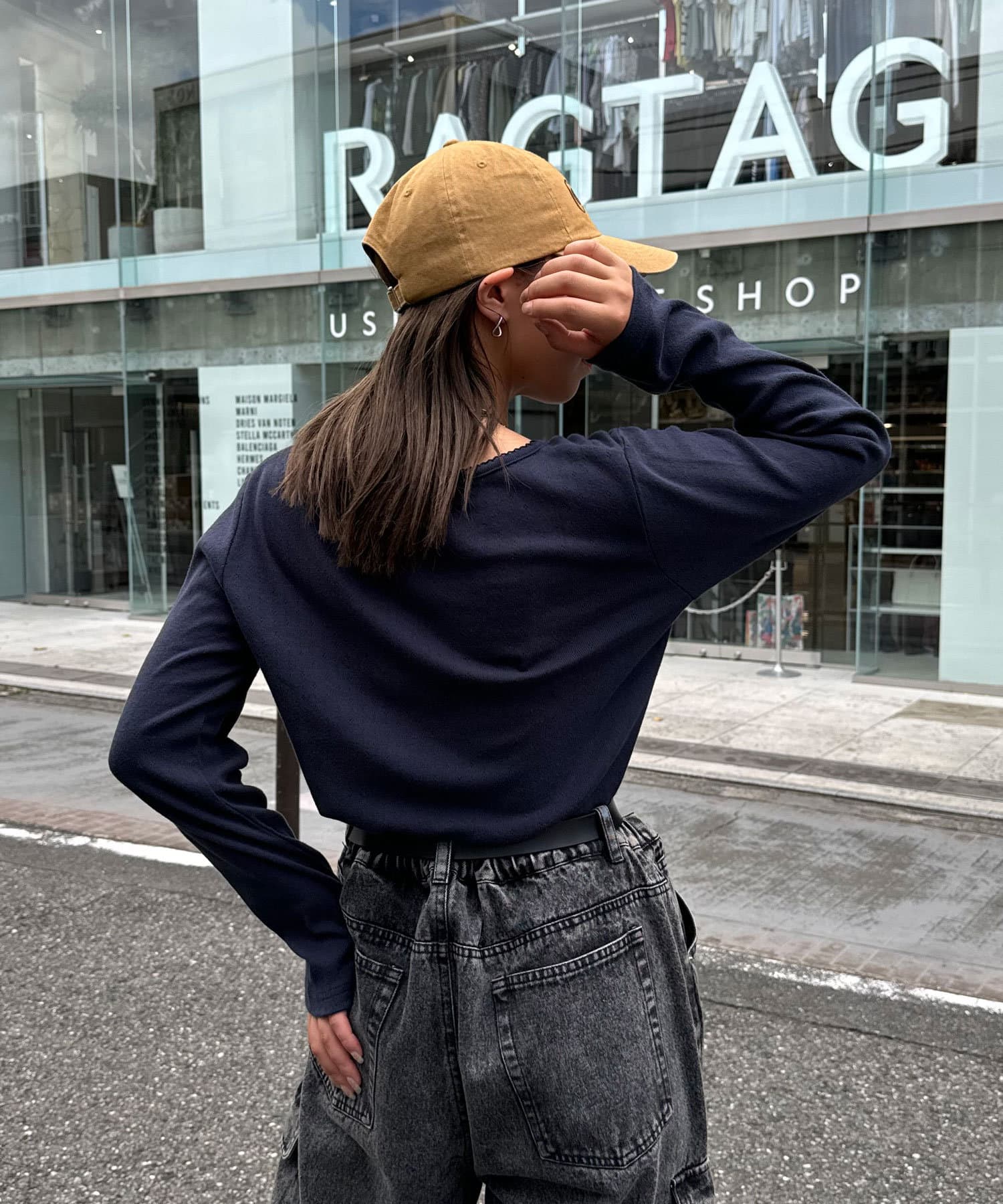 古着のインナーのような柔らかく可愛らしい印象の針抜き天竺素材を使用。