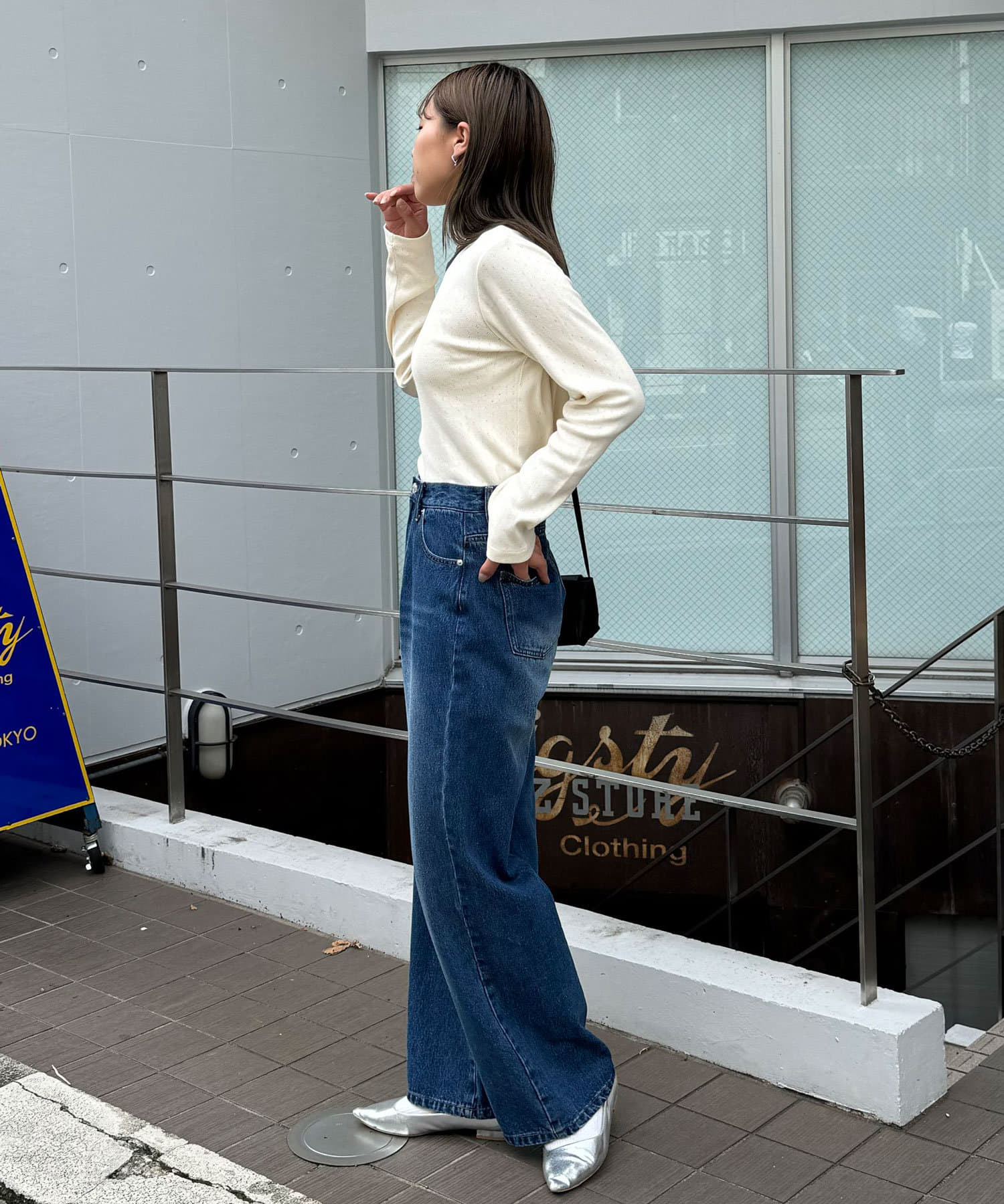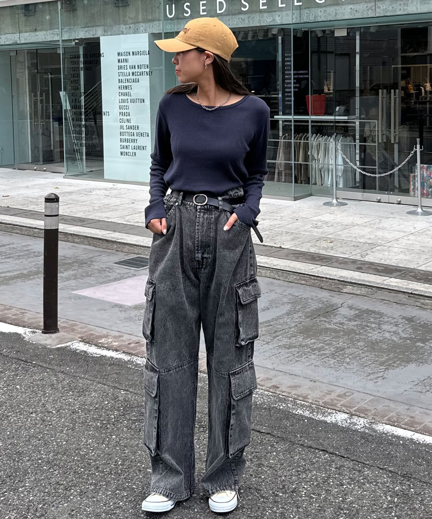 ボトムスはデニムやワンドパンツ合わせでカジュアルミックスなスタイリングがイチオシです。