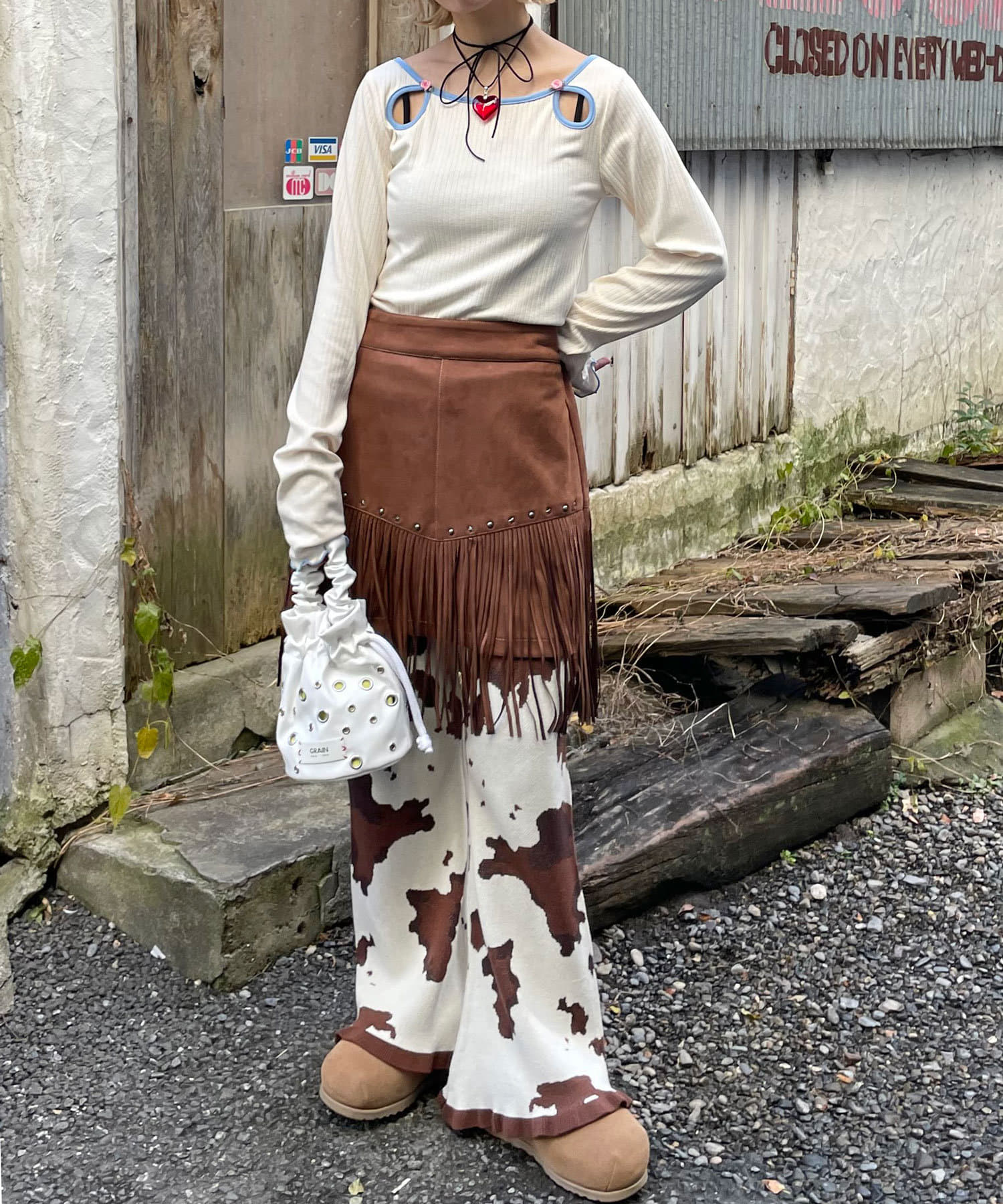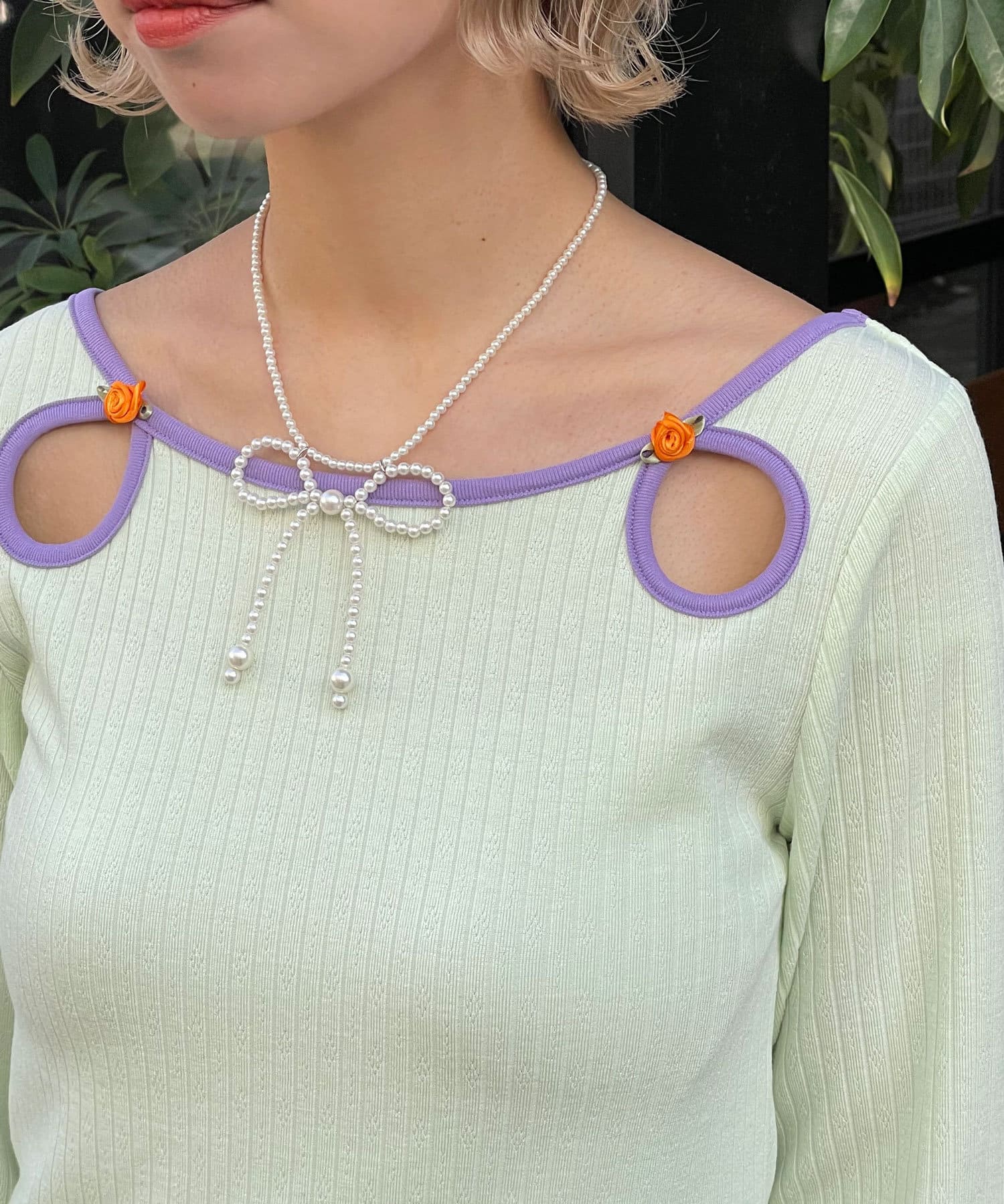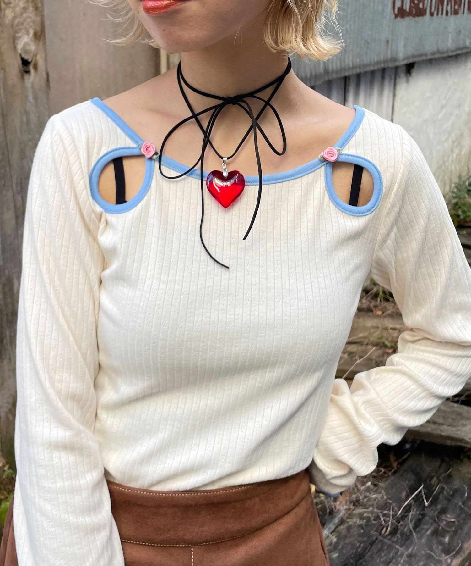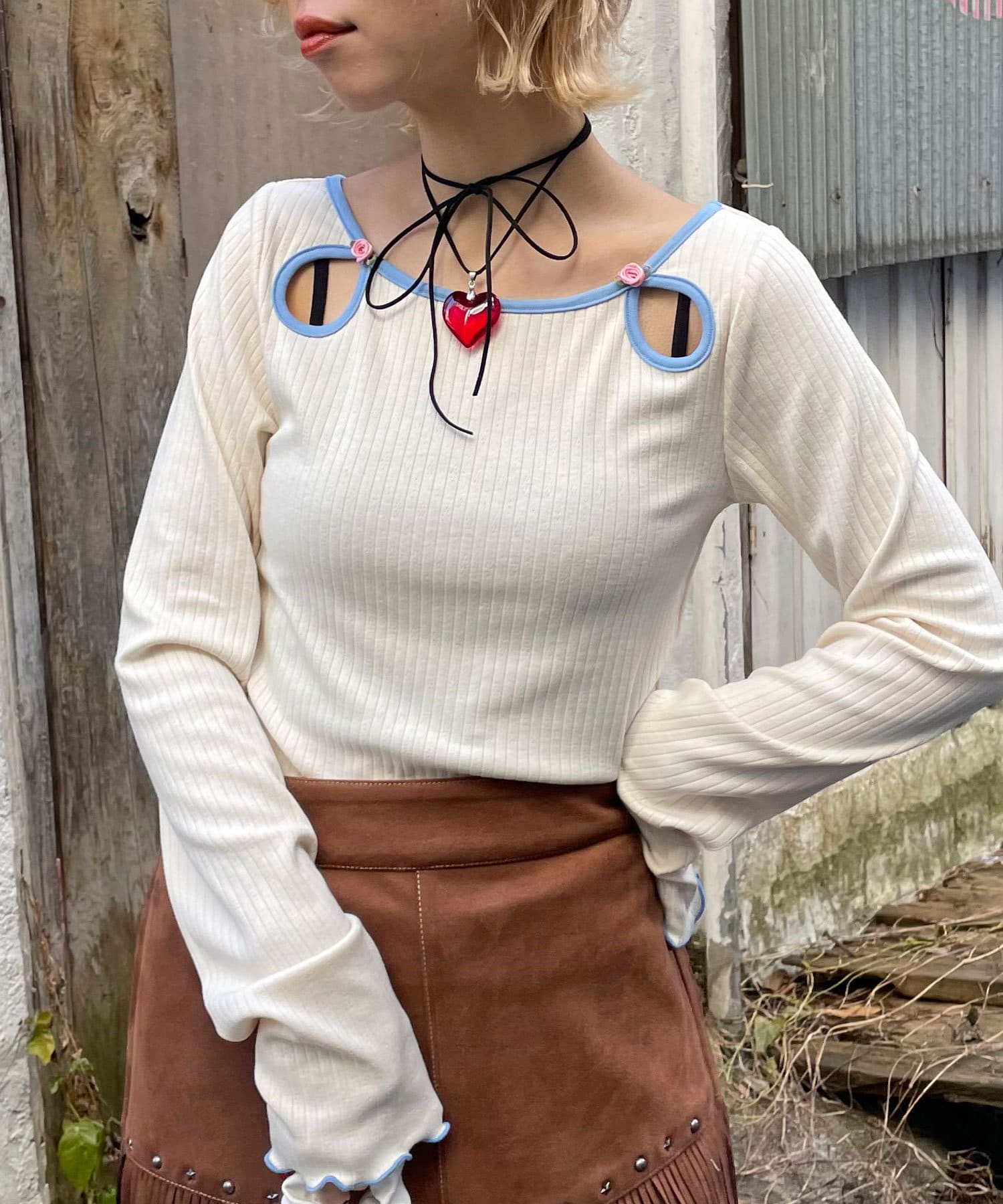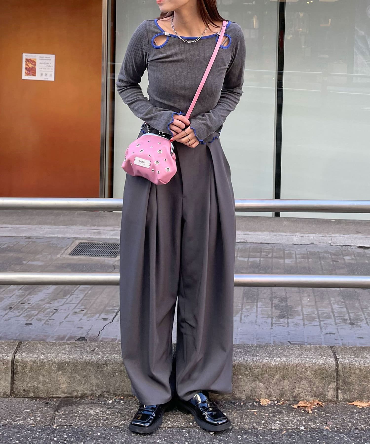 胸元のカットアウトデザインが、さりげなく肌見せを叶え、コーデに抜け感をプラス。