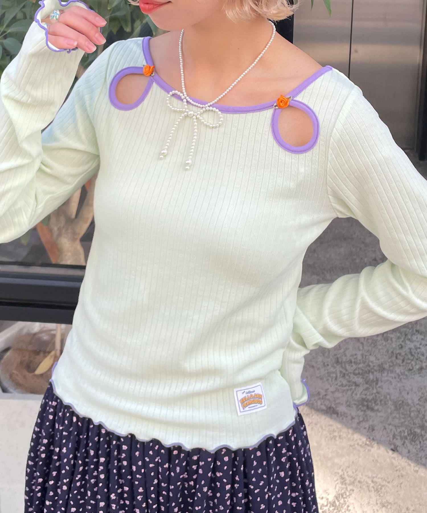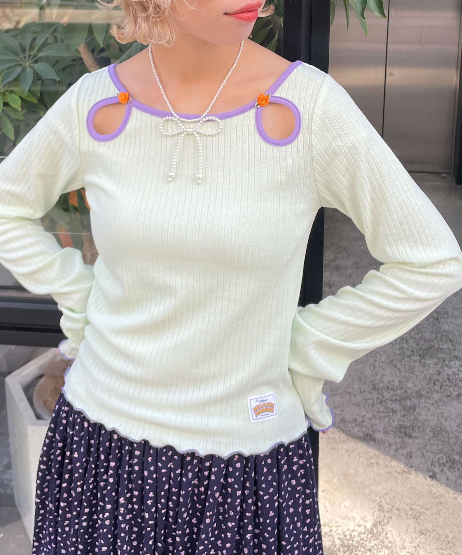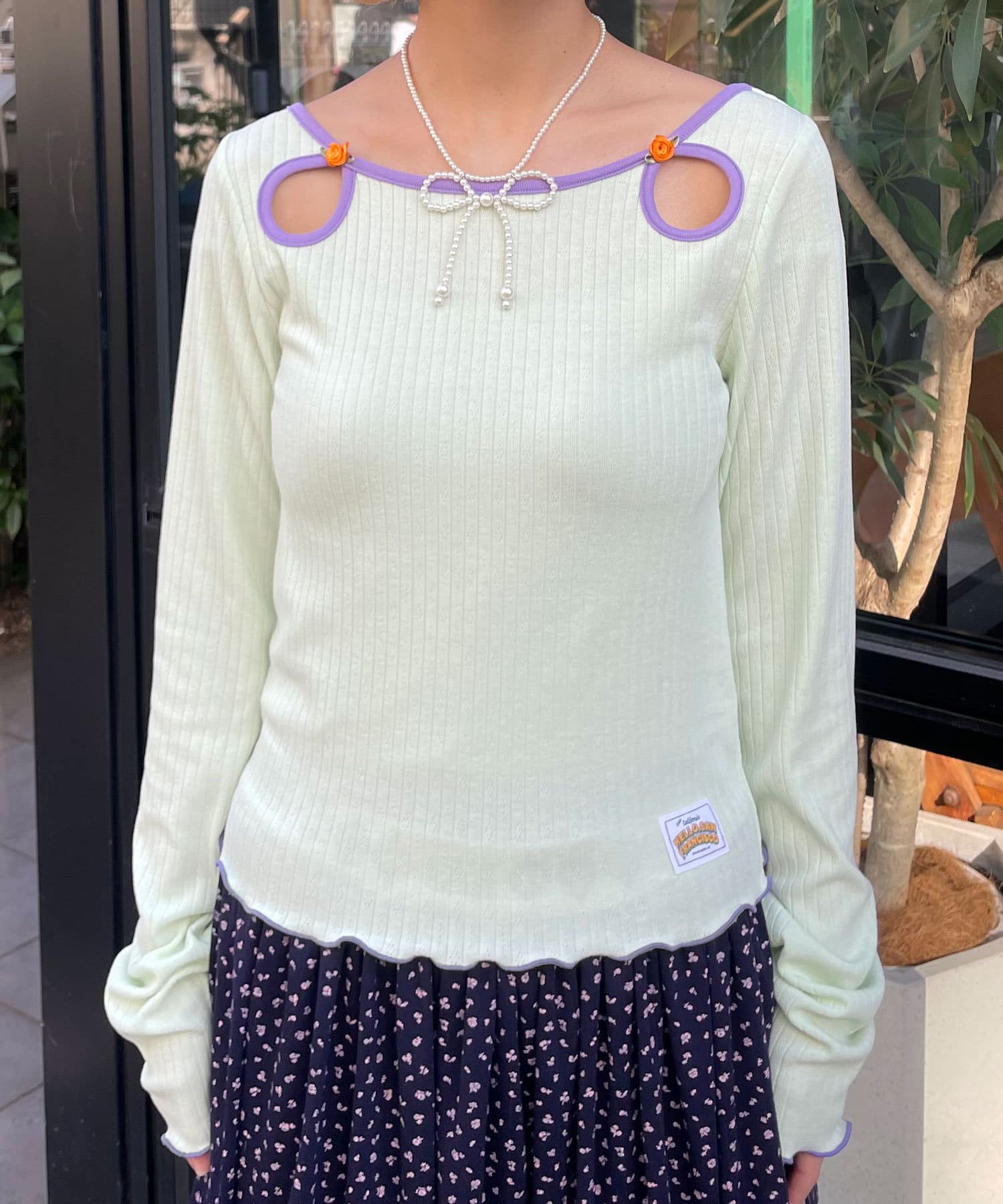 【HELLO.SANFRANCISCO/ハローサンフランシスコ】針ぬき配色リブカットソー