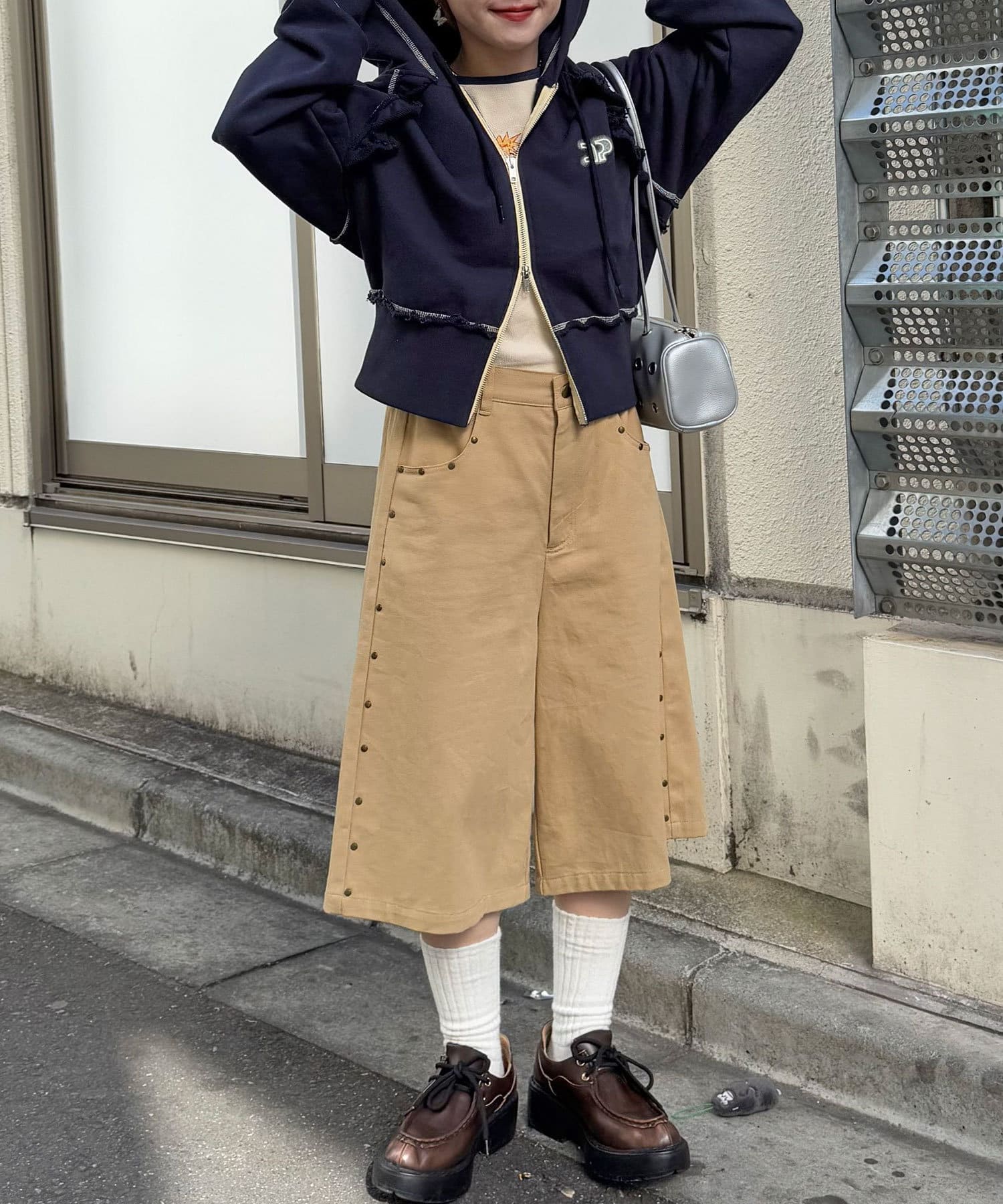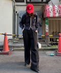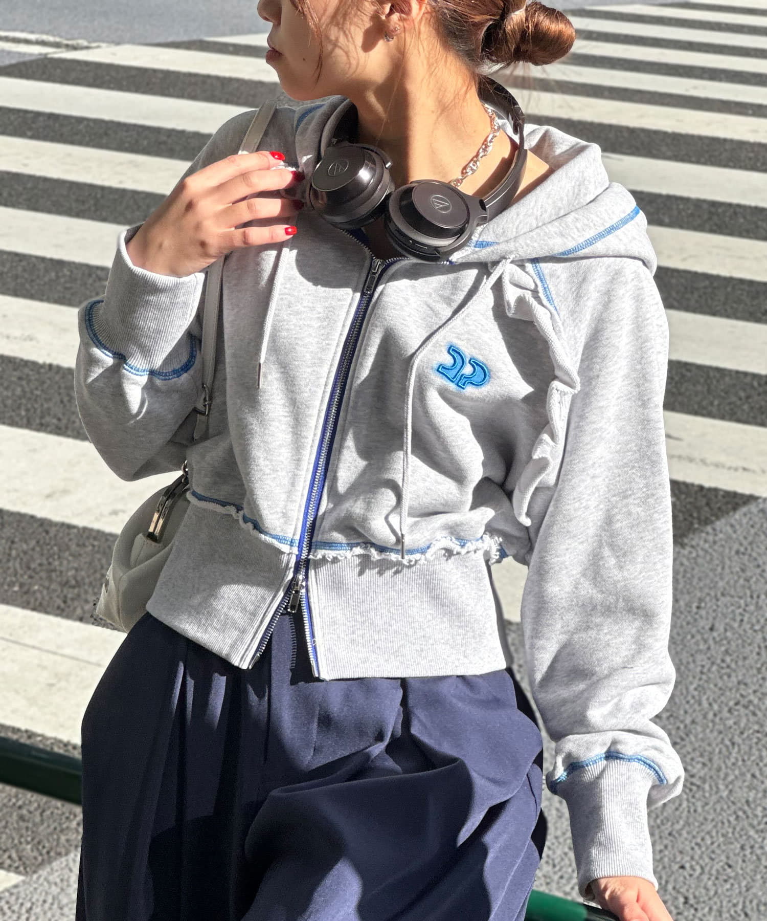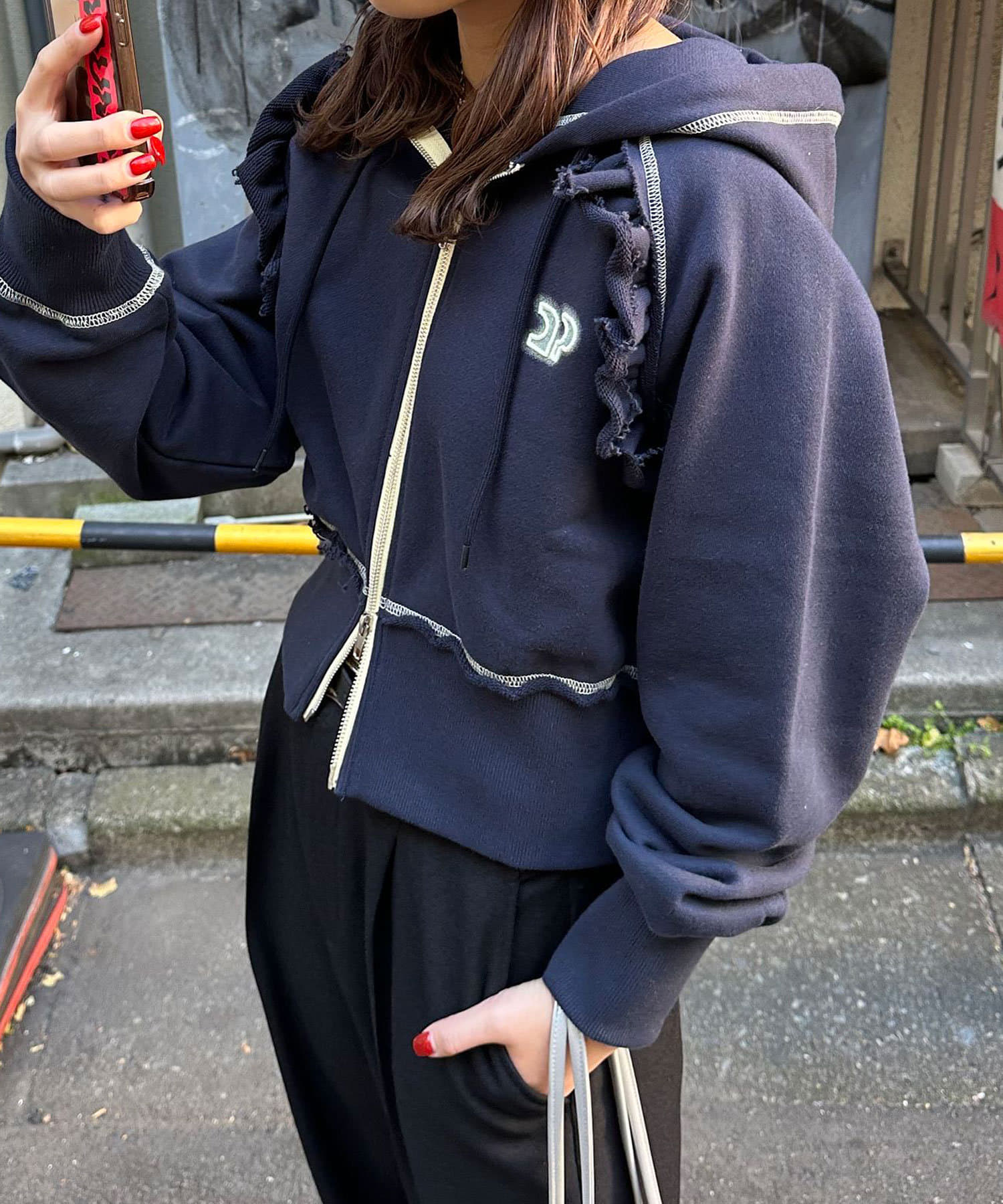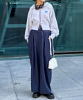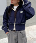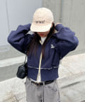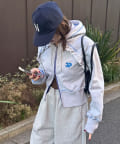 配色ステッチや、胸元の「CP」ロゴがコーデのアクセントにぴったりです。