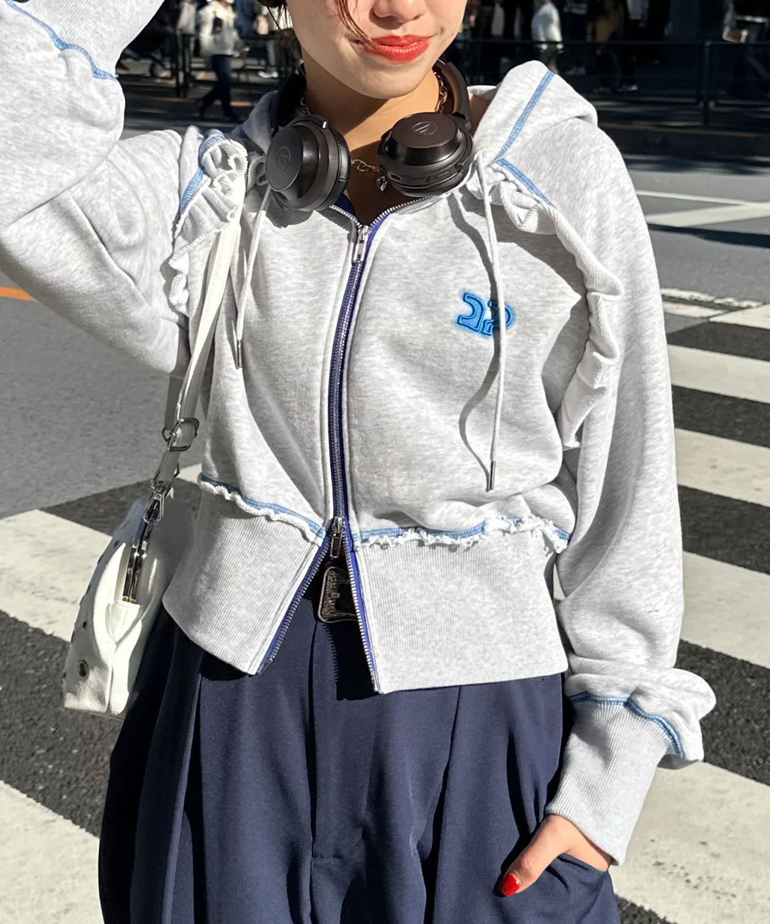フリルやステッチがアクセントになって、シンプルなデニムと合わせてもおしゃれに決まります。