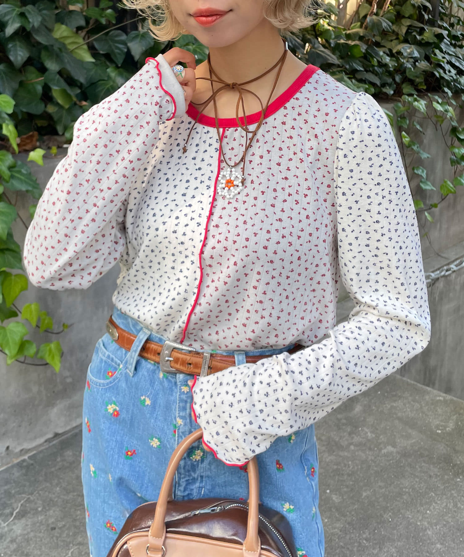 【HELLO.SANFRANCISCO/ハローサンフランシスコ】小花柄ドッキングリブトップス