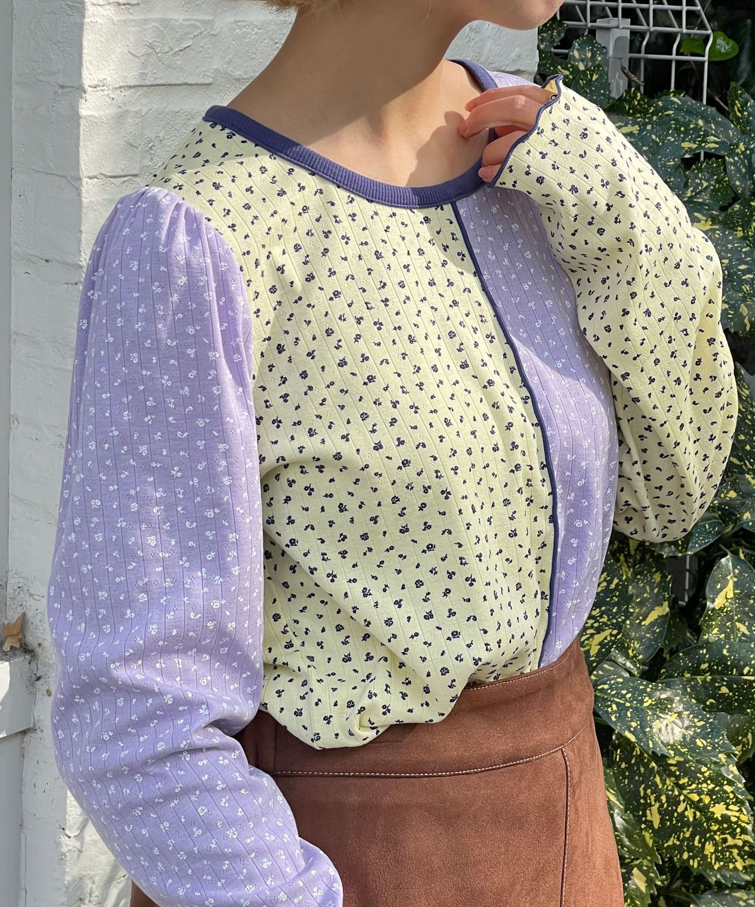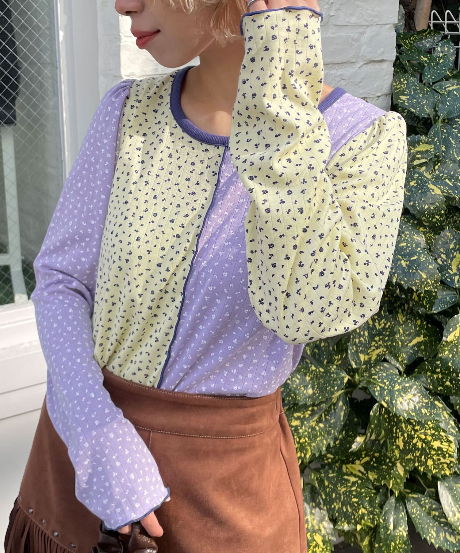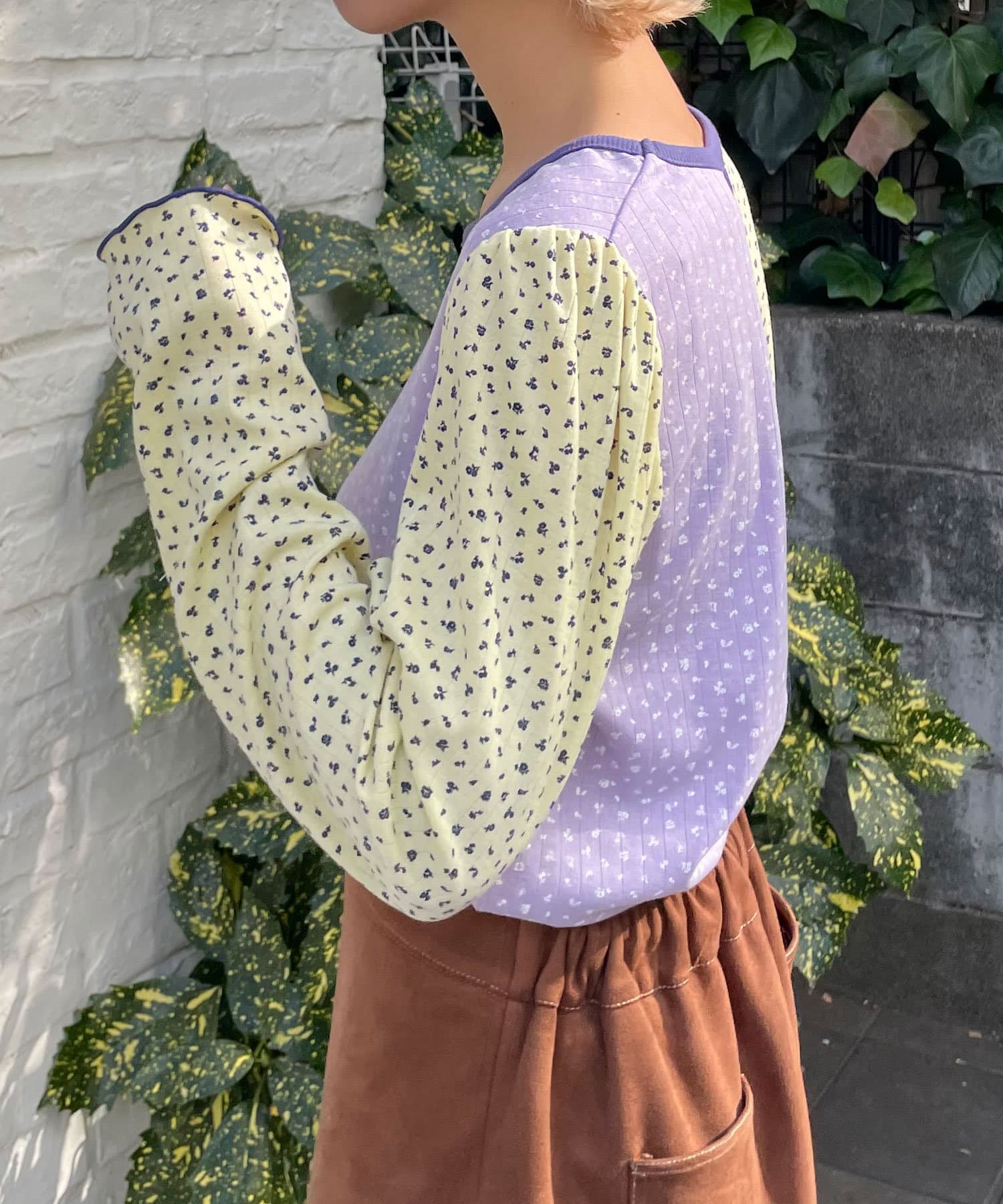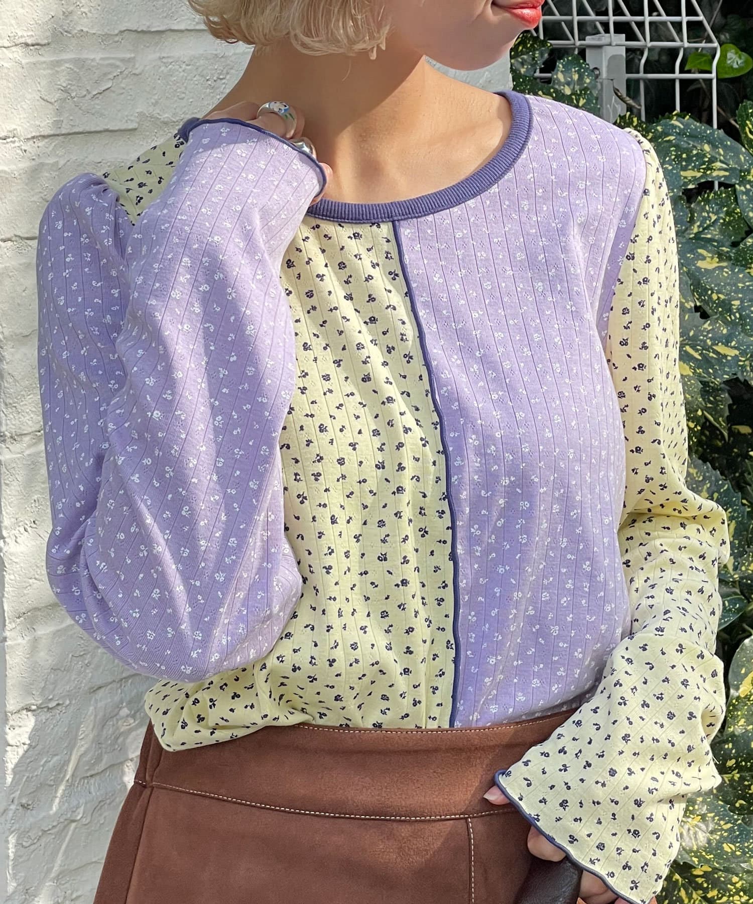 キュートな小花柄とリブ素材が絶妙に組み合わさったドッキングトップス!