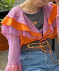 袖口と身頃にあしらった切り替えフリルが、動くたびにふんわり揺れて華やかさをプラス。