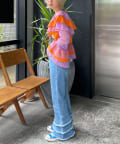 デニムやカーゴパンツにラフに羽織って、甘さをほどよく中和したカジュアルMIXに。