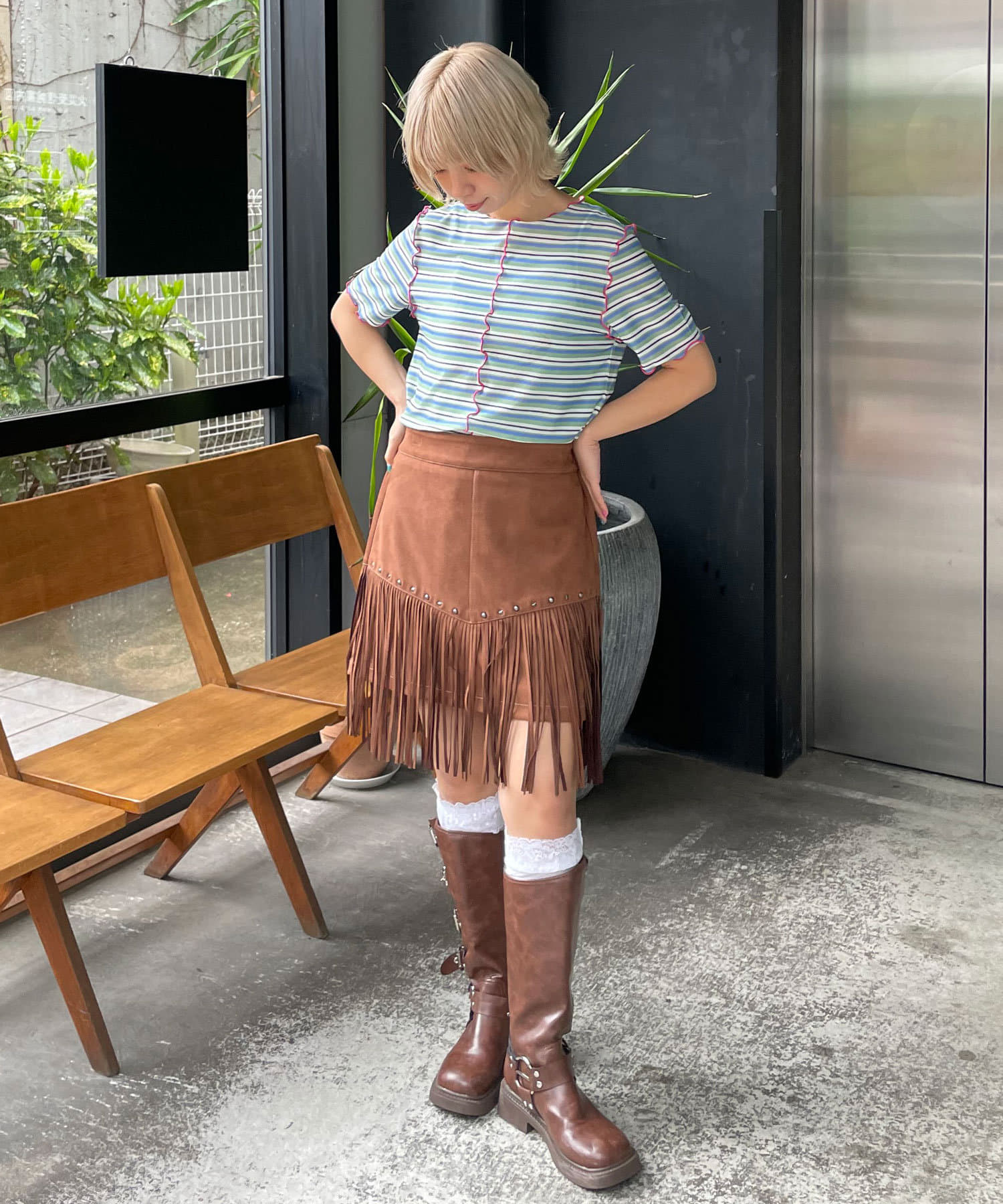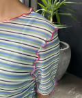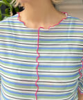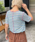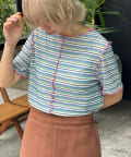 カラフルなマルチボーダーに、配色のメローステッチがアクセントになった主役級トップス。