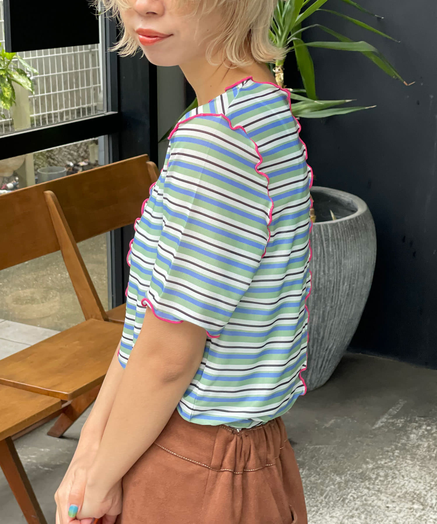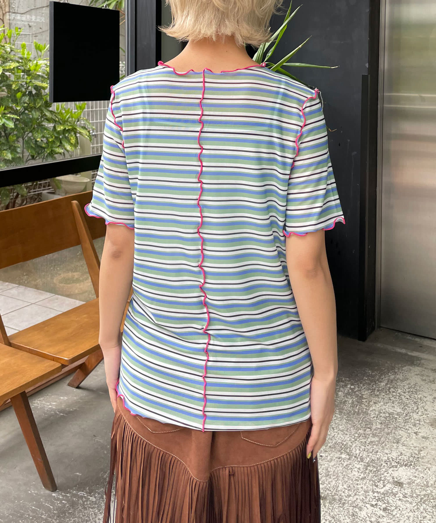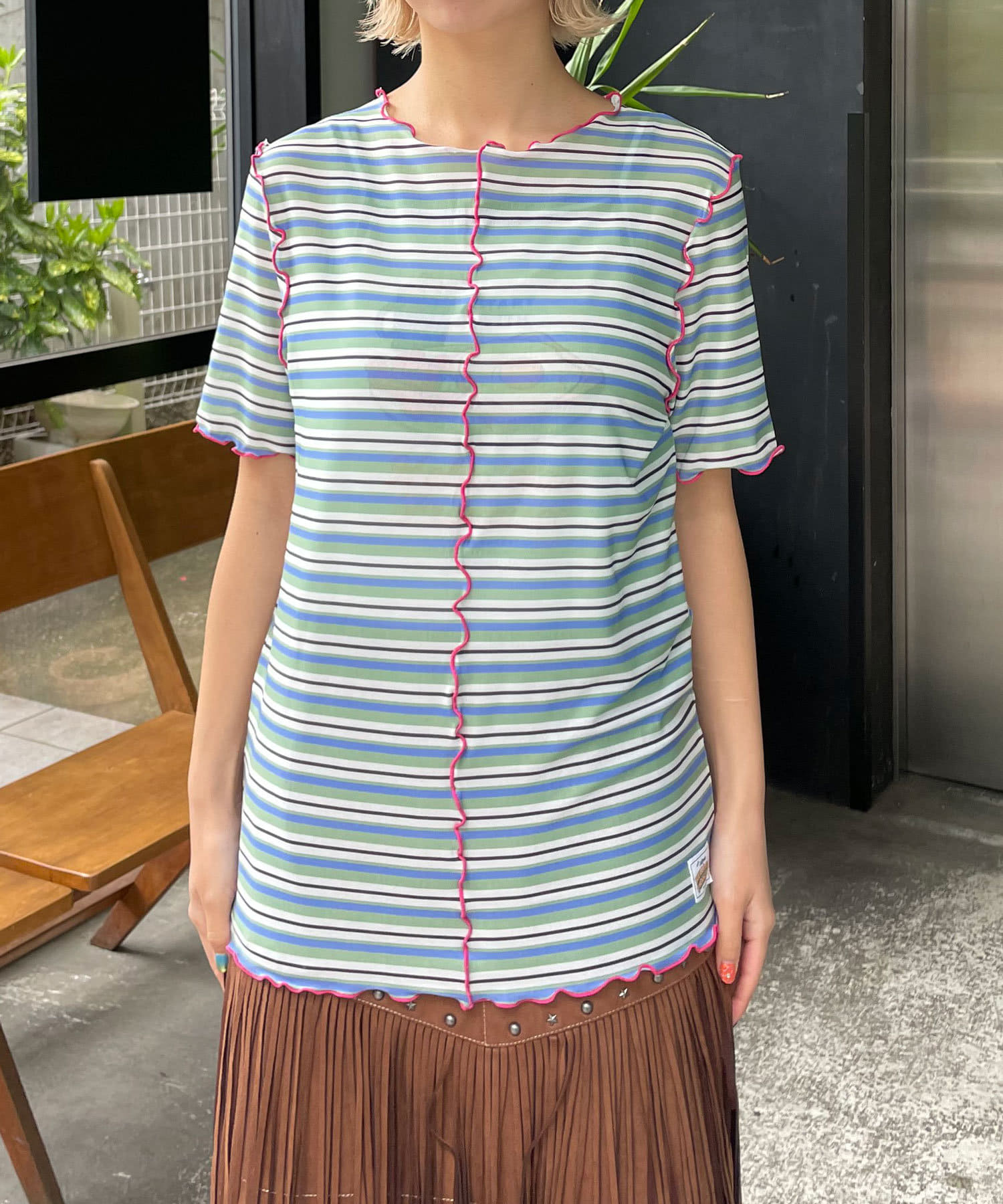 【HELLO.SANFRANCISCO/ハローサンフランシスコ】マルチボーダーメロートップス/シアー