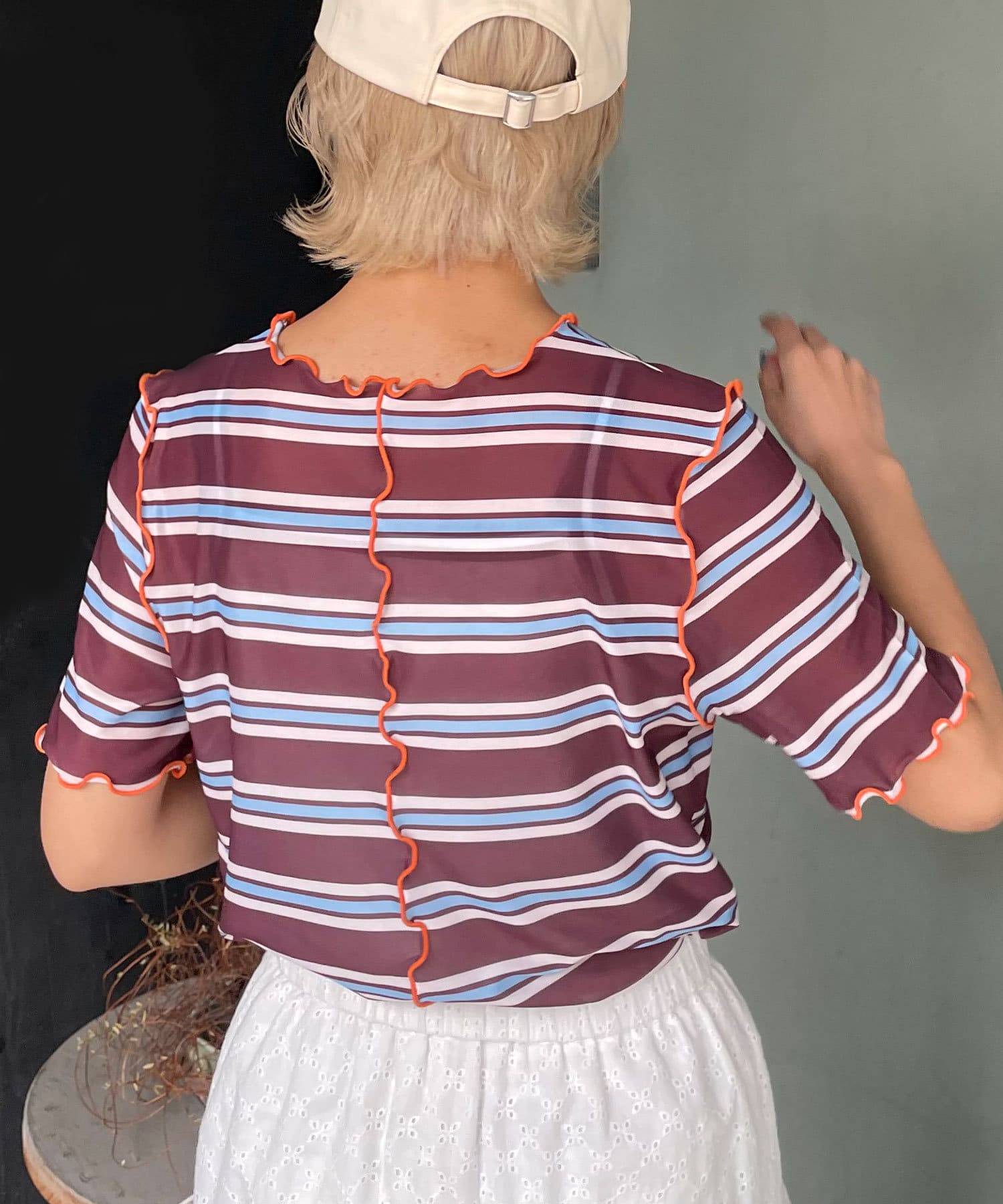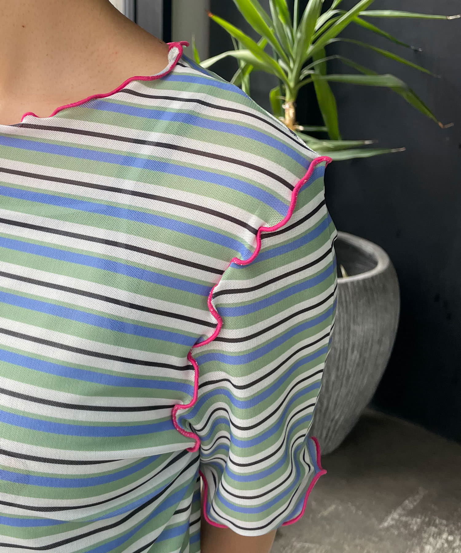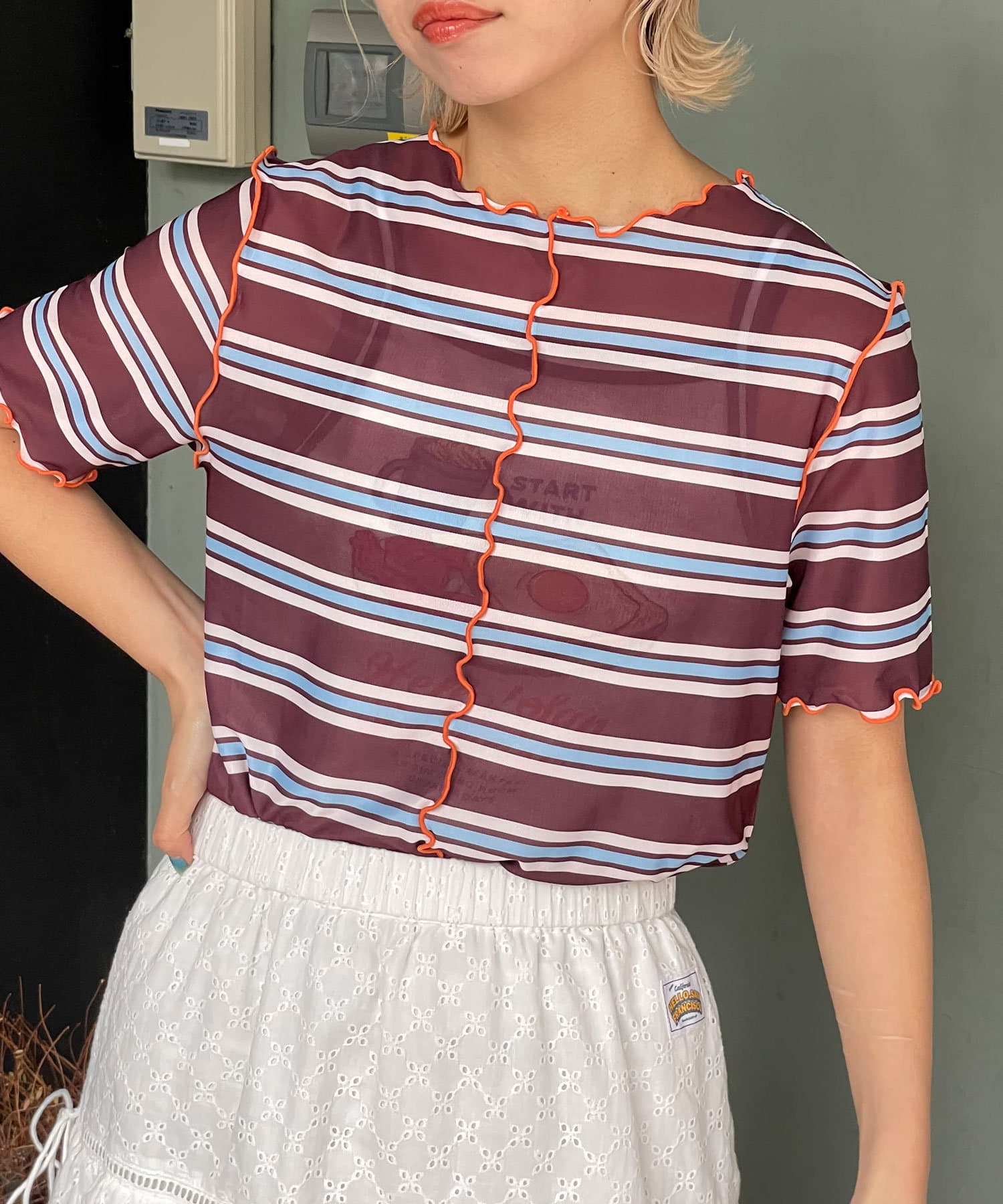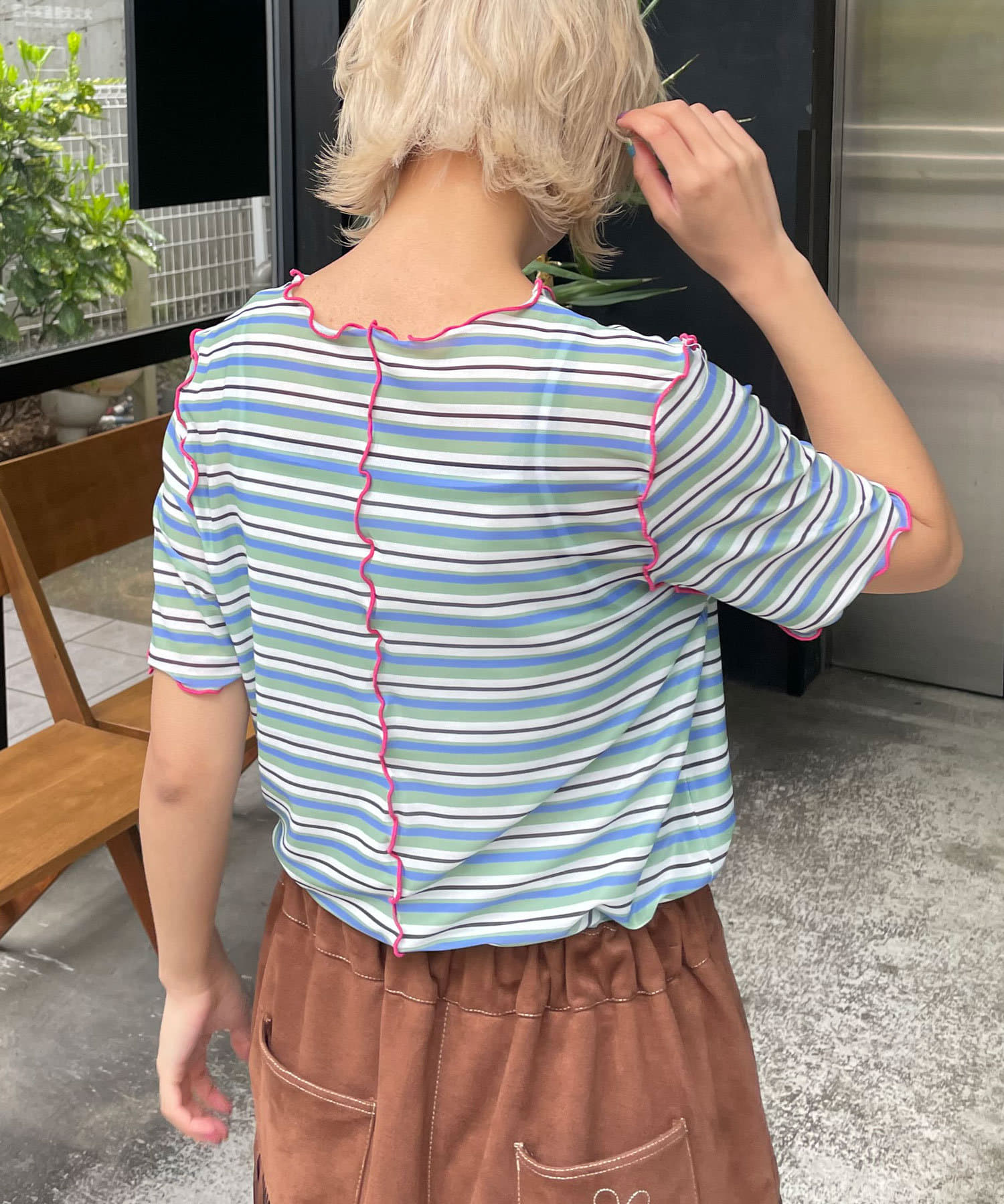 【HELLO.SANFRANCISCO/ハローサンフランシスコ】マルチボーダーメロートップス/シアー