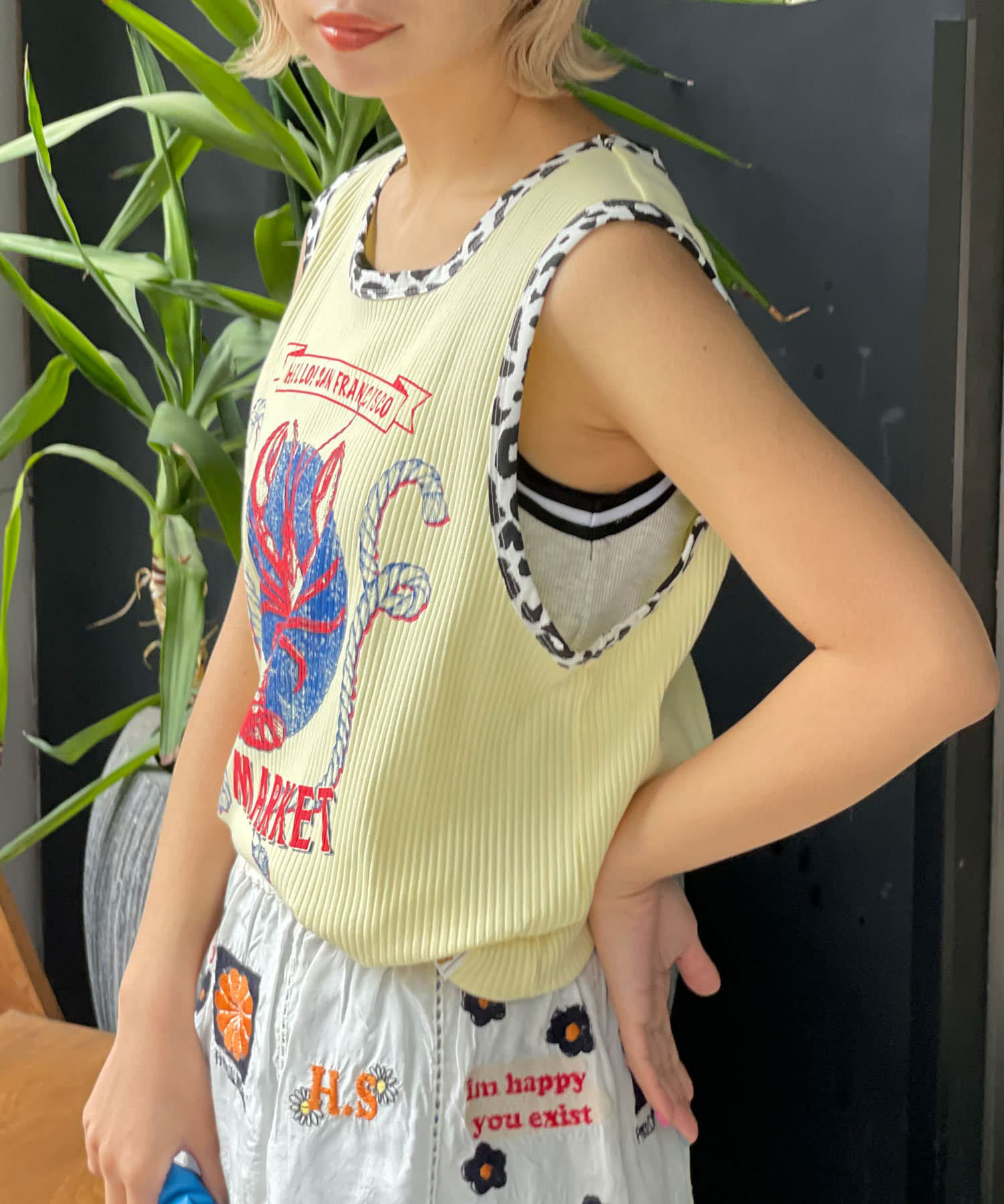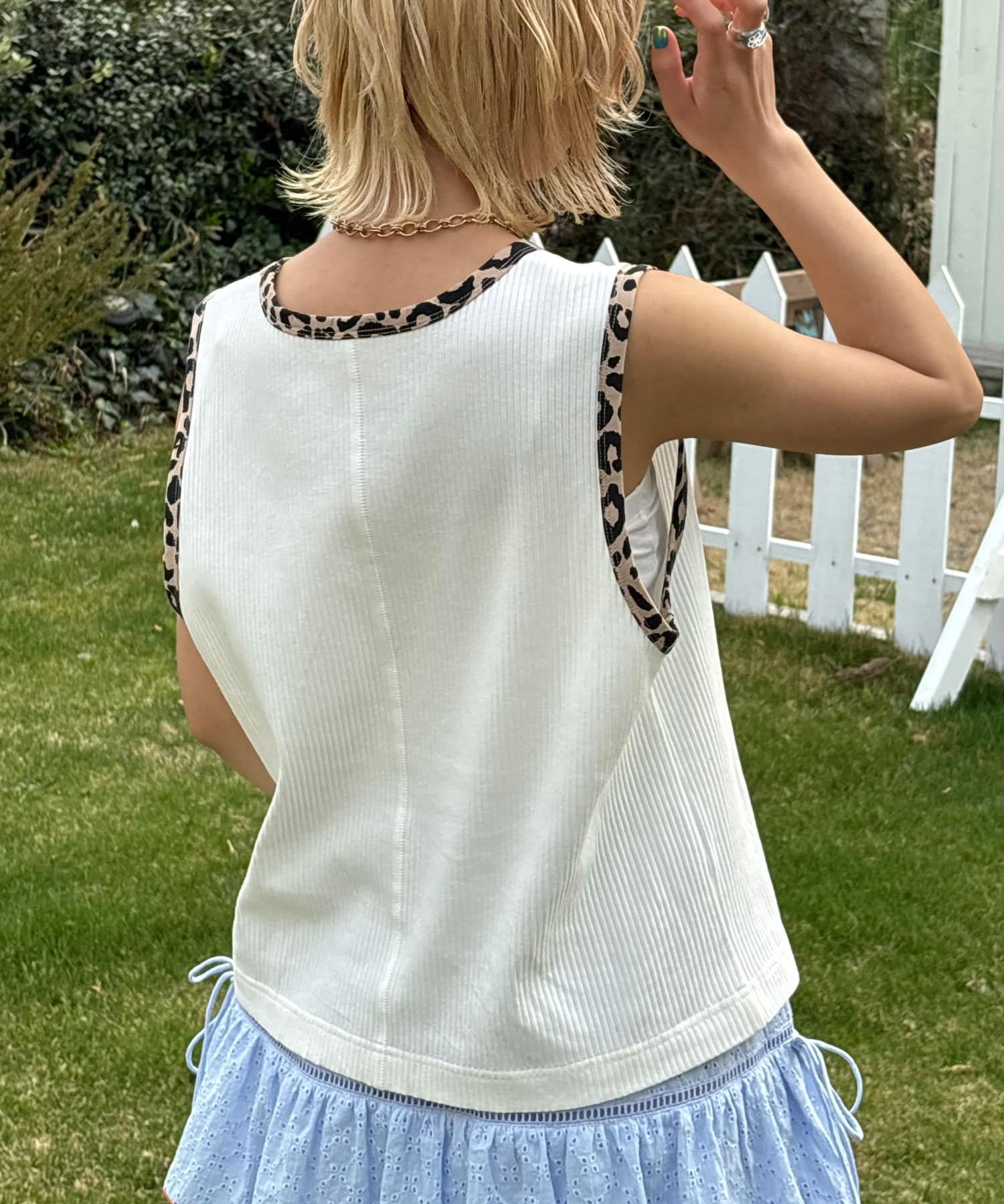 【HELLO.SANFRANCISCO/ハローサンフランシスコ】アソート柄レオパードパイピングタンク