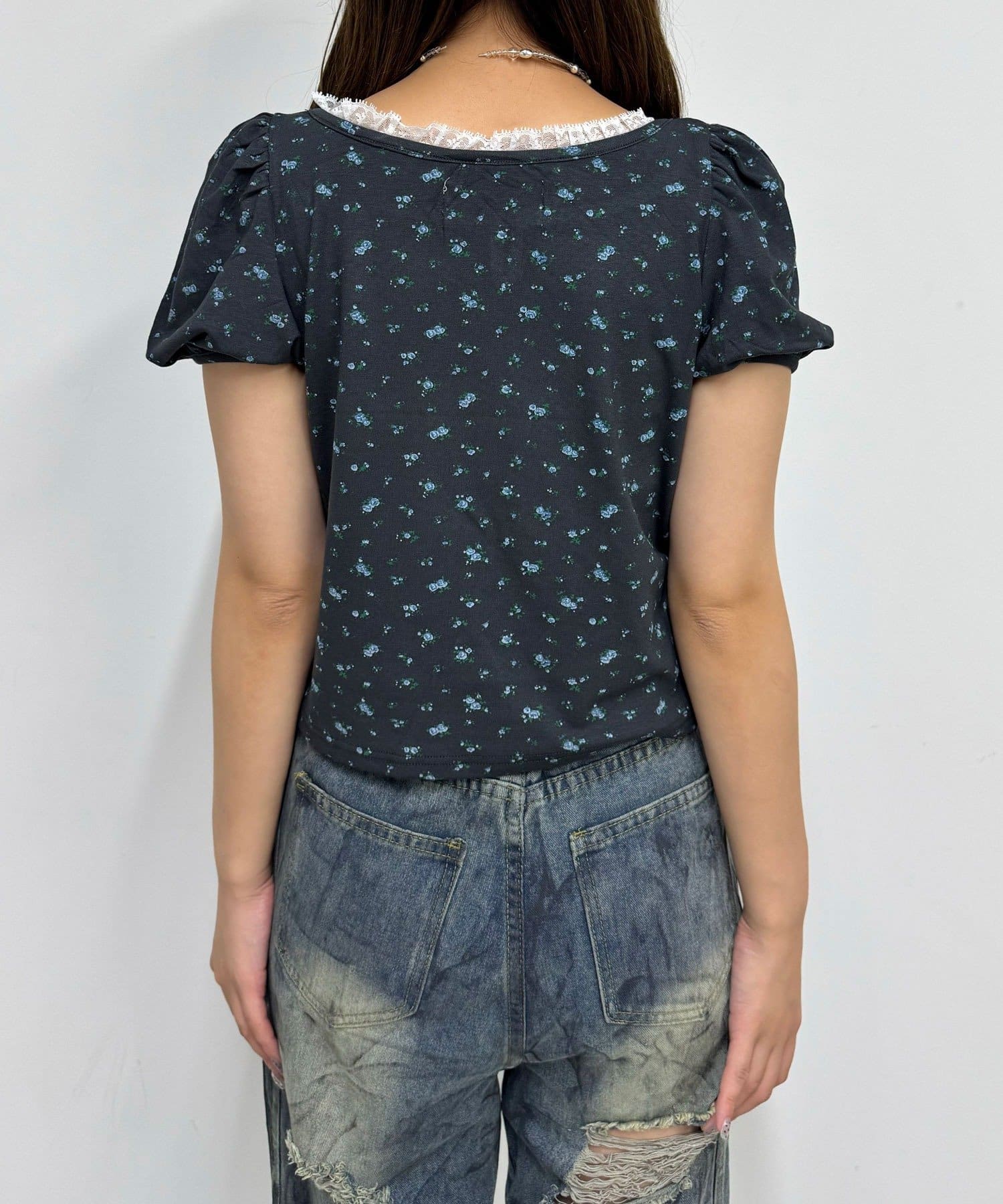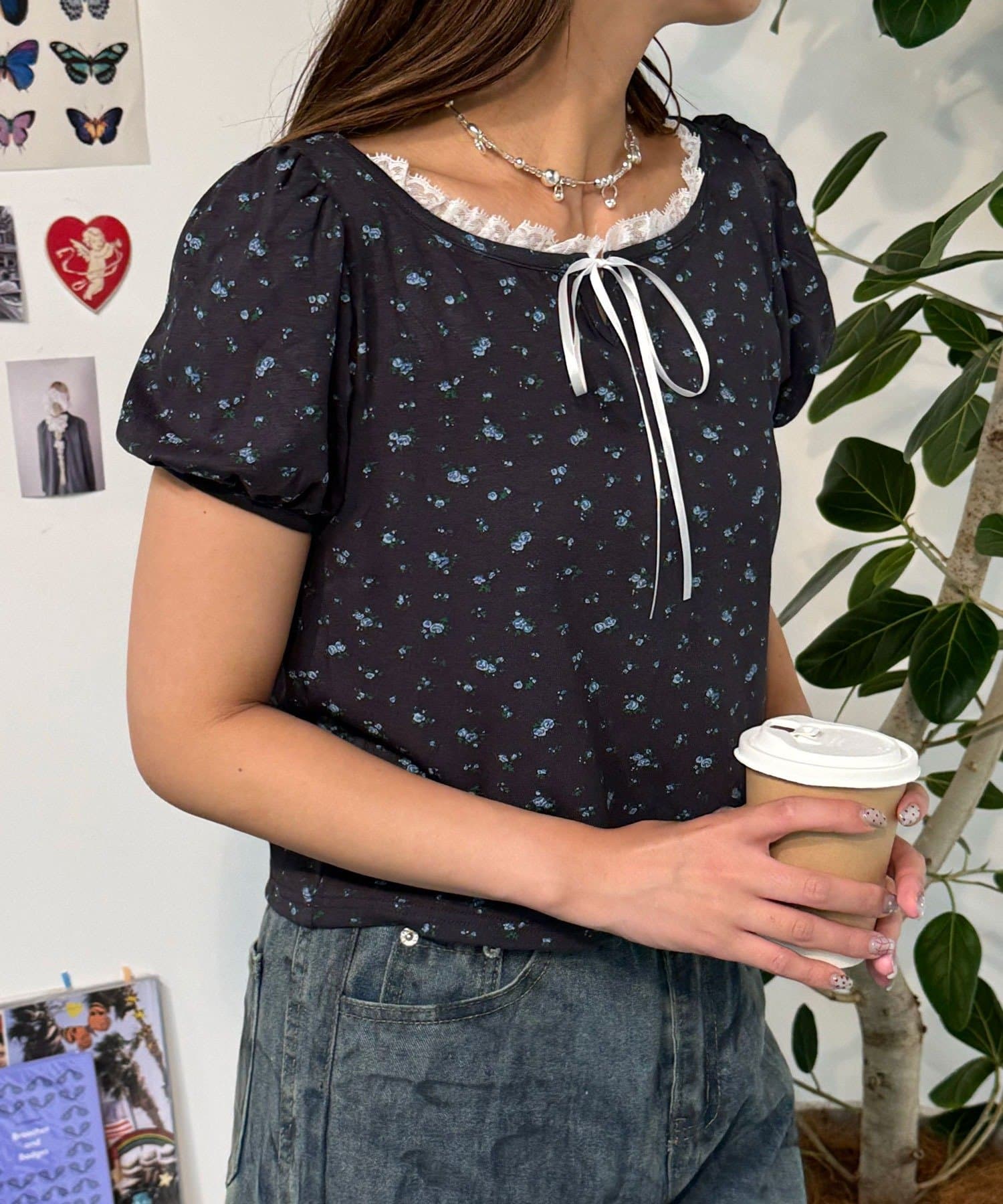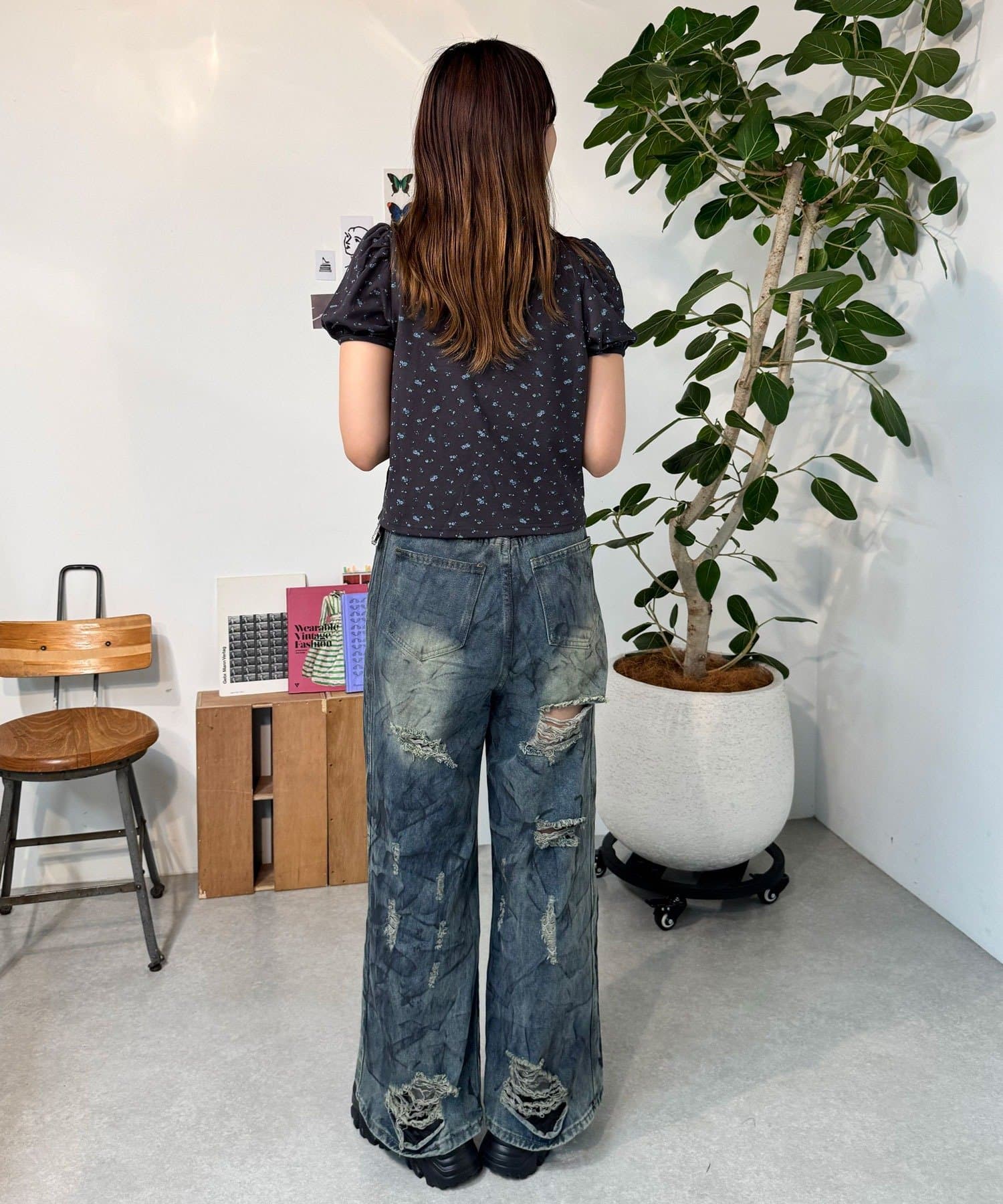 小花柄をプリントした、甘さとラフさのバランスが絶妙なブラウス。