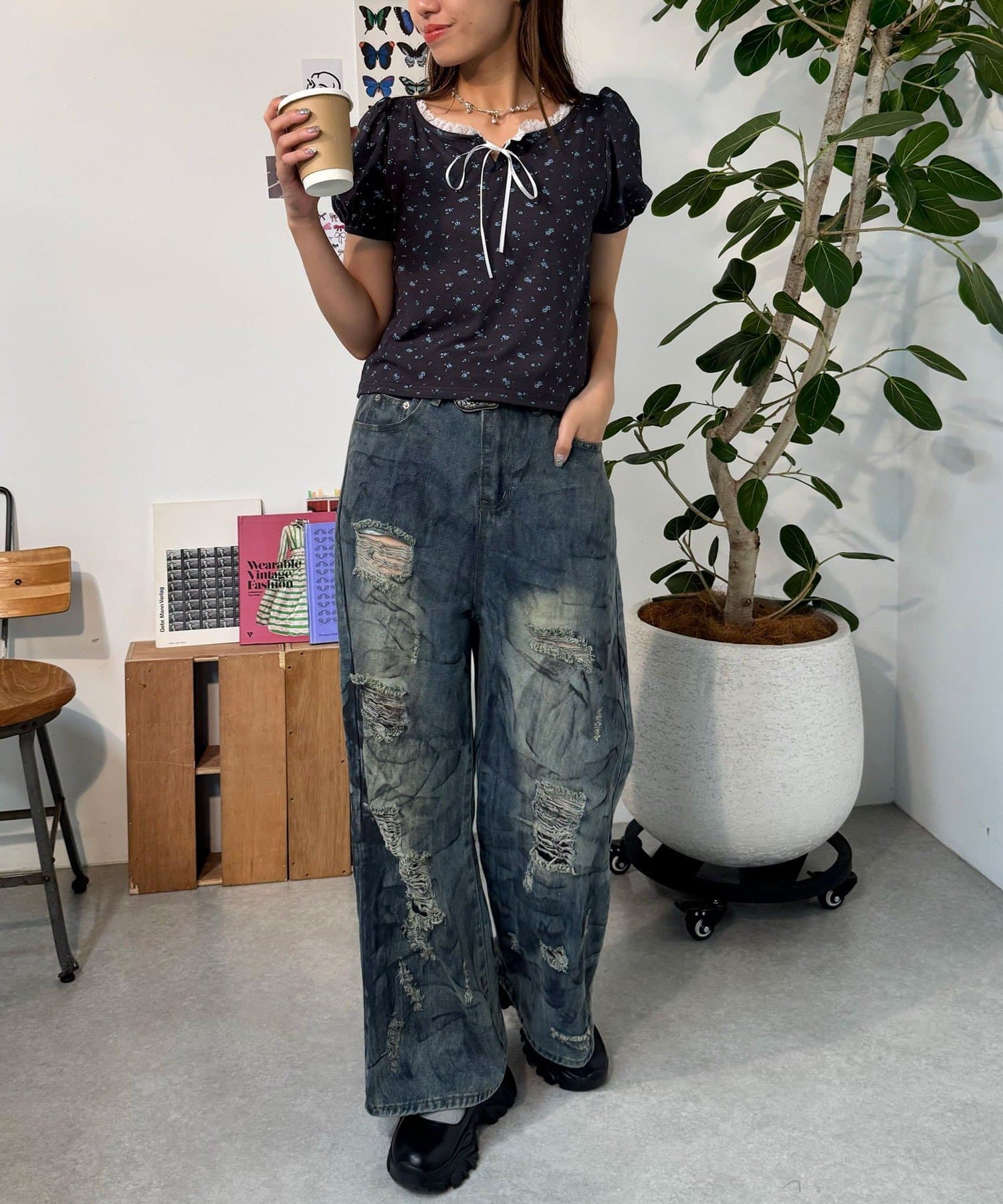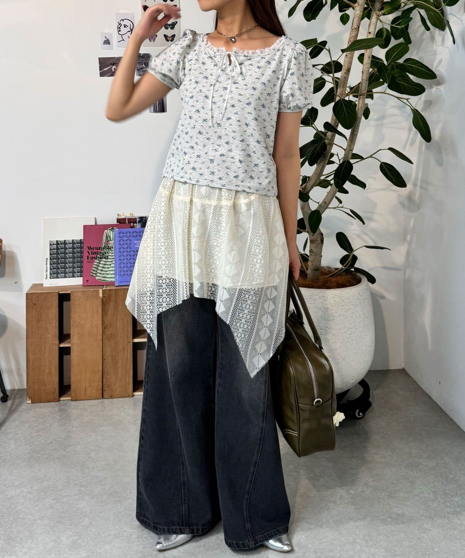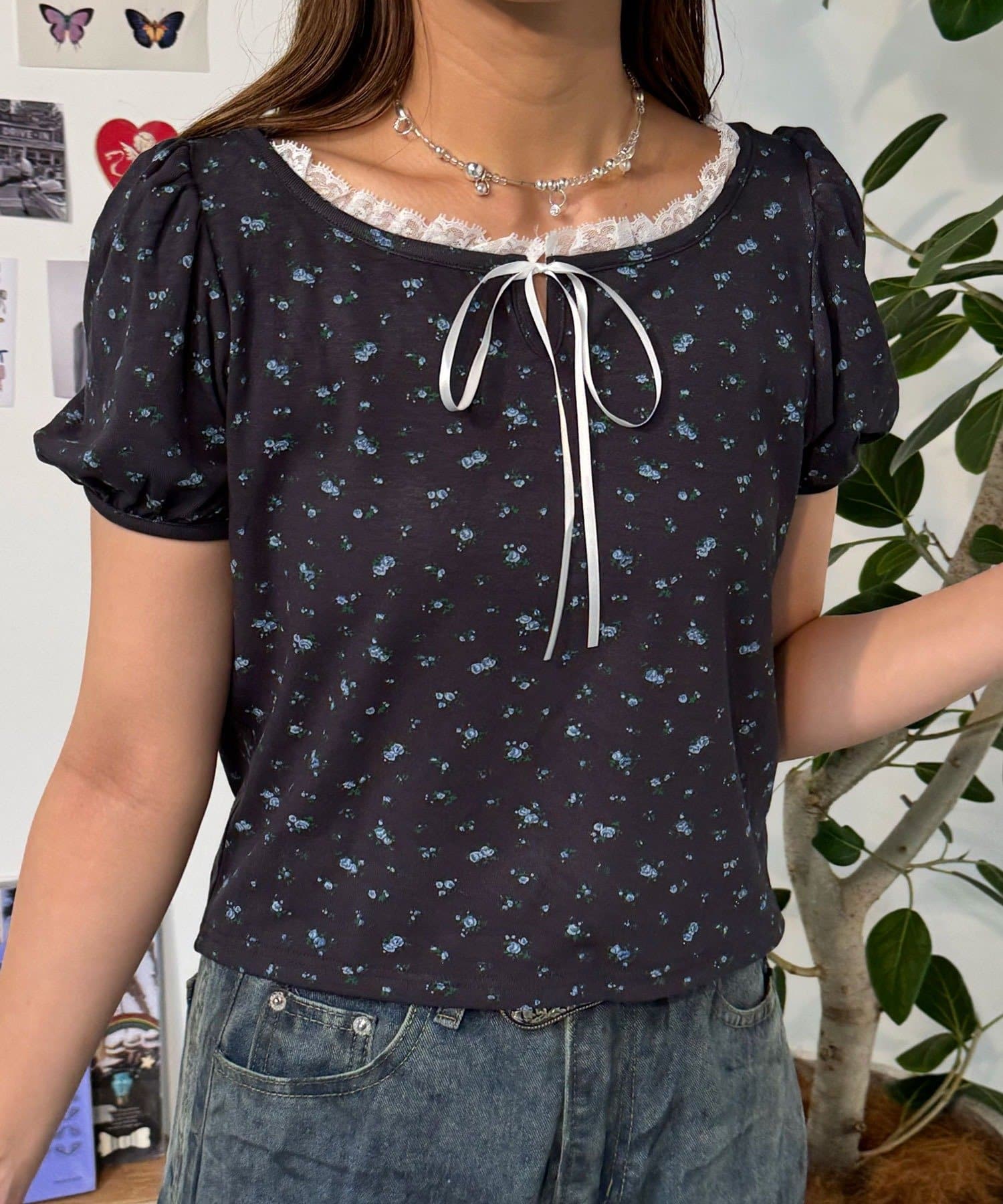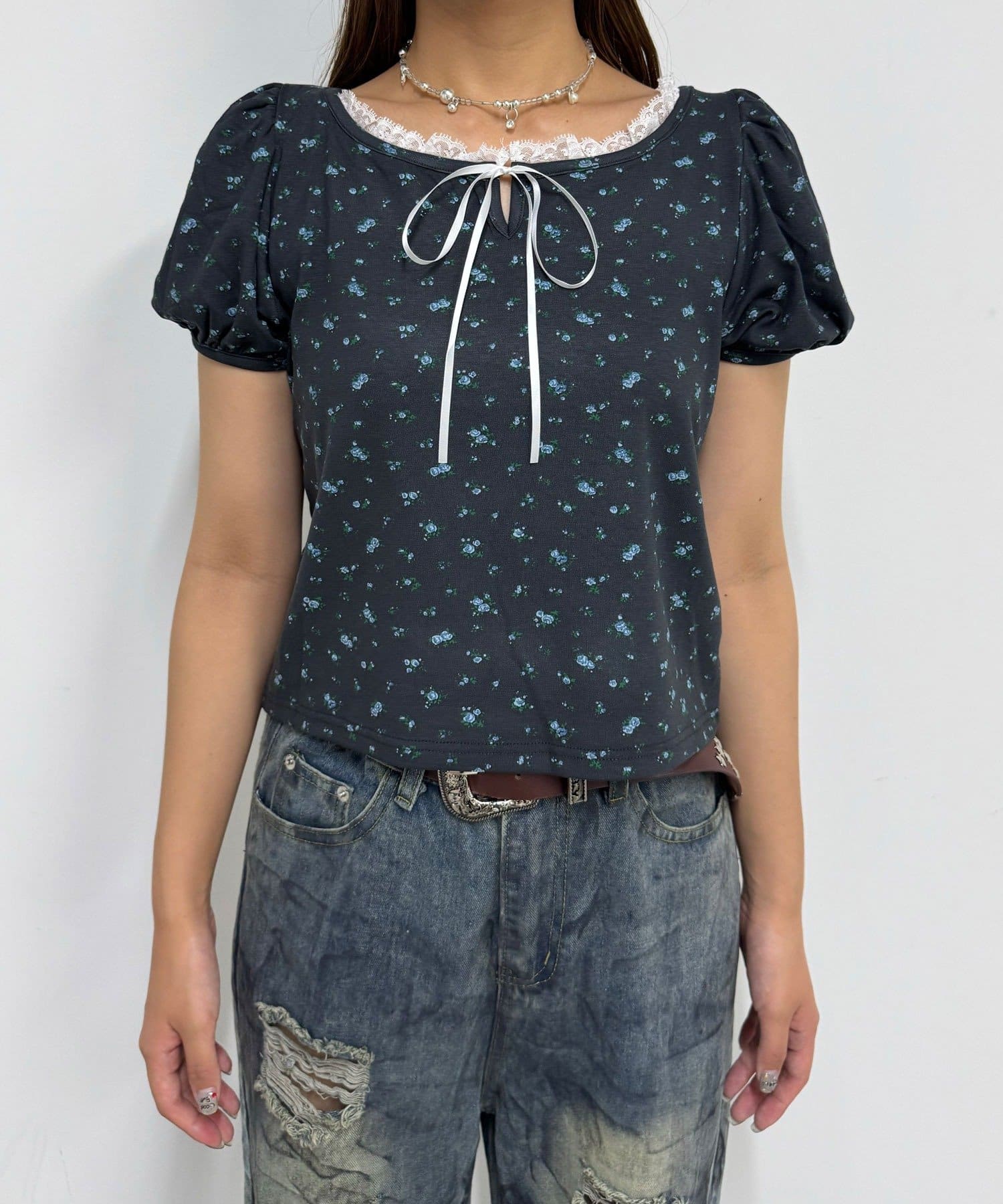 小花柄をプリントした、甘さとラフさのバランスが絶妙なブラウス。